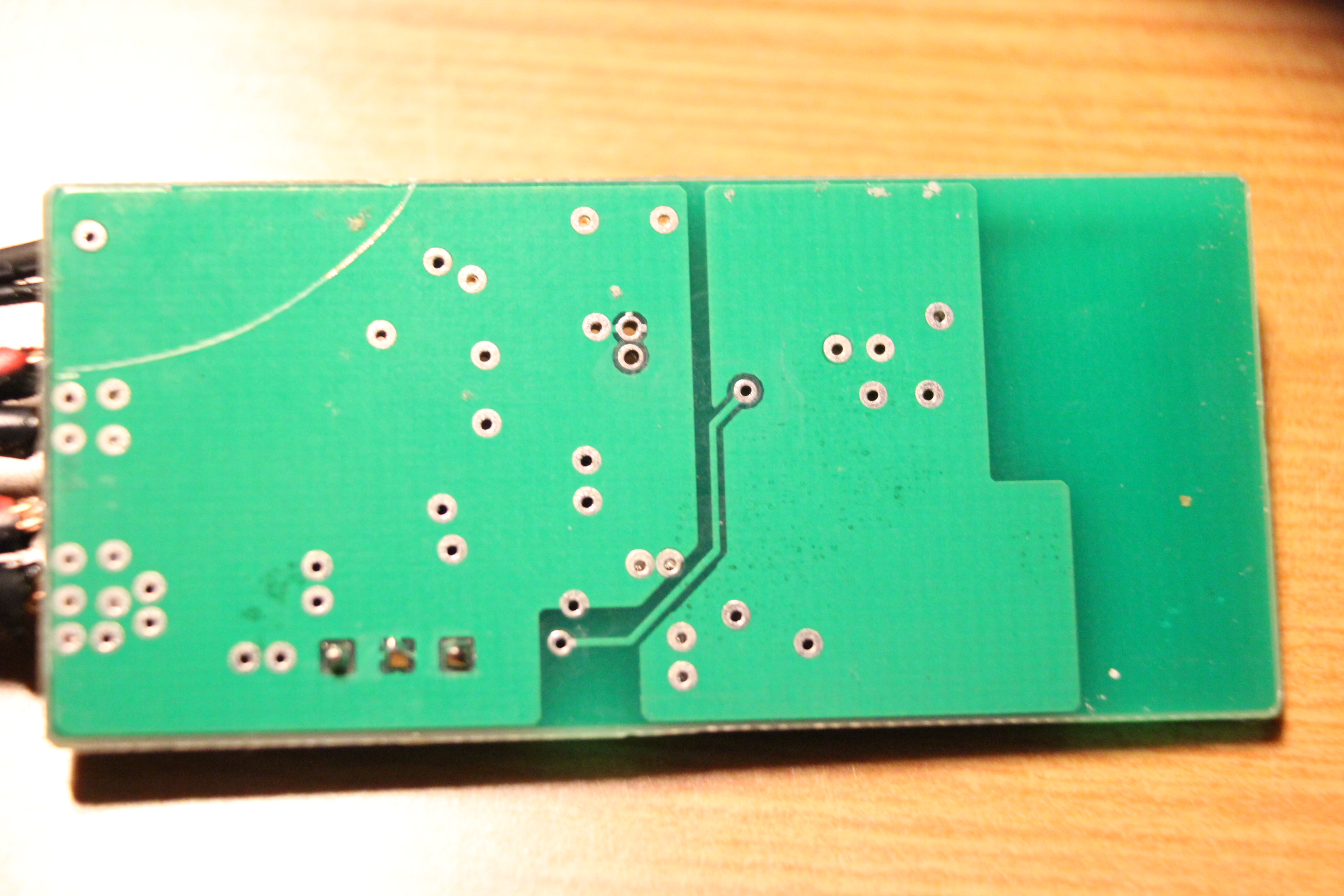 вот такая странная не аккуратная плата. Когда срезал термоусадку с нее - то отвалился кусочек пластика, который лежал вот так на одной капле клея: