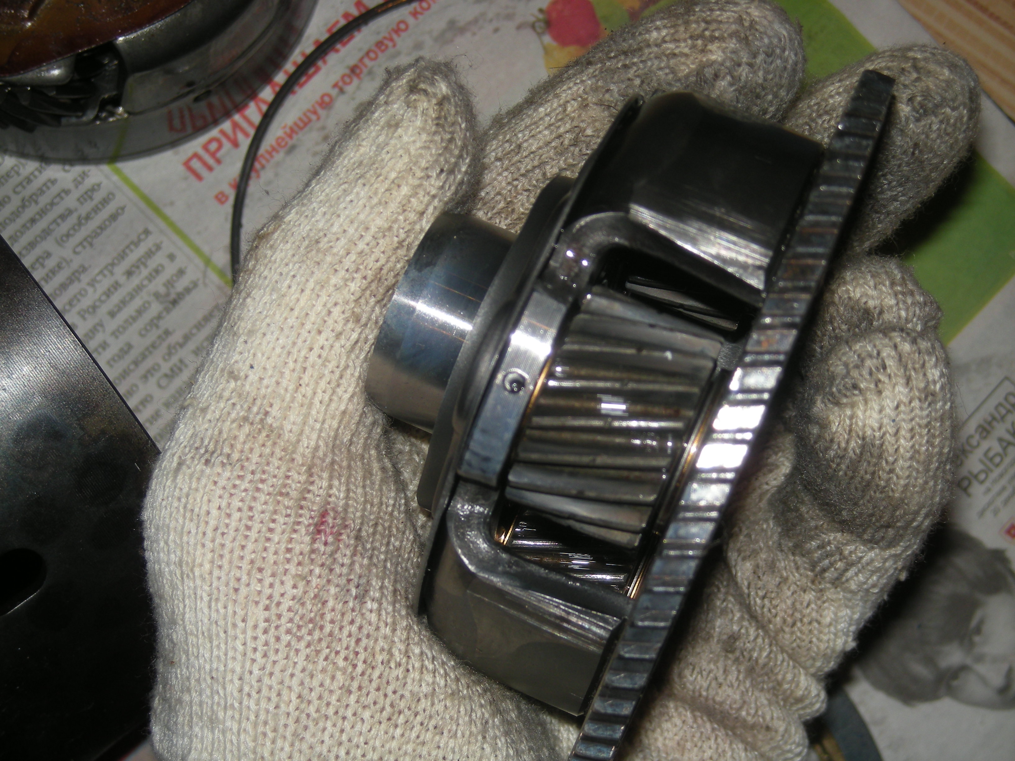 Разобрал планетарный механизм. Разбираеться элементарно.Снимаеться обгонная муфта, потом стопорное кольцо. И второе стопорное кольцо с другой стороны. Потом все разваливаеться само Люфты в осях саттелитов огромные.Люфтят также в теле планетарки с обоих сторон. Чтобы извлеч оси необходимо высверлить клепки. Планетарка не из Дименой коробки. В его планетарке все нормально. Андрей Миит-28 ты говорил что можно новые пальцы отдельно купить новые. Я не нашел, по каталогам можно купить только планету в сборе. Если знаешь парт номер, то подскажи. |