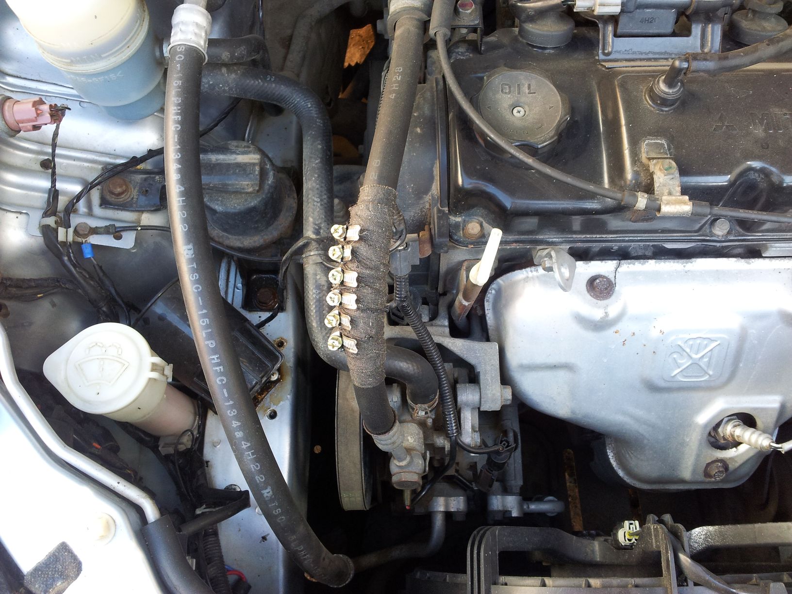 Заметил еще зимой что шланг высокого давления ГУР подтекает в районе компрессора. Решил не покупать сразу новый шланг, а попробовать изолировать следующим способом.