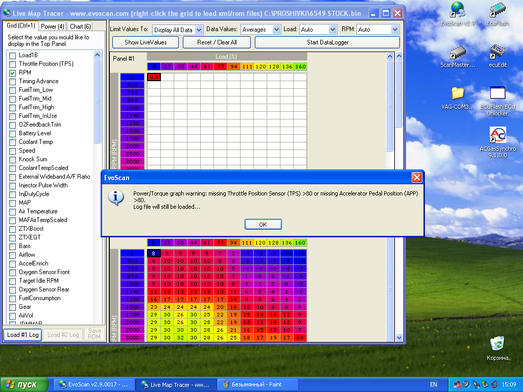 Перед записью лога надо было поставить галку, чтобы логировался параметр Throttle Position Sensor (TPS).