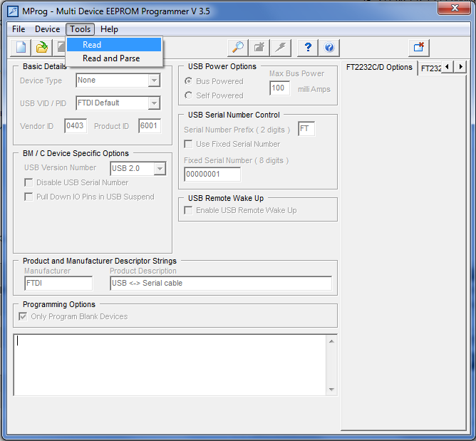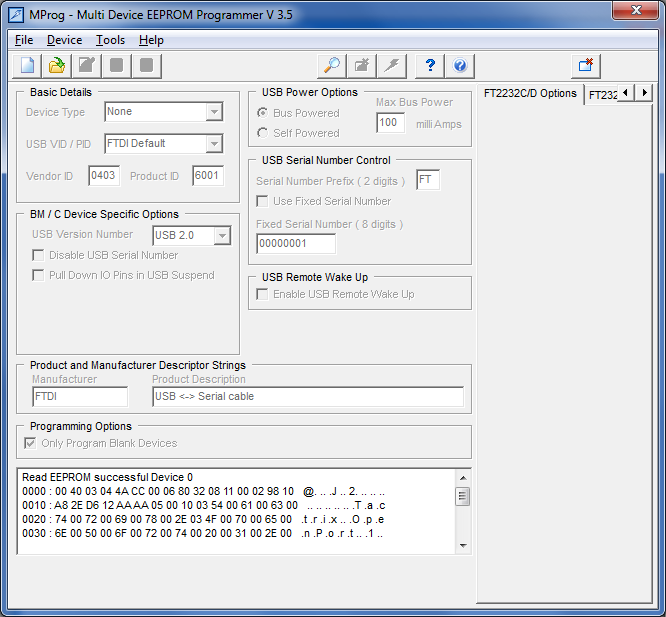 Кол-во скачиваний: 579Народ! А есть у кого-нибудь на руках оригинальный OpenPort 1.3U? Есть микроинтерес... Пытаюсь сделать на основе OP1.3 адаптер способный на общение с H8 мозгами, но какой-то у меня затык (кроме мощности буута - тут как раз есть вариант решения). Сейчас нужен дамп EEPROM FT232 из оригинального OP1.3. Именно дамп, а не ept-шка. В ней как оказывается не вся информация содержится. Дамп можно сделать MProg-ом. Стучу в личку тебе, вроде у меня есть такой... не понял , как считать дамп, получилась только епт.