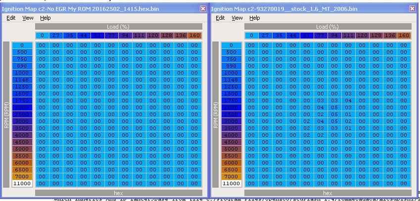 нужна помощь! подскажите что нужно в прошивке подправить под распредвал от ОКБ-40, поменял вал, на холодную заводится нормально, а прогретая схватывает и сразу обороты падают и глохнет, нужно педалью подгазовывать не которое время чтоб обороты холостые держала сама проша 93270019