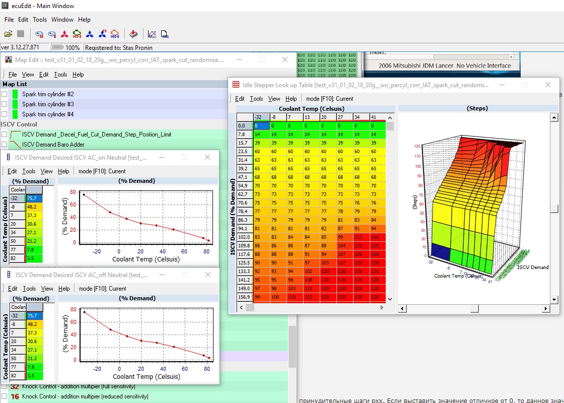 - Desired ISCV intial step position with AC off-Neutral - Desired ISCV intial step position with AC off-Drive - Desired ISCV intial step position with AC on-Neutral - Desired ISCV intial step position with AC on-Drive Я правильно понимаю, что в них используются шкалы шаги рхх/температура ОЖ? |