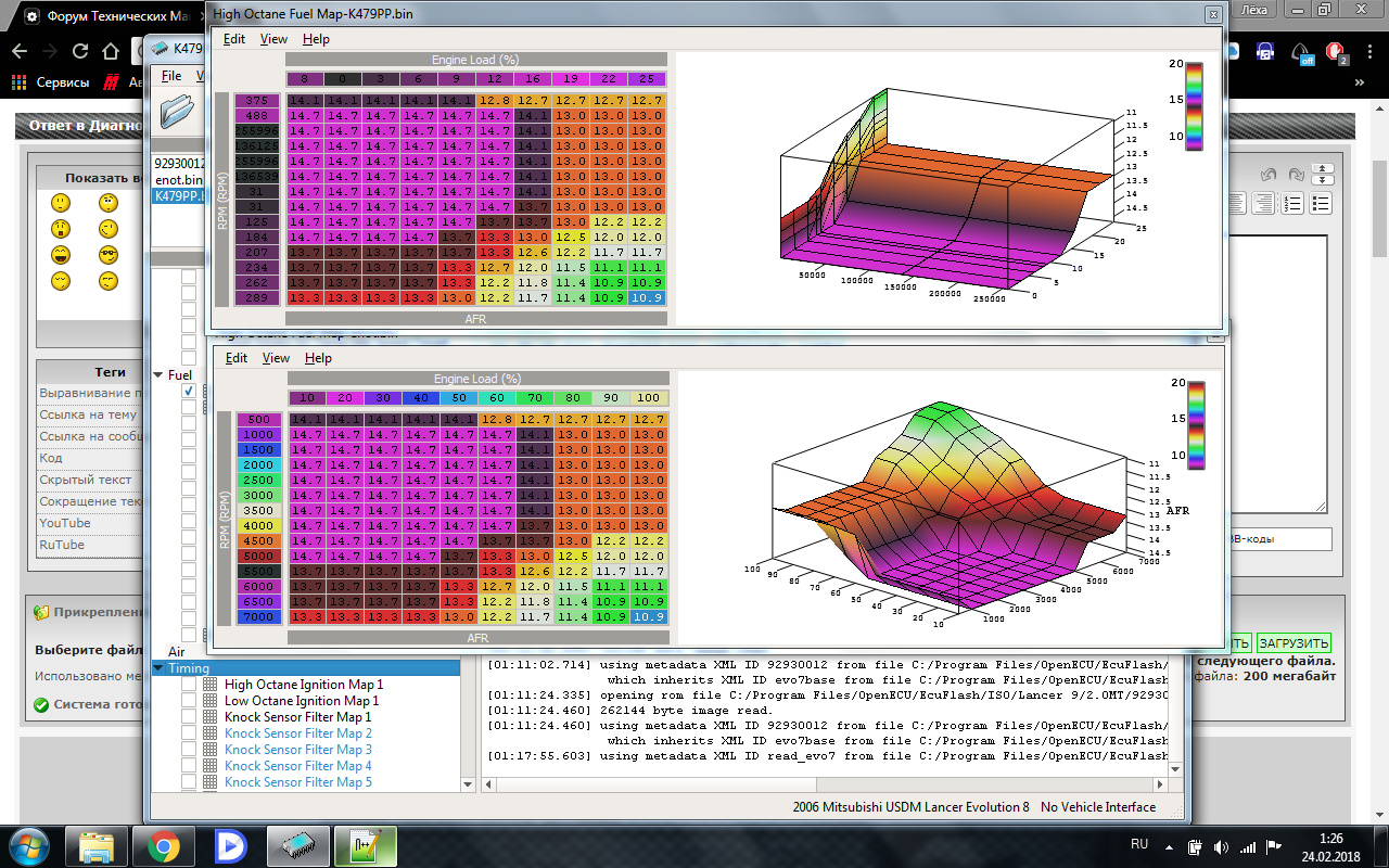 Приветствую форумчане, подскажите начинающему программисту, Lancer 9 2004г.в. 2.0L считал прошивку EcuFlash`ем, а там вот такая бредятина... вот топливные карты с двух разных машин (оба Lancer 2.0)