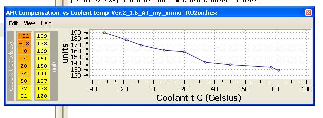 Вопрос к маньякам, парни, помогите найти адреса таблицы, по которой работает КОМПЕНСАЦИЯ ДЛИТЕЛЬНОСТИ ВПРЫСКА в зависимости от COOLANT temp °C. Тоесть прогревочная таблица. Она (компенсация) должна сводиться к 82°С антифриза почти на 0. Есть данные по адресу 33CA, но опять же таблица не может заканчиваться значением 128! Заранее благодарен за информацию |