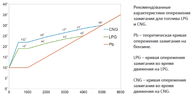 Ещё увеличил УОЗ под пропан вот по такому графику: