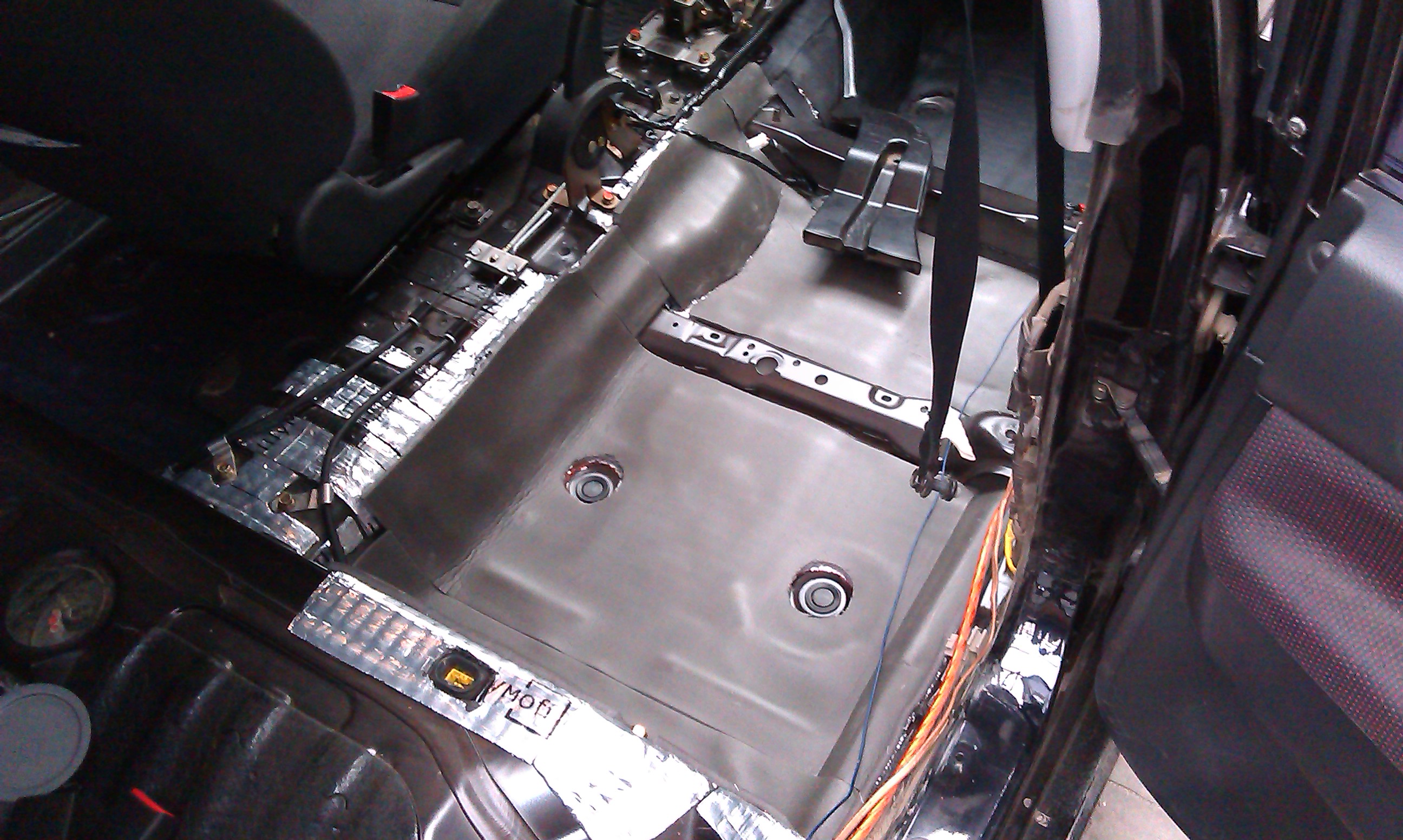 Температура для этого дела на выходных была в норме. К тому же на упаковке шумоизоляции написаны рекомендации по условиям монтажа, в которых сказано, что при применении теплового пистолета можно клеить и при t-ре ниже 10 градусов. Для контроля температуры в гараже, так, на всякий случай, использовал давно завалявшийся в сарае встроенный в пластиковый стакан термометр. Лежал несколько лет без дела, и вот настал его звёздный час. По дренажным отверстиям с заглушками в нише пола так и не понял, нужно их заделывать или нет, вдруг когда понадобятся опять воду из салона откачивать. По многочисленным фото шумки пола, найденным в интернете, понял, что все рукодельцы эти места зашумливают 100%. И тут я решил выделицца, типа, чё я как все должен делать, буду по своему лепить. Вообщем, с вырезанных в шумке дырочек сильно не ржать!!! (IMG:style_emoticons/default/smile.gif) Клеевой состав материала очень понравился! Решил проверить действительно ли, как в одном из рекламных роликов Шумоффа в ютубе, при попытке отклеить только что приклееный кусок шумоизолятора он отрывается маленькими кусочками, но при этом сама основа с клеем остаётся на кузове, её отодрать очень трудно без подручных инструментов! Действительно, всё так и есть! Вообщем, материалом доволен, и спасибо субботнему ливню за то, что ускорил процесс тюнинга! (IMG:style_emoticons/default/smile.gif) На очереди прокладка межблока и обратная установка обшивки пола. |