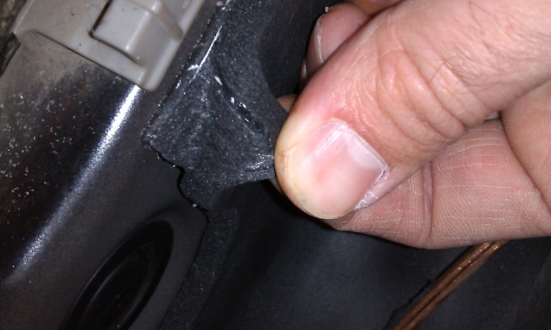 Шумо-теплоизолятор "Шумофф П8" очень неудобно клеить на неровные поверхности. Он жестковат для этого. Если материал неплотно прикатать или допустить наличие воздуха внутри оклеенной поверхности, то он со временем может отклеиваться в этих местах, а это, наверное, уменьшает эффективность его действия. Вот, для примера, пришлось переклеить через неделю: Для нормального приклеивания П8 на неровные поверхности его необходимо прикладывать не сразу на всю площадь поверхности, а постепенно. Т.е. приложили один конец материала к началу места поклейки, прикатывая роликом или придавливая пальцами рук прижимаем его к поверхности и так постепенно продавливем его до места изгиба. На изгибе очень тщательно прикатываем, выгоняя воздух. И далее от изгиба таким же образом, постепенно, доклеиваем материал до конца участка. В этом плане мне очень понравился шумопоглатитель "Комфорт6". Он просто идеально мягкий и очень хорошо клеится на изгибах, без труда принимает любые формы и отлично прикатывается к поверхности. Но у него есть один недостаток - его очень легко повредить любым предметом без особого усилия. Вот такие следы остались после попытки одеть кожух селектора АКПП, у которого имеются острые края в местах прилегания к полу. |