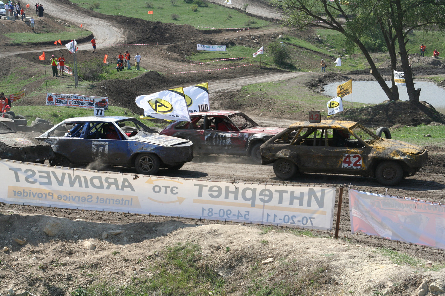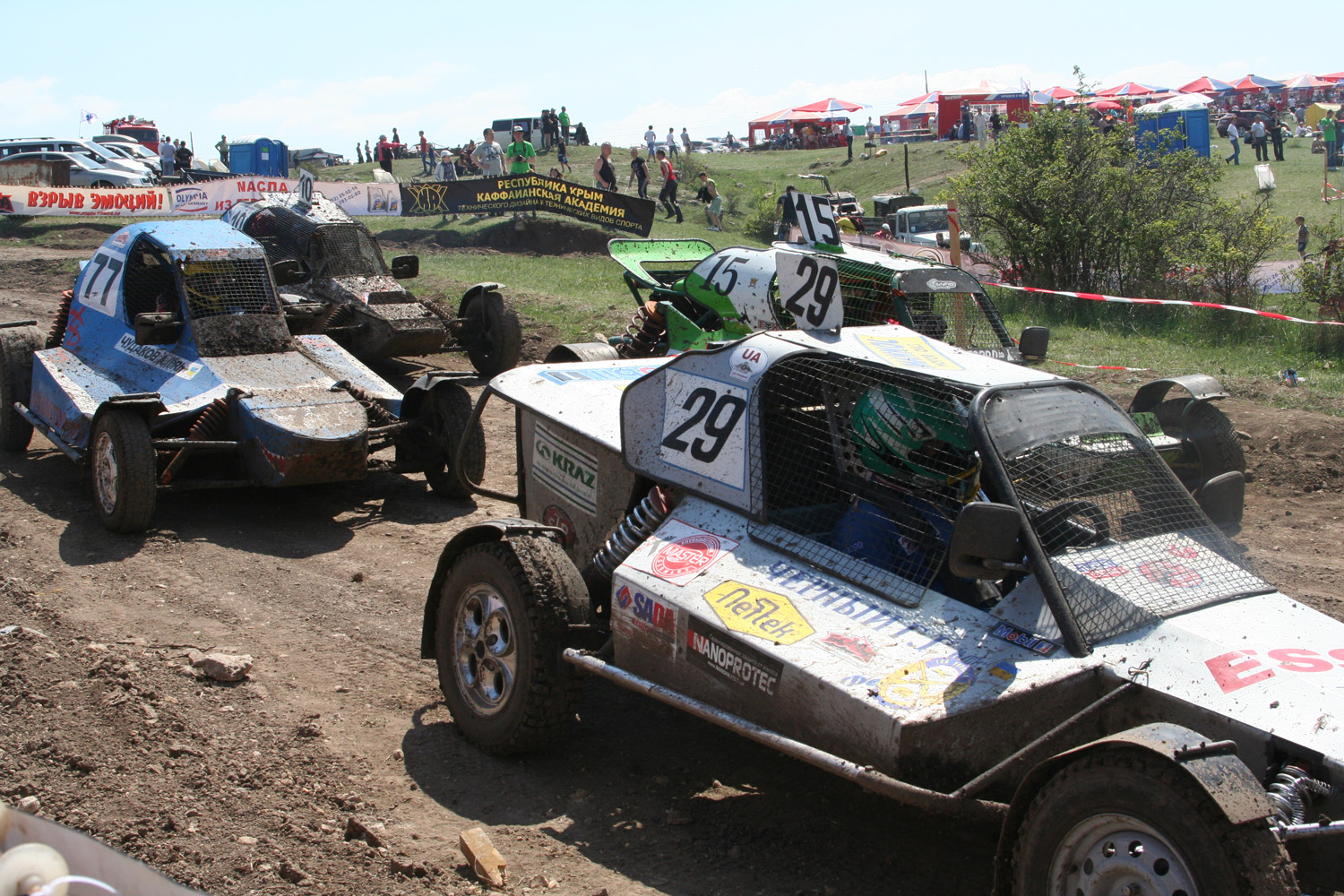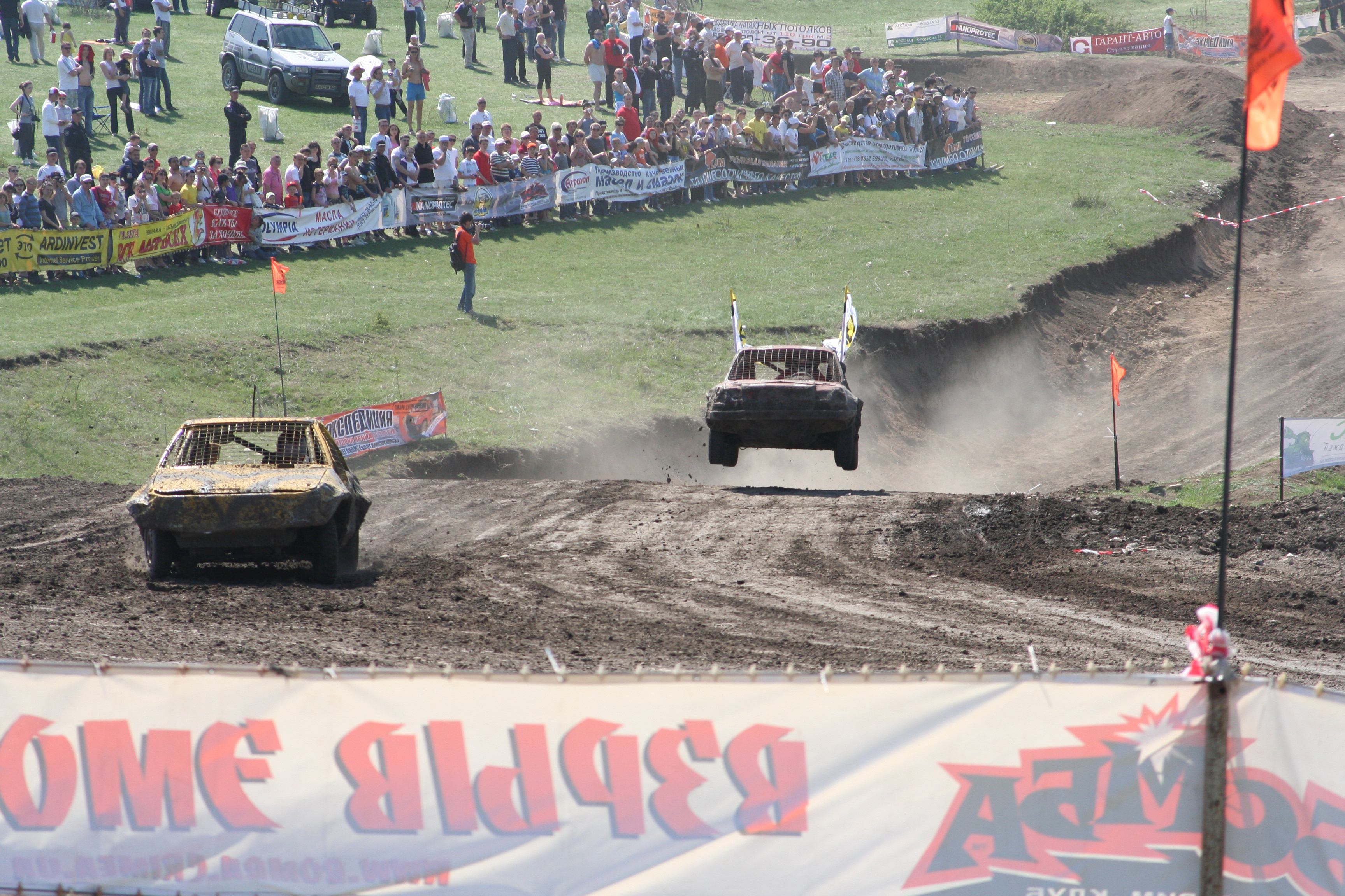 представляет «FULL Прохват 2012» - 2-х дневное автоспортивное мероприятие. Место проведения: АР Крым, Симферопольский район, между селами Трудовое и Урожайное, балка «Тубай», автодром «Бомба». 29 апреля – первый этап Чемпионата Украины по экстремальному автокроссу (гонки на выживание). Автодром «Бомба» в балке «Тубай» примет одни из самых зрелищных автосражений. Вы увидите полную противоположность правилам дорожного движения в исполнении ведущих автогладиаторов и каскадеров из Запорожья, Кривого Рога, Александрии, Донецка, Киева и Крыма. 29 апреля – первый этап Кубка Крыма по автокроссу на СКА «Багги». Эти маленькие машины показывают удивительную скорость передвижения по пересеченной местности, их маневренность поражает, а устойчивость в виражах и поворотах вызывает неподдельное восхищение. Небольшой отчет о вчерашнем дне по просьбе Титуса: Было классно (IMG:style_emoticons/default/smile.gif) , не без лопнутых колес, вылетов с трассы и переворотов, но, слава богу, без жертв. гонки на выживание: На фото: Titus Jr., Titus, WiK обратите внимание на чем сидят настоящие маньяки.. (IMG:style_emoticons/default/biggrin.gif) |