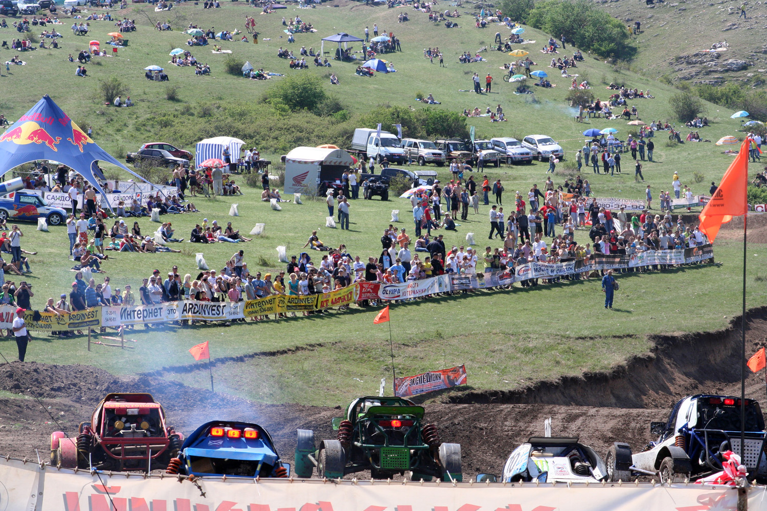 Там реально уникальное место - балка, как бы вокруг стоят горы амфитеатром, то есть, практически с любой точки вокруг все видно, ну и безопасно. Очень порадовала организация - БТР в качестве одного из дизель-генераторов, оцепление милицией (вежливое и ненавязчивое, но, пьянь к трассе не пускали). В общем, все интересно (IMG:style_emoticons/default/smile.gif)