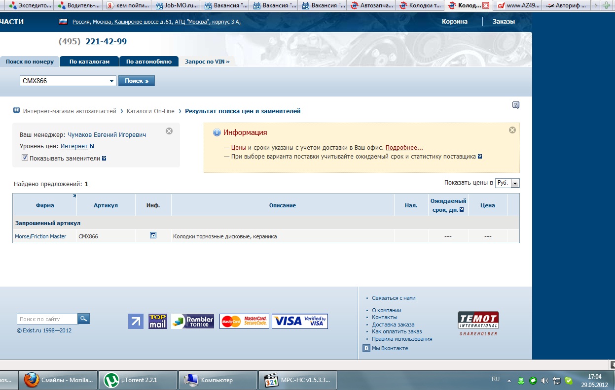 очередной избитый и обсосанный вопрос (IMG:style_emoticons/default/biggrin.gif) передние диски хз какие. предыдущие колодки анкар ставил D1N-048, с 100 до 0 я в руль упирался почти грудью с своими 100кг и брат в торпеду. люблю погонять, но до предела колодки доводил только на мазде шо ваще хоть парашут с якорем выбрасывай (IMG:style_emoticons/default/laugh.gif) на лансе было подобное но на много меньше. Морзе CMX866 в экзисте нет. Но мой 2.0 выдают NX866 1000р и ELT866 1400р. Феродо на 6-ку ставил и результат отличный был. TRW скрипели пока не притерлись, а сейчас останавливают но не так как хотелось бы и на дисках черные следы оставляют, и задние хз что за колодки тоже самое оставляют