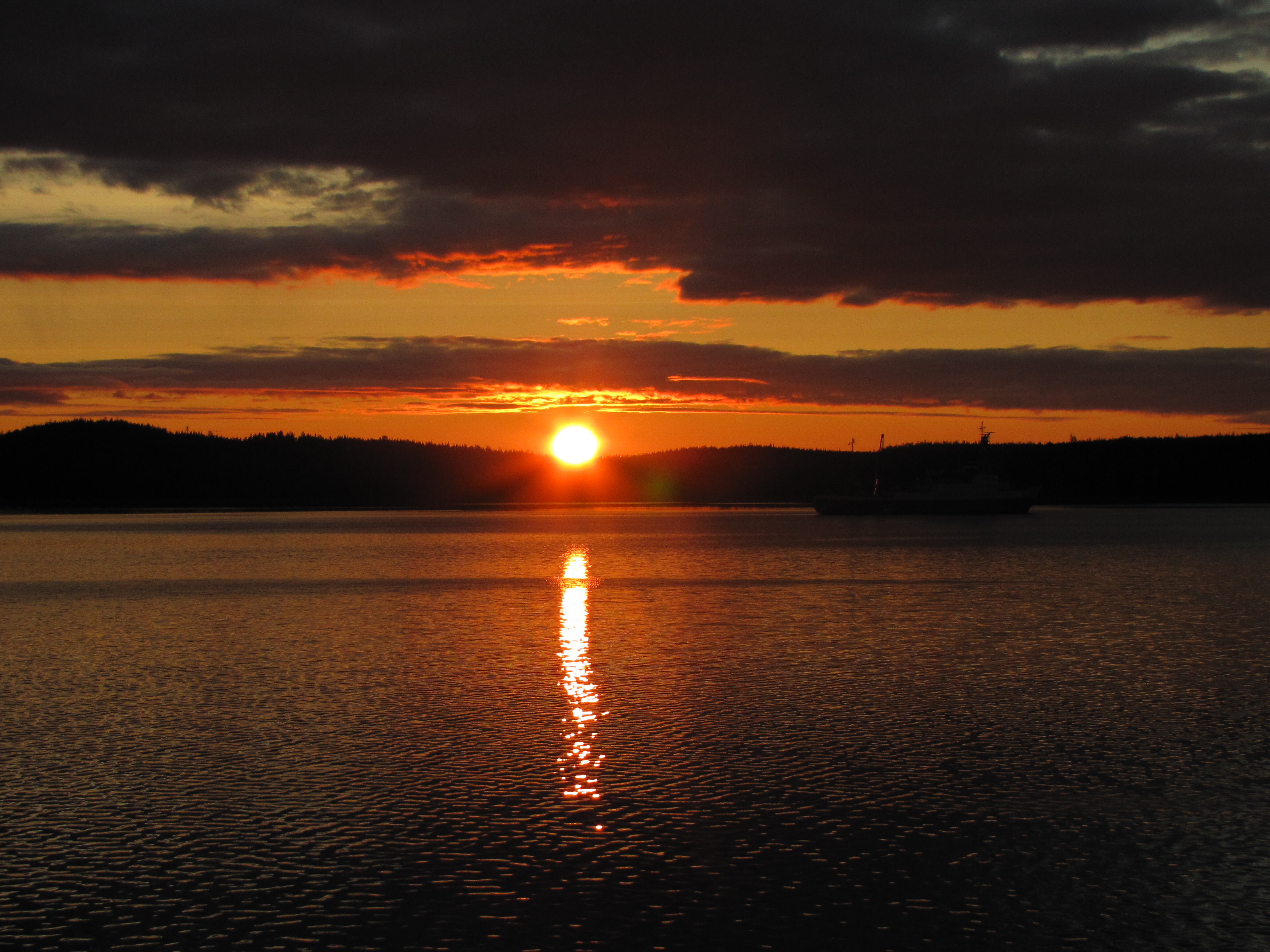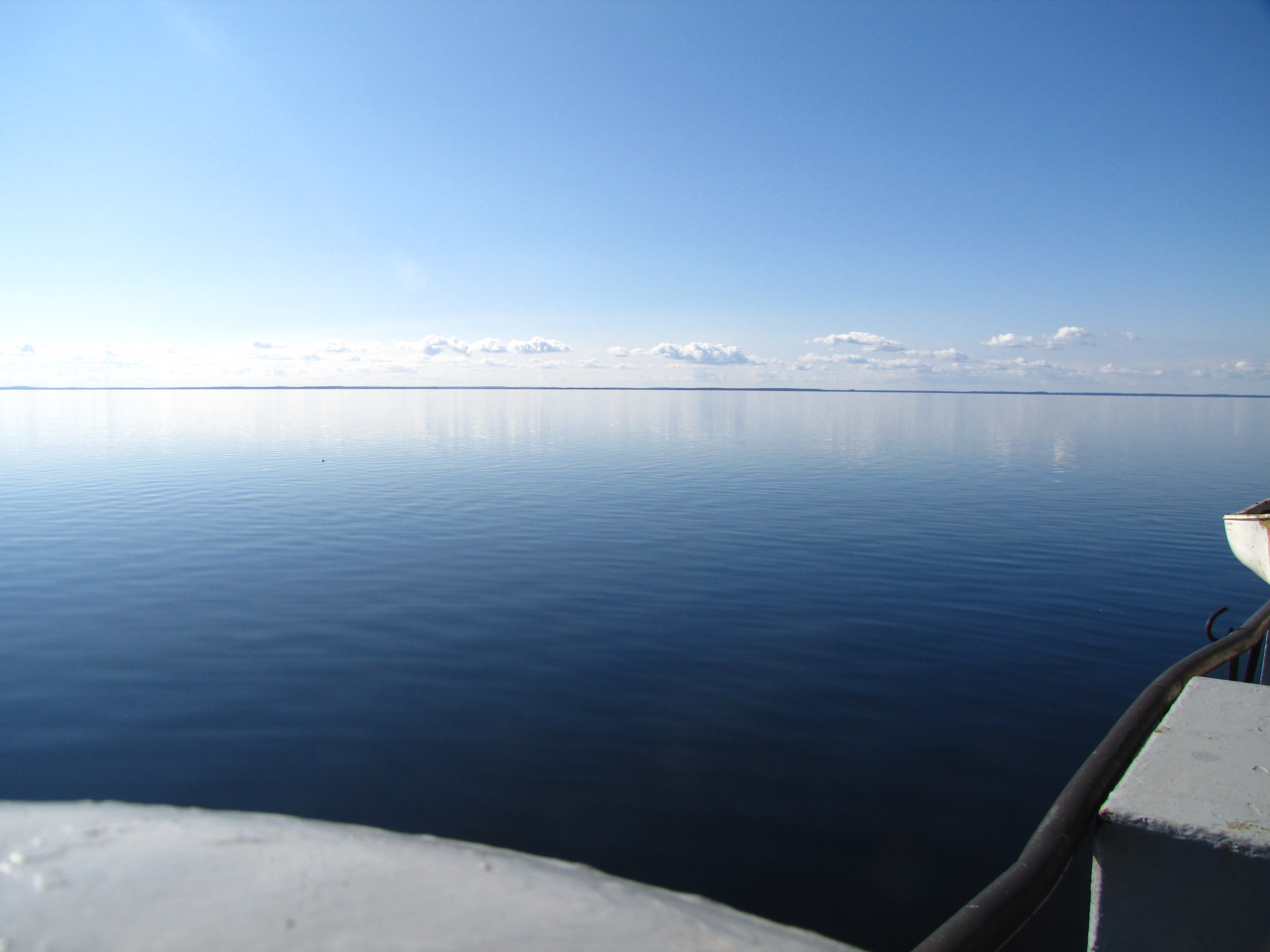 На фото, примерно посередине белого моря, где то справа Кольский полуостров, а слева Карелия. Ну или наоборот (IMG:style_emoticons/default/smile.gif) И такая погода бывала. Видно Карелию. До нее около 22 км! Рассвет, когда белые ночи уже закончились! |