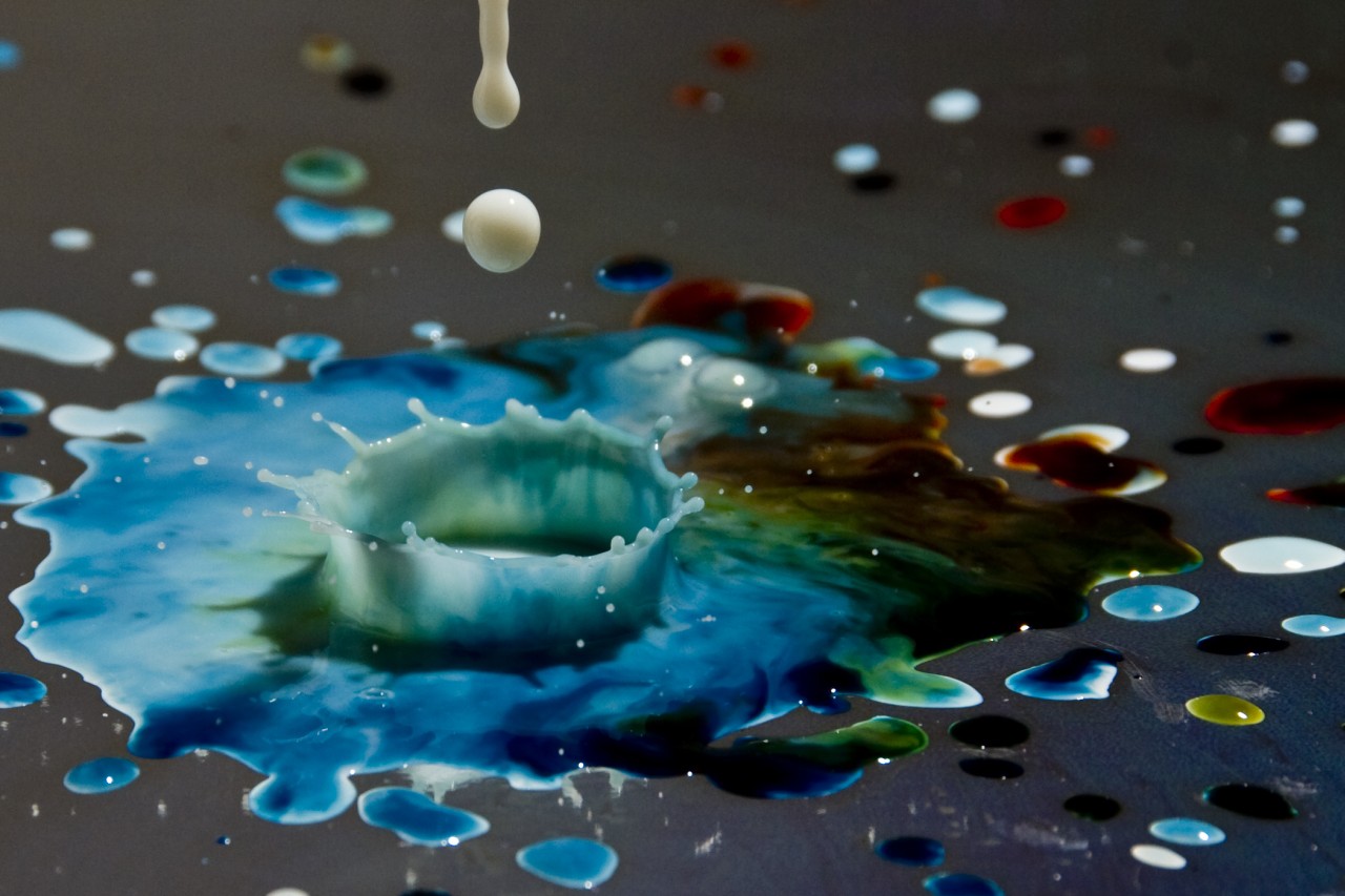 А я, в щели забрасываю раствор с мастерка или штатэля. Весьма крепко набивается и потом шикарно держится. (IMG:style_emoticons/default/biggrin.gif) Ключевое слово - "раствор". Андрюх, на моих фотках специальный клей для блоков. Он более жидкий и зерна практически нет. Его со шпателя стряхнуть проблема. И даже если сумеешь попасть куда надо, он как и всё жидкое разобьётся о края щели и отлетит обратно. Вот посмотри как разбивается капля жидкости о твёрдую поверхность ![]() Всё вокруг будет в клею, но только шов между блоками не наполнится |