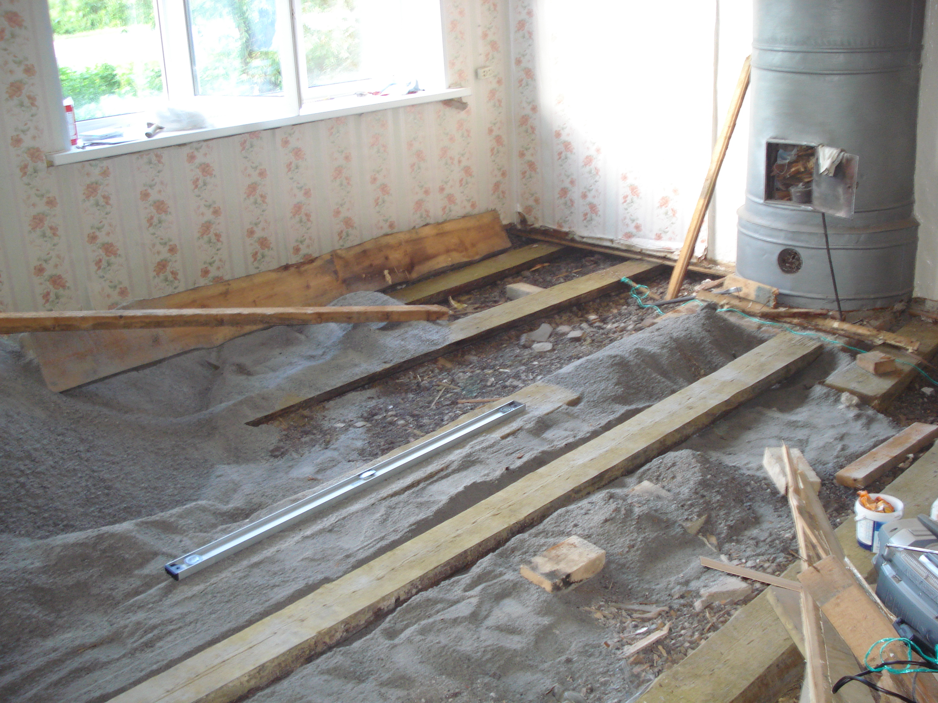 А я у себя вскрыл полы. Вчера перетаскал в одно лицо 3куба отсева, дабы подсыпать то, что подсело за долгие годы. сегодня лаги подровняю, сделаю засыпку и можно будет покупать доску на пол.