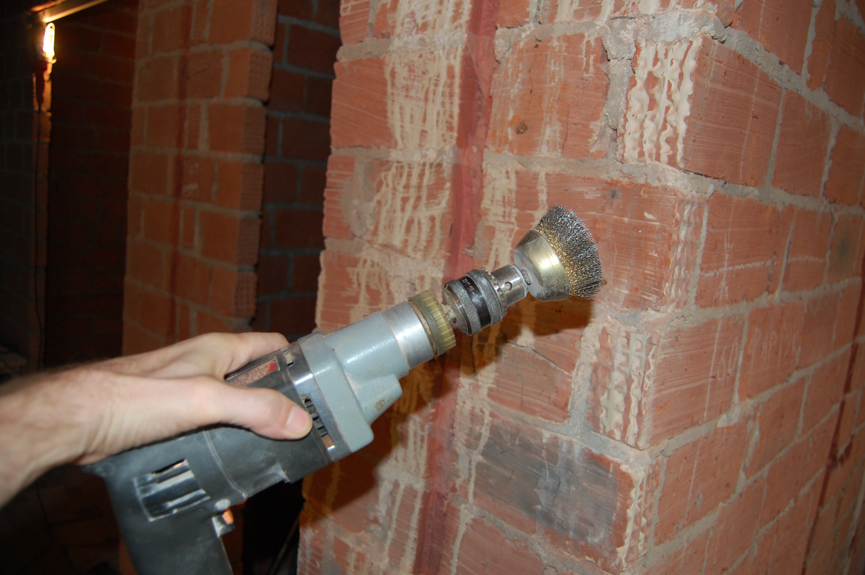 Кирпичные перегородки Ну с выступами любого происхождения борьба простая - сравнять! (IMG:style_emoticons/default/laugh.gif) Для этих целей обычно используются либо малярный топорик ![]() либо специальный скребок, который собственно напоминает собой всё тот же топор закреплённый на длинной ручке лезвием поперёк неё. Вполне можно обойтись обычным зубилом и молотком Перфоратор я использовать не стал, потому что даже от коротких серий его ударов вся перегородка из кирпича поставленного на ребро, резонировала и ходила ходуном. Что-то как-то напомнило разговор с одним строителем, который утверждал, что кирпич в стенах лежит под силой тяжести и силой трения. С высолами борятся специальными растворами. Основная беда их в то время была в том, что они после обработки требовали обильной прымывки стены. Да и сейчас я так понимаю дело не намного лучше, правда намного более разнообразней. Так как в квартире поступление воды на стены и в кладку наверно всё-таки исключено (IMG:style_emoticons/default/laugh.gif) , а соляной налёт отслаивающийся при прикосновении и мешающий сцеплению штукатурки с поверхностью перегородки убрать надо, то сделал по другому. Я его просто счистил (IMG:style_emoticons/default/biggrin.gif) . Обычной дрелью с обычной чашечной щёткой Эффективность оказалась очень высокая И скорость тоже. Работа по очмстке поверхности вентшахты заняла от силы полчаса |