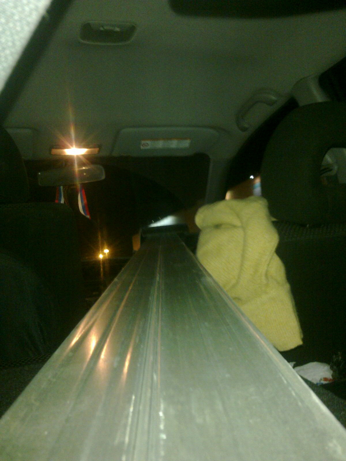 Пачка из 12 штук 3-х метровых потолочных профилей 60х27 в 9-ом Лансе. Берётся шумоизоляция от стояков канализации. Разрезается. и получается многофункциональная мягкоизоляция (IMG:style_emoticons/default/laugh.gif) На торпеду её И в багажник Одну часть спинки откидываем И пачка профиля в салоне с закрытым багажником Главное подлокотник и сиденье не заласить и изолировать их от профиля дежурным свитером живущим в машине. А рукавами можно плинтус сверху привязать (IMG:style_emoticons/default/smile.gif) Более тонкие вещи, типа 3-х метровых маяков просто под торпеду помещаются (IMG:style_emoticons/default/wink.gif) |