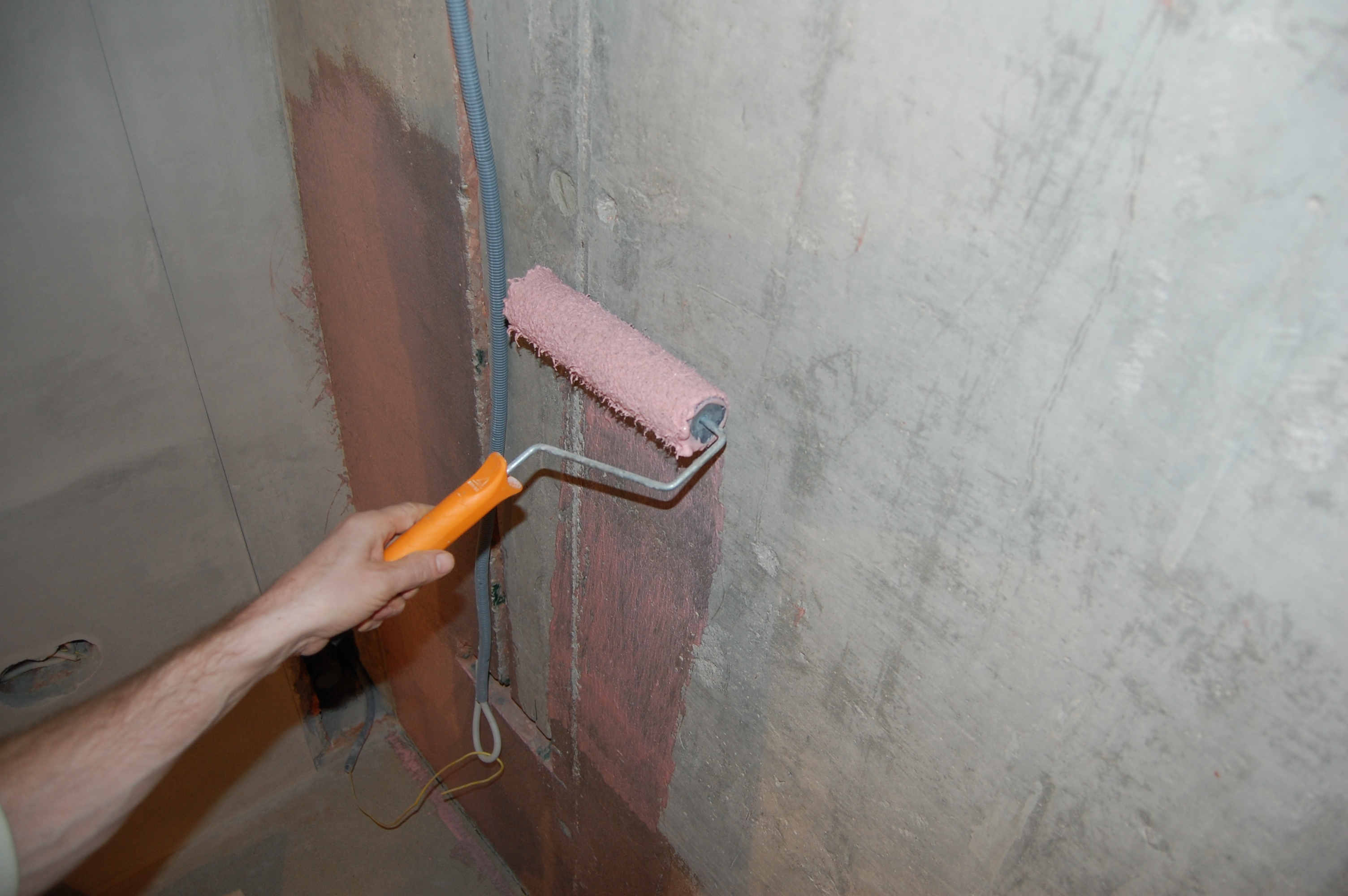 Грунтование поверхностей Перед нанесением грунта на стены расшифрую для таких же ... досконально пытающихся разобраться (IMG:style_emoticons/default/laugh.gif) (IMG:style_emoticons/default/tongue.gif) как я, пару терминов. В своё время меня поставили в тупик выражения "мокрым по мокрому" и "в два слоя". Понятие этих терминов пригодится не только в грунтовании поверхностей, но и в нанесении штукатурки, шпатлёвки, краски, клея... Мокрым по мокрому: Нанесение слоя грунта в неуспевший не только высохнуть, но и чуть подсохнуть, нанесённый слой того же грунта. Или проще говоря: возюканье кистью или валиком хоть десять раз по одному и тому же месту без перерыва. Ну типа забор красим (IMG:style_emoticons/default/laugh.gif) Смочили валик, регулируем нажим на него так, чтобы в серёдке валика перед ним по стене бежала волна, или как её ещё называют пенка, но по краям валика жидкость не капала и не стекала, покатили его по стене В какой-то момент грунт на валике кончается. В случае с бетонконтактом, с валика ещё выжимается на стену клей, окрашивающий её, а вот песок может и не наноситься Смочили валик, покатили его дальше Так как очень часто с первого прохода Бетонконтактом кварца на стене оказывается недостаточное количество, снова смачиваем валик и тут же катим его по следу В конечном итоге получится вот так А когда высохнет будет выглядеть более равномерно Дорожки, полученные в результате нахлёста по краям валика, ни на что не влияют. Вообще стена после прохождения Бетонконтактом при ближнем рассмотрении должна выглядеть вот так Но этого можно и не добиться. У разных производителей Бетонконтактов, разный размер фракционного наполнителя Вот замечательно видно даже по цвету красителя отличие между двумя марками: слева Фиедал, справа Пуфас При нанесении грунтов читайте инструкцию. Не наносить на промороженные, необеспыленные, нетвёрдые, необезжиренные и обязательно сухие... Ну с промороженным основанием всё ясно, да и не встретишь его в квартире. По поводу пыли - ну просто контролируйте поверхность пальцем. Есть на нём след - смывайте, иначе велика вероятность того, что клей обволочёт шарики пыли, лишь слегка прилипнув к стене, и тем самым создаст преграду для контакта между штукатуркой/шпатлёвкой/краской/клеем и поверхностью, на которую они наносятся. В результате всё отвалится. А если ещё по высохшему грунту в нужном месте провести пальцем - лопнет плёнка, как воздушный шарик и полезет лохмотьями. От греха используйте Бетонконтакты только на бетоне, как и следует из его названия. А пазогребень, кирпич, газо и пено блоки обрабатывайте обычным грунтом глубокого проникновения. И на всех поверхностях перед грунтованием их не важно чем, старайтесь делать борозды или насечки Вот по пазогребню перед штукатуркой На этом участке, т.к. он будет закрыт стенкой шкафа я поэксперементировал. Сначала прогрунтовал пазогребень грунтом глубокого проникновния, потом после просушки Бетонконтактом. Бетонконтакт когда он высох пальцем отковырять не смог. Штукатурка на нём до сих пор держится. Вот по штукатурке перед плиткой Про жир. При заливке монолитных плит используется специальная смазка, которая наносится на опалубку, чтобы последнюю было легче отделить после застывания бетона. Если наткнётесь (IMG:style_emoticons/default/biggrin.gif) на такое, то удаляйте. На жир ничего, кроме пыли не прилипает. Ну и если основание влажное, то д