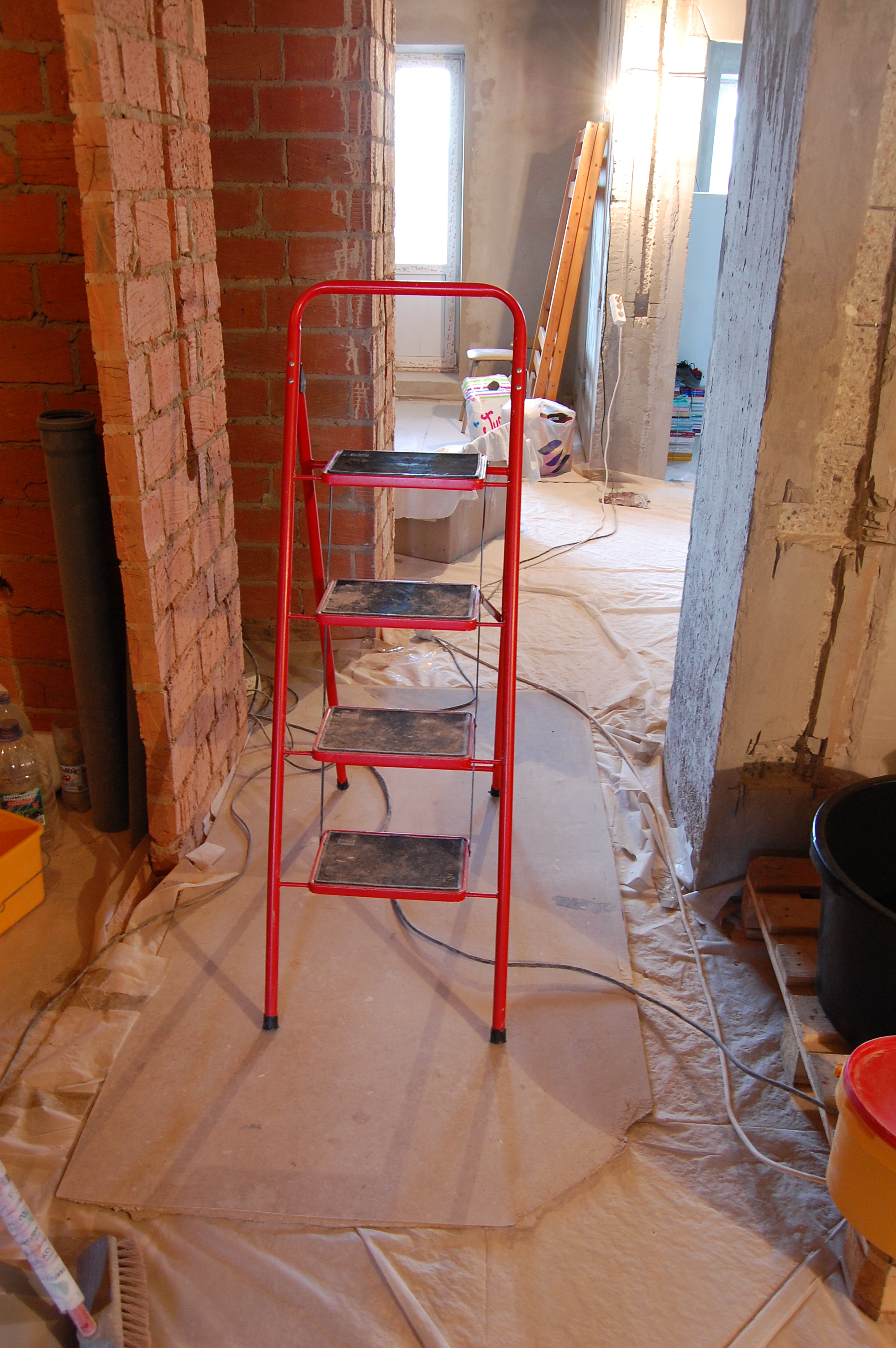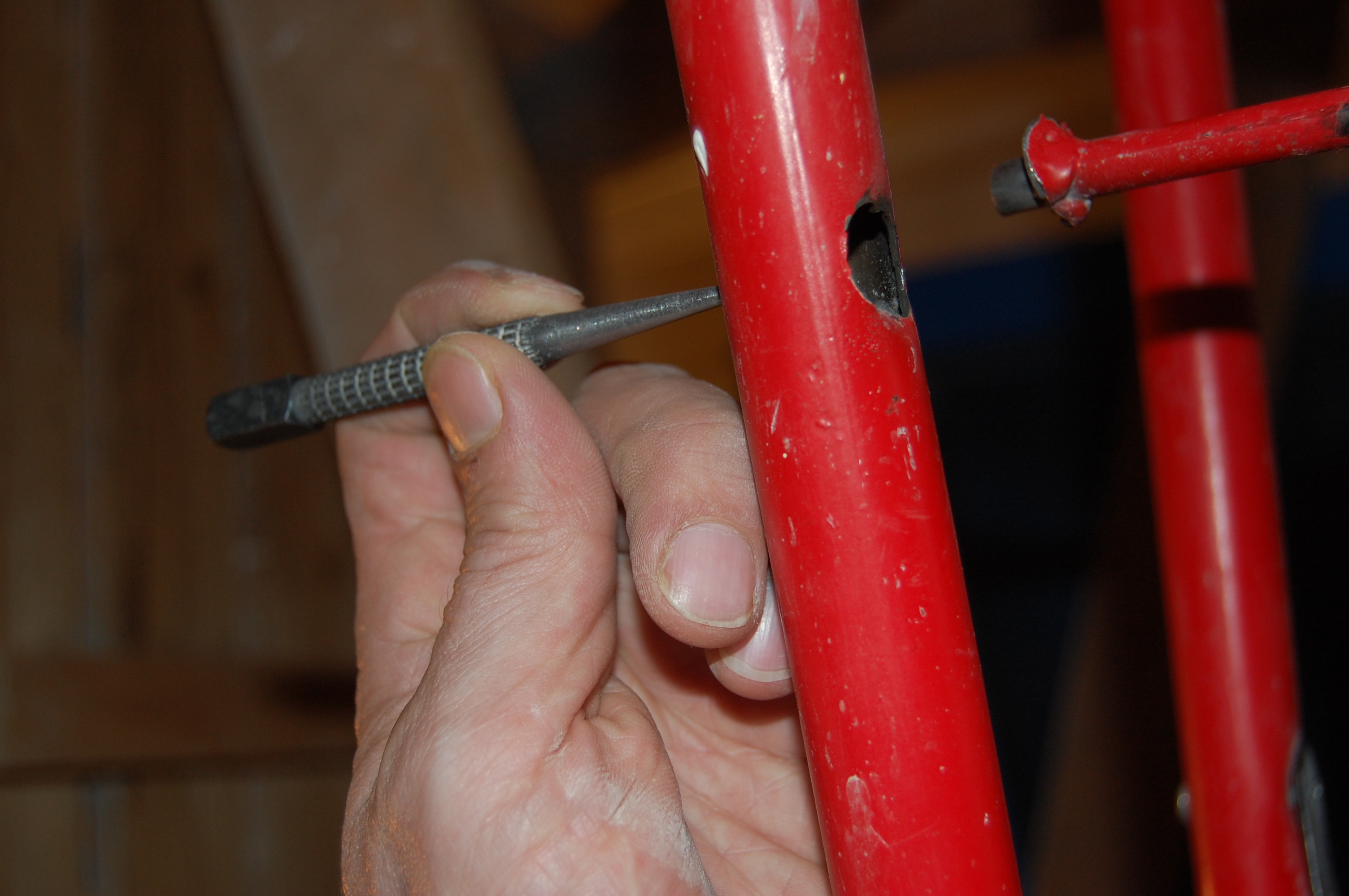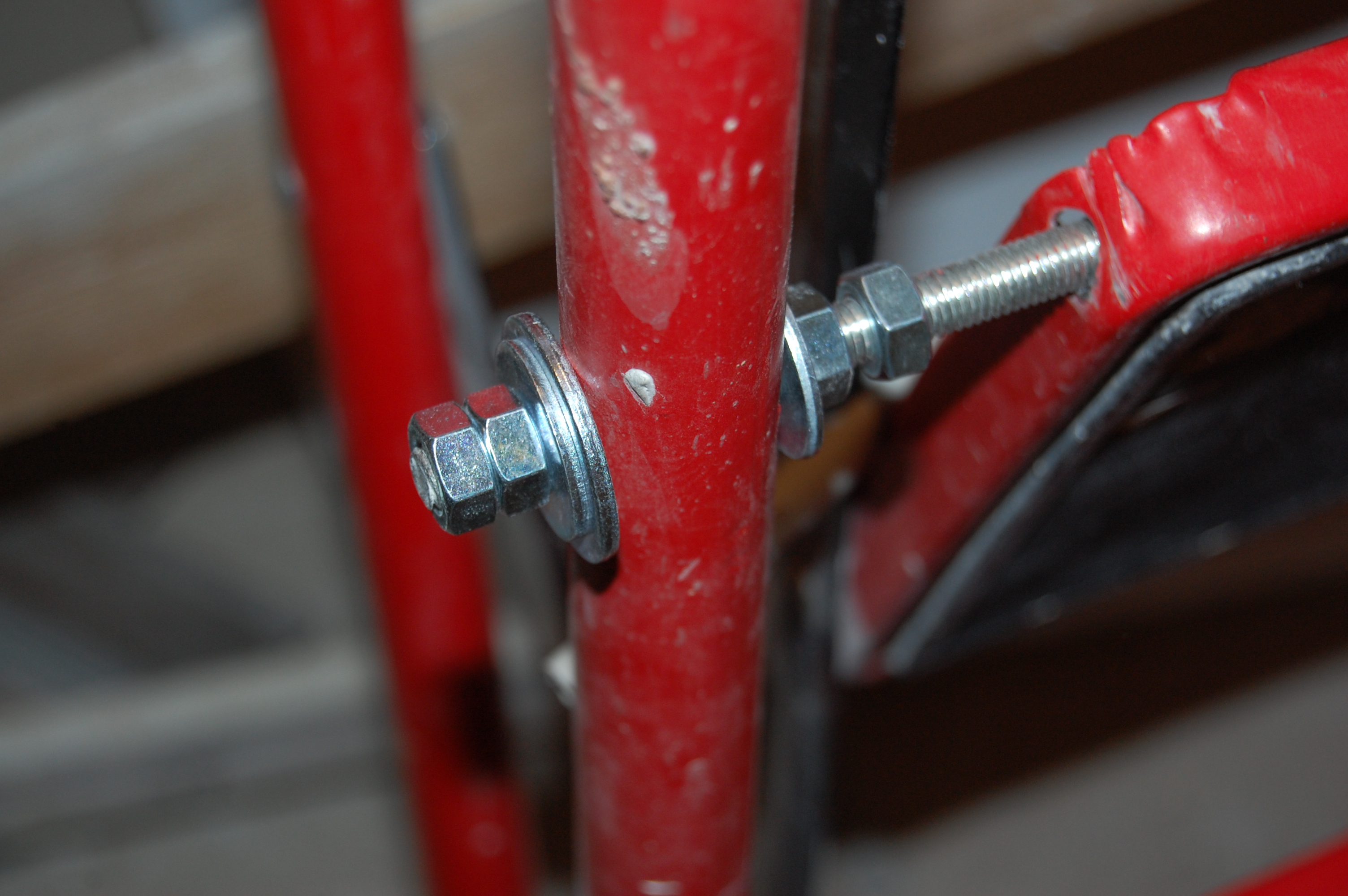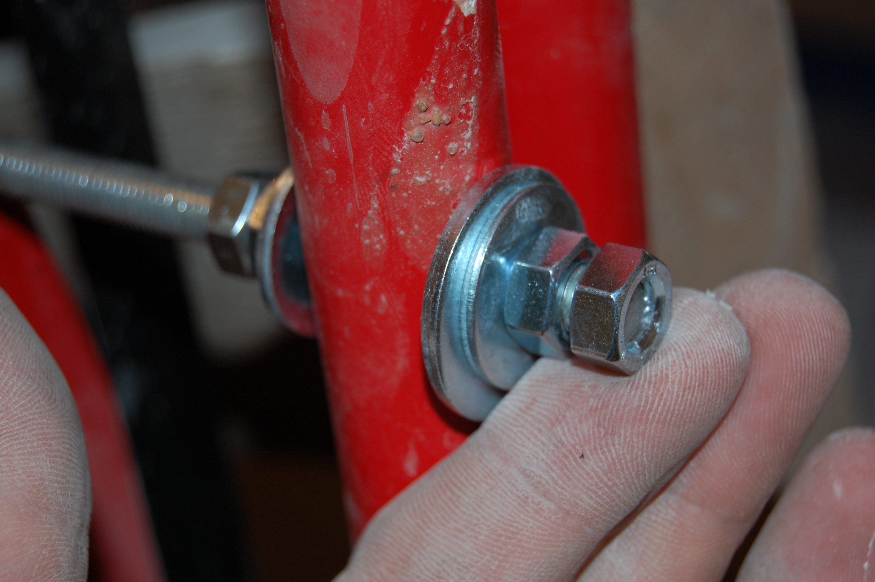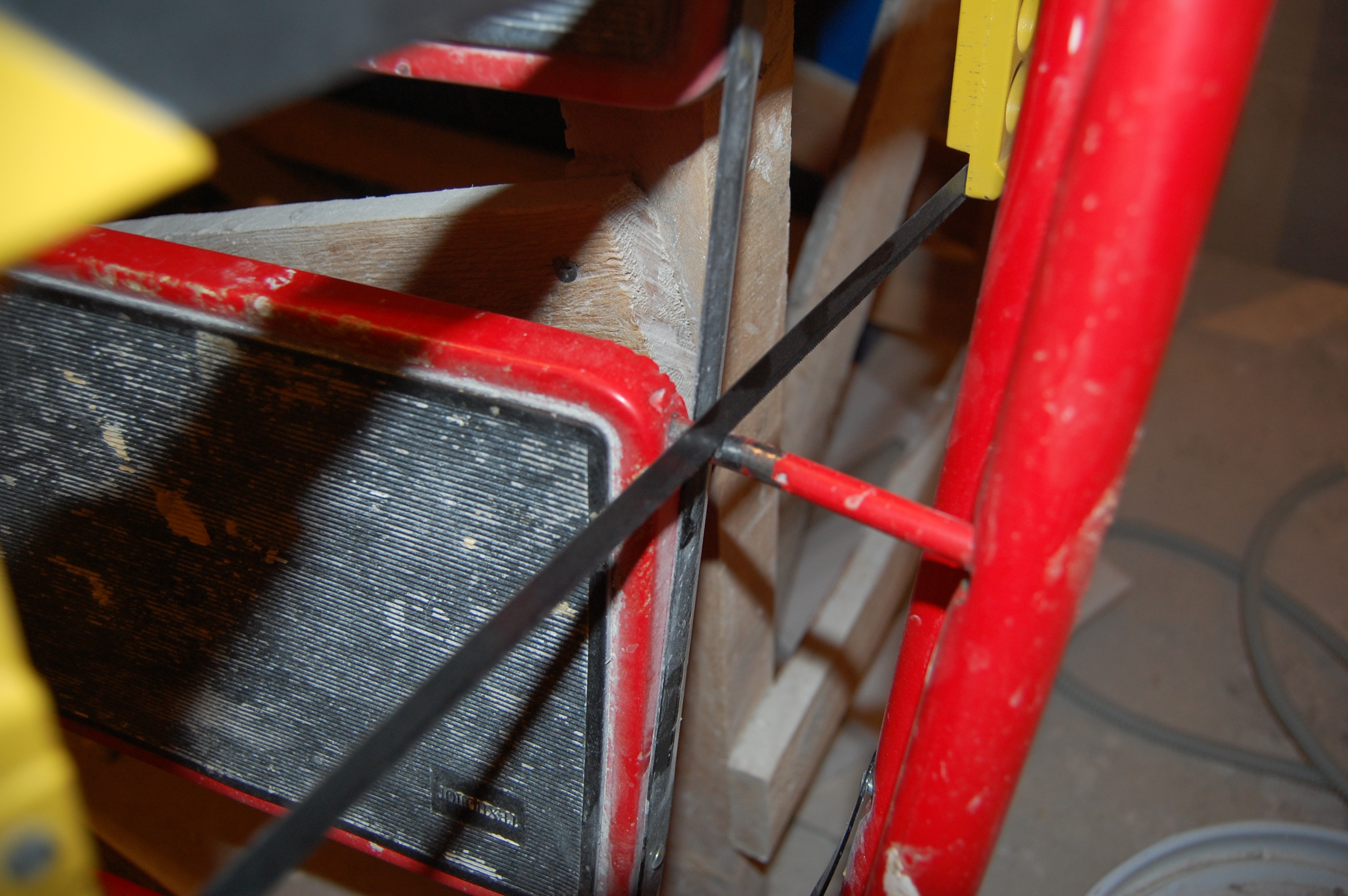 Но манипуляции без стремянки ( старожилы помнят топик посвящённый поломке ) стали неудобны и немобильны. Итак чиним стремянку Вот она моя красавица! (IMG:style_emoticons/default/smile.gif) Чем она удобна и почему я её пёр через границу (IMG:style_emoticons/default/laugh.gif) Ну во-первых, конечно жадность! (IMG:style_emoticons/default/biggrin.gif) Где в Москве купишь стремянку за 800 рублей? А тут всё равно машина пустая шла. Во-вторых, ступеньки. На ступеньку можно стать полной стопой, крутиться не слезая со стремянки на ступеньках не теряя равновесия и не опираясь и не цепляясь ни за что руками. И к тому же на ступеньках прорезиненные накладки - в какой бы обуви не залез, нога не соскользнёт. Но вот приключилась с ней беда - стали отваливаться перекладины Встанешь на такую ступеньку, согнётся по краям оторванная распорка и ... не поднимешься высоко (IMG:style_emoticons/default/laugh.gif) Помнится, когда думал её заварить, Серёга Лан упомянул про шпильки. Не знаю, что он имел ввиду, но наверно я претворил его идею в ... стремянку (IMG:style_emoticons/default/biggrin.gif) Заскочив в Леруа запасся ремкомплектом Поддерживающий ступеньку прут перепилил. Металл сырой - пилится "на ура" Перепилил. Вытащил. С обратной стороны образовавшейся дыры на ноге стремянки делаю отверстие Керню, чтоб сверло не соскальзывало Сверлю В просверленное отверстие на ноге стремянки продеваю шпильку, перед тем как проткнуть шпилькой ступеньку накидываю шайбу и пару гаек С противоположной стороны ступеньки перед тем как проткнуть ногу тоже гайки и шайбу Фиксирую шпильку в нужном положении и конторю её гайками с одной и с другой стороны С внешней стороны оставил хвостик, чтобы так же влезли шайба и две гайки. В принципе снаружи надел потом самоконторящиеся гайки, но что-то они мне не внушили доверия при осмотре, поэтому на всякий пожарный делал хвост под две обычных С другой стороны отпиливаю ( можно ножовкой, можно болгаркой ) лишнюю шпильку ( ну она на следующую ступеньку пойдёт ) Чтобы не тянуть сопротивляющуюся контргайку через полсотни сантиметров свободной шпильки, перед тем как пилить шпильку на неё надо надеть простую гайку, которая при откручивании восстановит резьбу на месте отпила Надеваю на её место самоконторящююся Затягиваю гайки и проверяю работоспособность. Вот стремяночка подставив ступенечку стоит Вот сложилась Со второй отвалившейся ступенькой делаю то же самое и любуюсь (IMG:style_emoticons/default/smile.gif) |