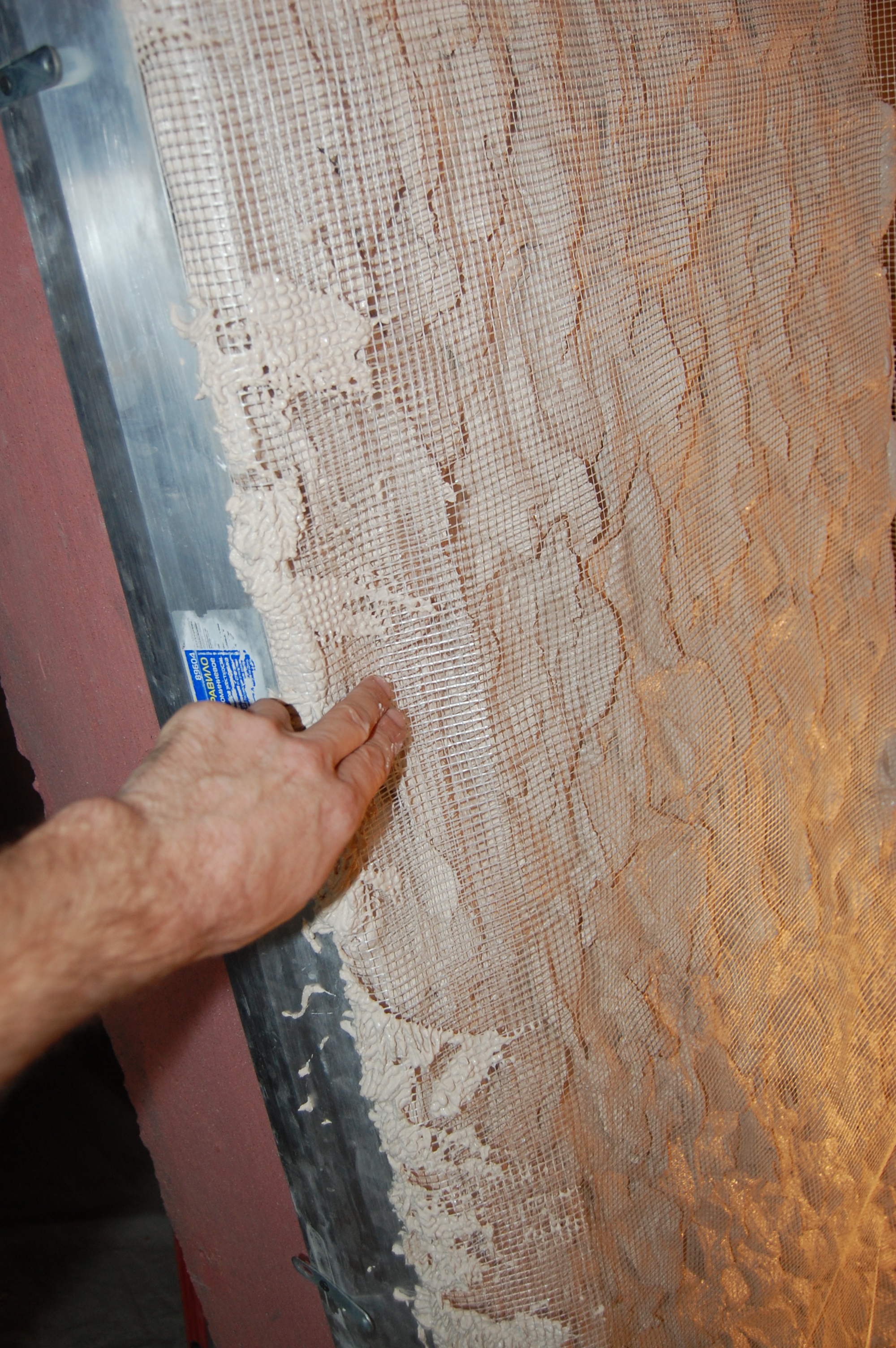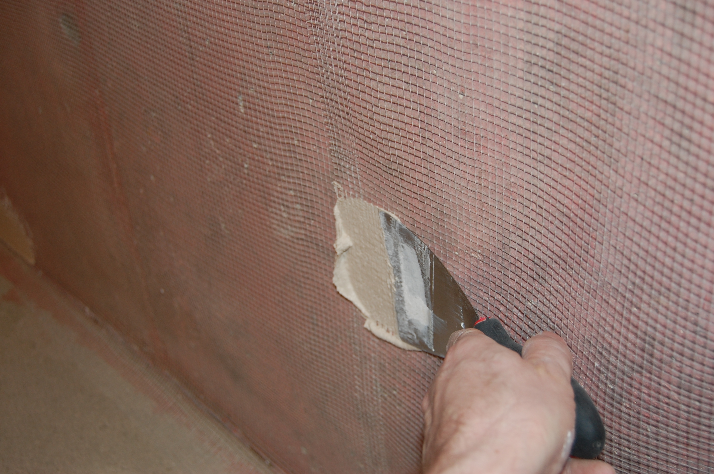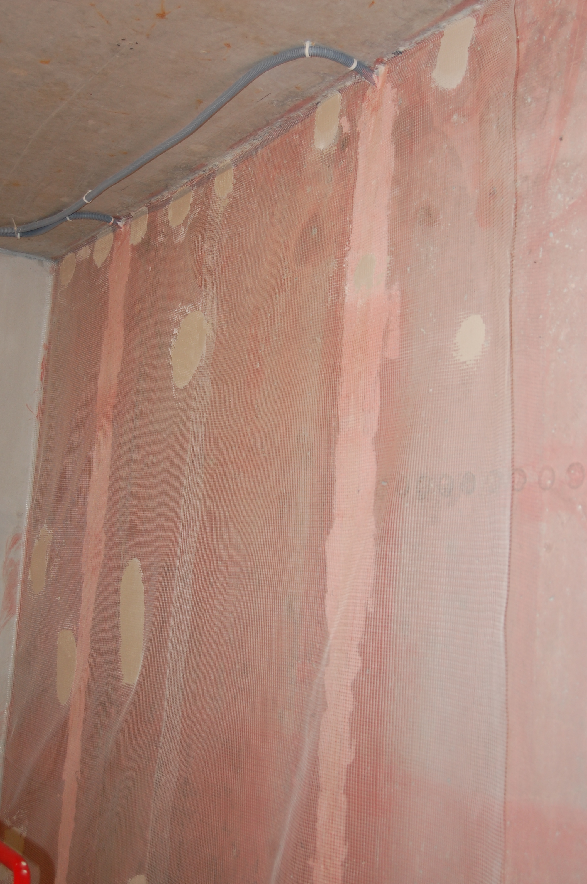 Армирование поверхностей штукатурной сеткой Соседнее полотно прикладывается к уже закреплённому с нахлёстом в 10 см и в первую очередь точно также как и предыдущее сначала крепится сверху и далее по тому же алгоритму. Единственное, что надо обязательно примазать сам перехлёст полотен ... В общем когда вы в итоге увидите вот такую бетонную, кирпичную, пазогребневую, газопенобетонную, ... стену из однородного материала покрытую сеткой знайте, что либо вы убили на ненужное действо время и потратили деньги. Либо вас просто разводят на деньги. Вреда вроде нет, но и пользы тоже. Ещё раз: Сетка встраивается в штукатурку ближе к её поверхности на участках перехода с одного основания на другое. Для любителей поэксперементировать. Для того, чтобы штукатурная сетка выполняла своё назначение, на стену наносится слой штукатурки, к нему пристраивается сетка, и сверху укрывается вторым слоем штукатурки. Утопить сетку в слой штукатурки сверху Ни пальцами Ни шпателями не потеряв огромную уйму времени вам не удастся. На выходе скорее всего получите поверхность штукатурки армированную сеткой |