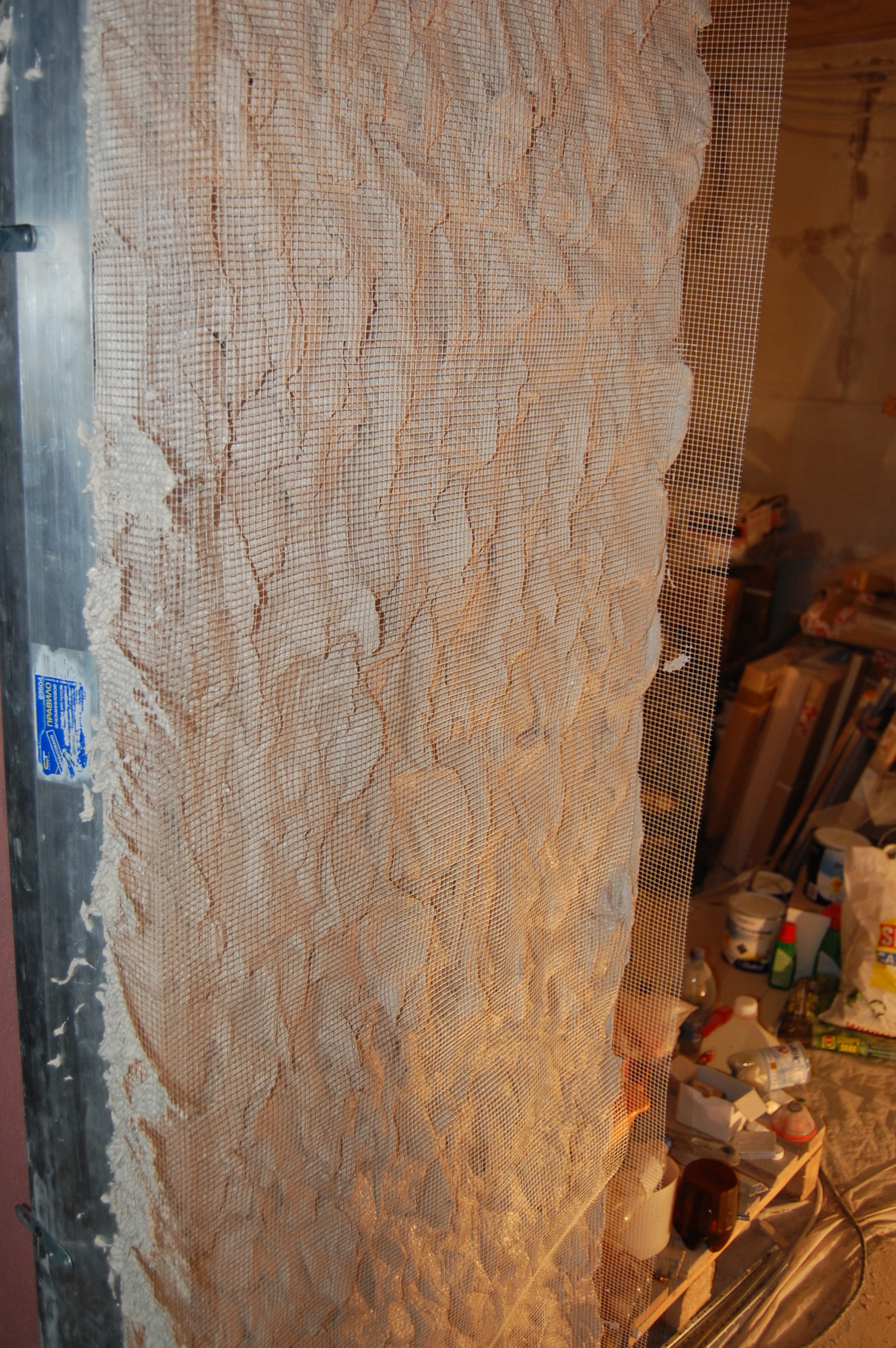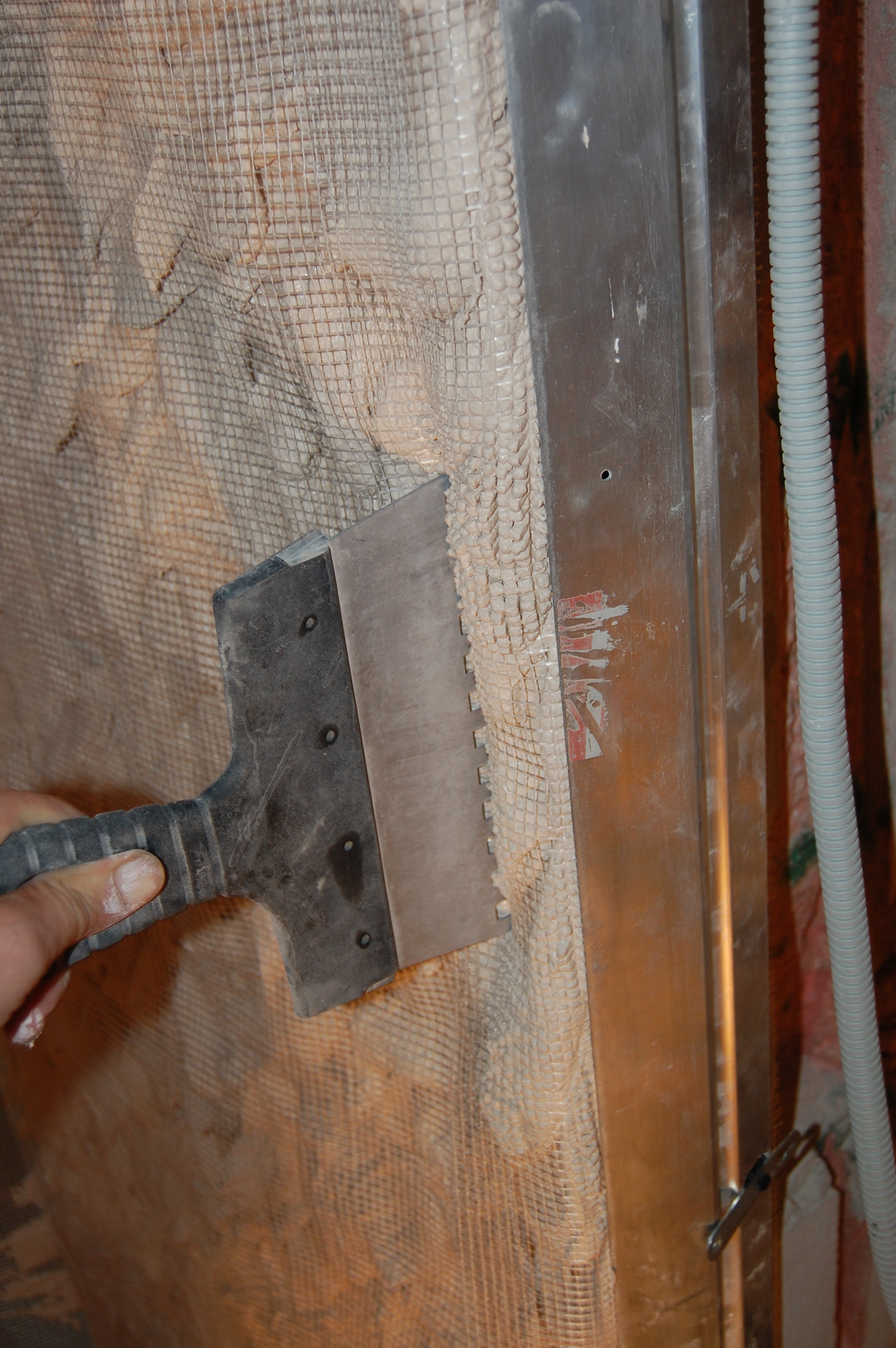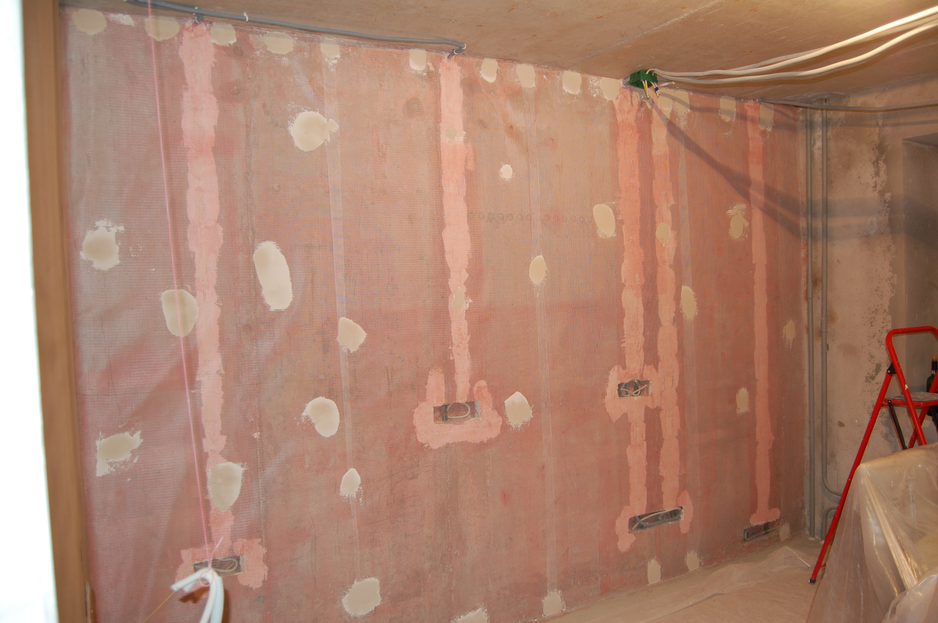 Армирование поверхностей штукатурной сеткой Соседнее полотно прикладывается к уже закреплённому с нахлёстом в 10 см и в первую очередь точно также как и предыдущее сначала крепится сверху и далее по тому же алгоритму. Единственное, что надо обязательно примазать сам перехлёст полотен ... В общем когда вы в итоге увидите вот такую бетонную, кирпичную, пазогребневую, газопенобетонную, ... стену из однородного материала покрытую сеткой знайте, что либо вы убили на ненужное действо время и потратили деньги. Либо вас просто разводят на деньги. Вреда вроде нет, но и пользы тоже. Ещё раз: Сетка встраивается в штукатурку ближе к её поверхности на участках перехода с одного основания на другое. Для любителей поэксперементировать. Для того, чтобы штукатурная сетка выполняла своё назначение, на стену наносится слой штукатурки, к нему пристраивается сетка, и сверху укрывается вторым слоем штукатурки. Утопить сетку в слой штукатурки сверху Ни пальцами Ни шпателями не потеряв огромную уйму времени вам не удастся. На выходе скорее всего получите поверхность штукатурки армированную сеткой |