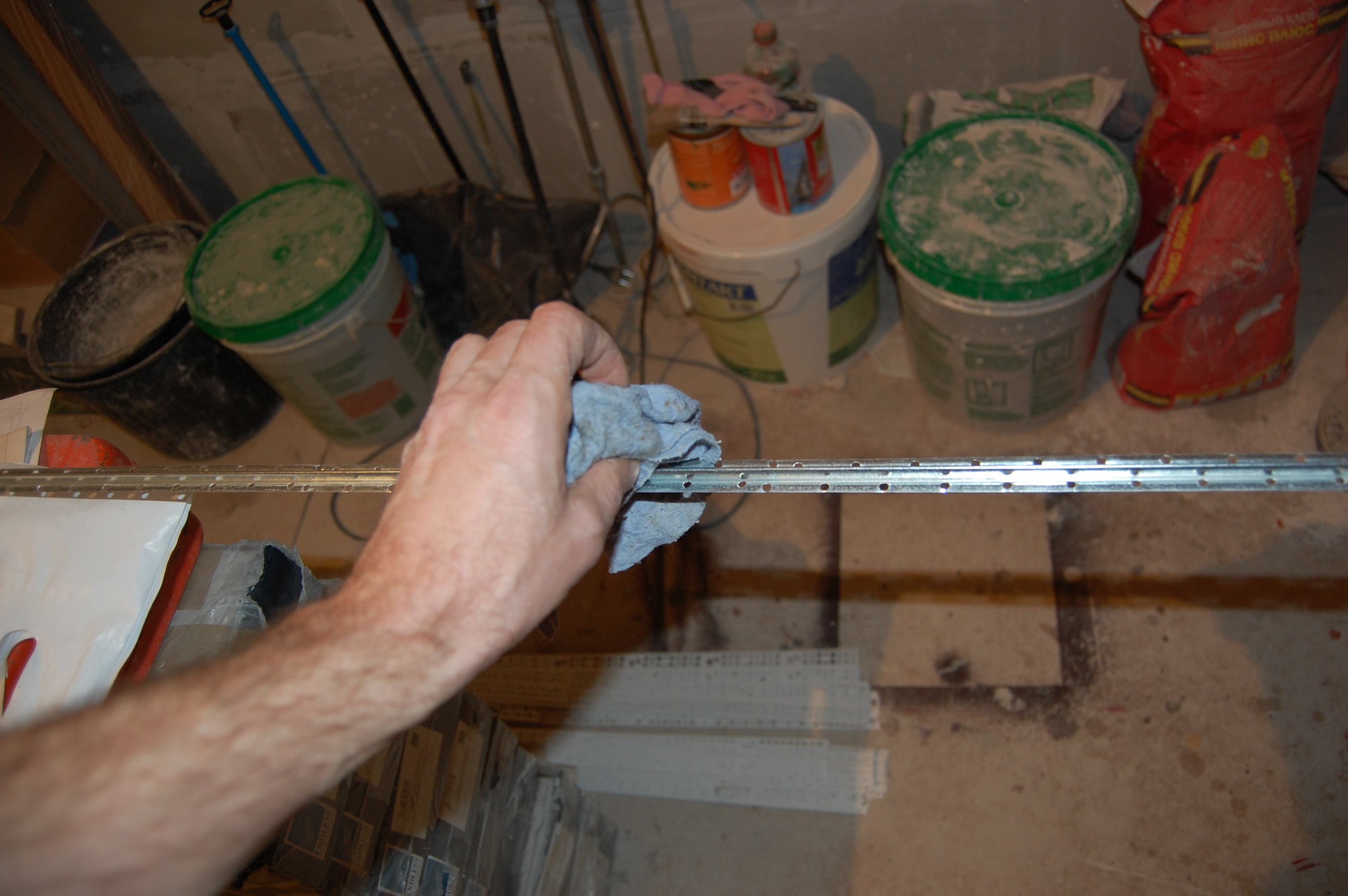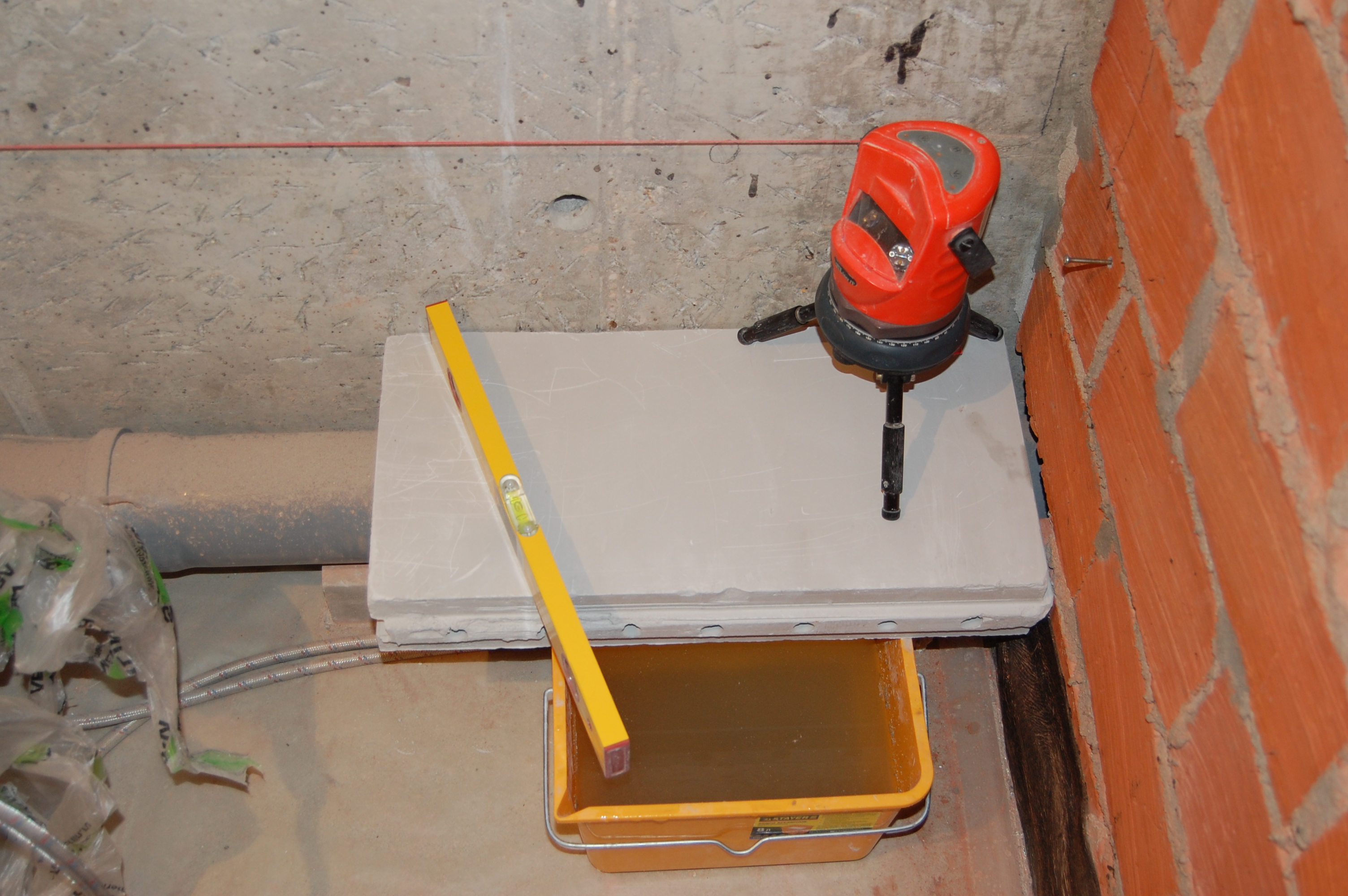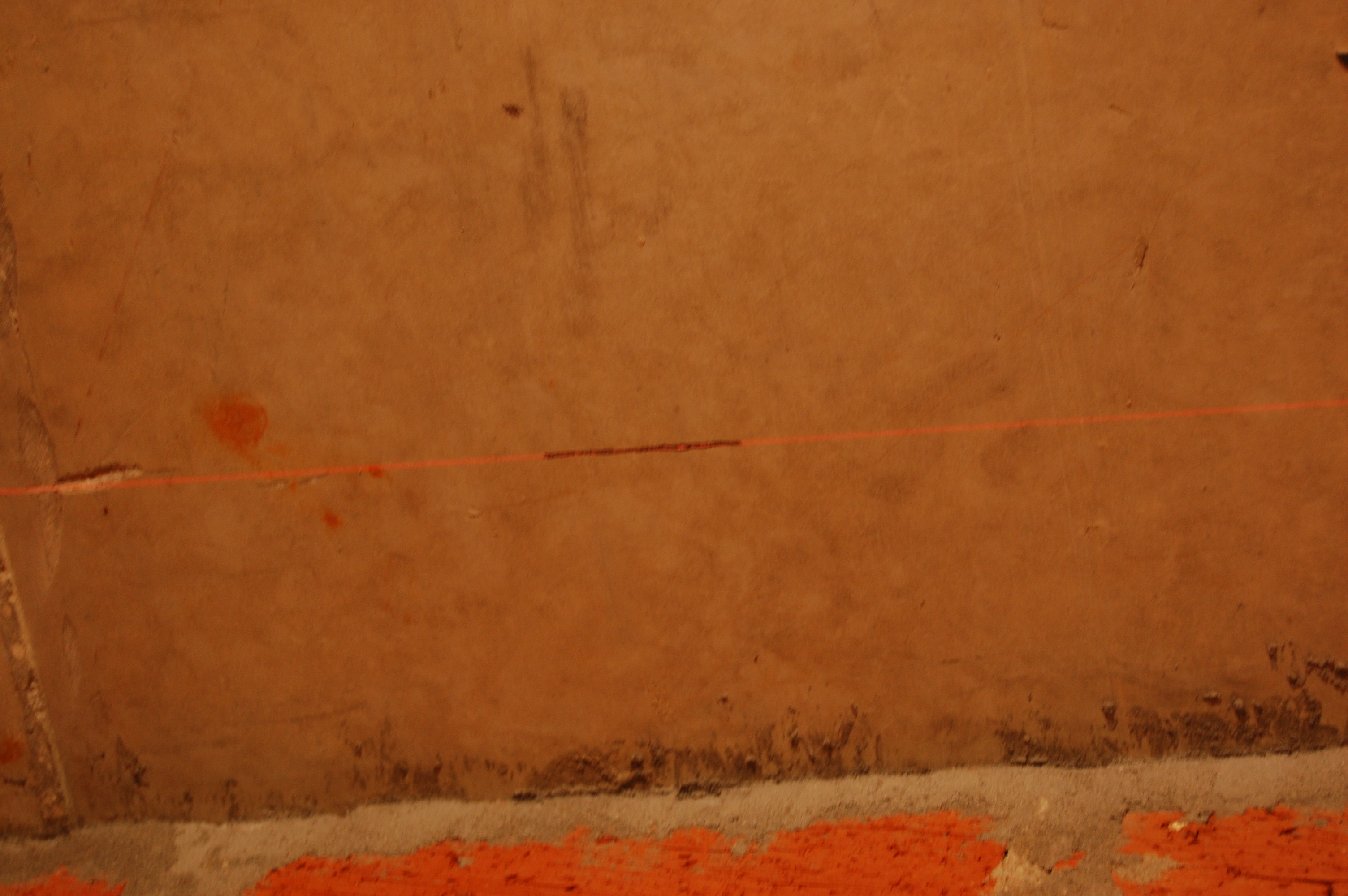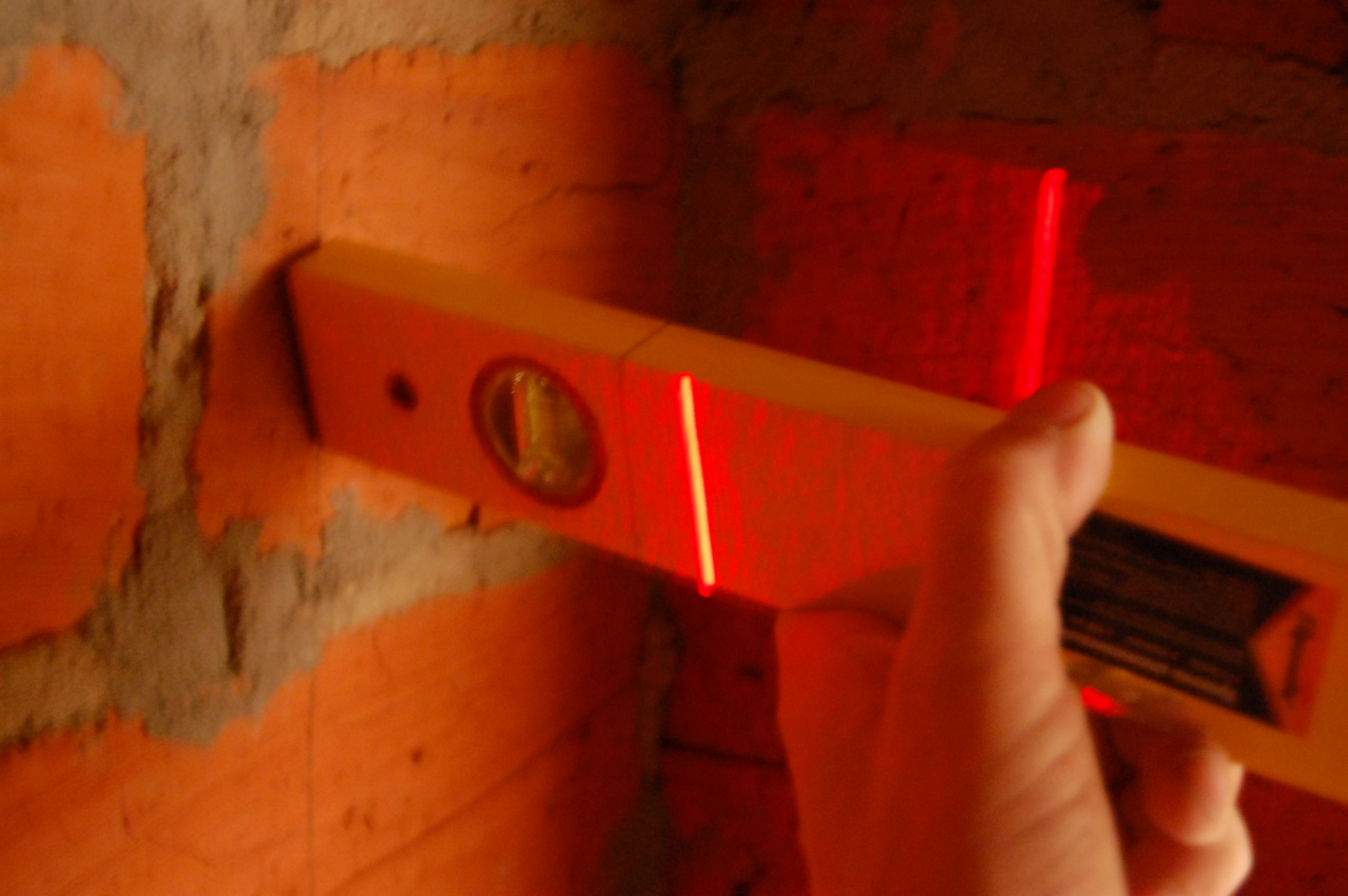 Вот промеряя такой маркой кривизну стены между её поверхностью и лучом лазера, находим самое выступающее, у меня это к сожалению не зафиксировано, но "ноль" марки установлен именно по такой точке, и заглубление остальной стены Вот ещё глубже Для чего всё это нужно? Чтобы не наносить штукатурку слишком толстым слоем, дело и в удобстве работы и в экономии материала, слой штукатурки можно вывести с выпуклостью под ноль ( под свою ответственность (IMG:style_emoticons/default/wink.gif) ), но лучше всё-таки под минимально указанную толщину слоя завода-изготовителя данной штукатурки. Обычно 5 мм. Дело в том, что при уменьшении данной толщины, происходит неправильное отверждение слоя и приклеивание его к поверхности, в связи с преждевременным обезвоживанием смеси. Ну и зернистость смеси влияет на прочность слоя. В результате в общем-то идёт отступление от правил установки маяков, т.к. здесь маяк устанавливается не там где положено, а в то место, которое по своей глубине позволяет это сделать. Оно не обязательно должно быть самым глубоким. Вот здесь видно, что расстояние между опорной площадкой марки и стеной позволяет установить маяк. Когда помещение совсем кривое иногда приходится елозить лазером в поиске оптимальной поверхности штукатурки и с другими соображениями, а не так, чтобы сэкономить. Когда лазеру наконец найдено подходящее место, то так как он у меня не плоский, по которому можно сразу "под шпатель" установить маяки, а обычный круглый отстоящий от стены на приличное расстояние, сразу отмечаем его положение в пространстве Точка под ним Имейте ввиду, что в связи с шероховатостью поверхности, на которой установлен лазер, крестик под ним я рисую не как обычно перечёркиванием, а опуская жало карандаша в точку лазера и от неё, т.е. от центра крестика, к краям. Крестик будет неровный, зато точный (IMG:style_emoticons/default/cool.gif) Точка пересечения двух вертикалей в моём лазере над ним Несколько штрихов по потолку удаляясь от лазера Ну и на противоположной стене Вся эта разметка нужна, не только потому, что можно не успеть поставить все маяки по стене по каким либо причинам: неопытность, прервали срочным делом..., но и потому, что, опять повторяю, лазер отстоит от стены, за один раз "просвечивается" только две стены И чтобы уйти на третью стену под прямым углом, лазер надо будет установить у противоположной стены встречным курсом ( здесь вот не на панель перекрытия, а на искусственно созданную площадку, естественно предварительно выровненную в горизонт по уровню когда один из лучей устанавливается по нанесённым меткам на потолке, а второй уходит на ещё "неохваченную" стену Естественно вся разметка повторяется и по ней замыкаем уже прямоугольник на четвёртой стене. |