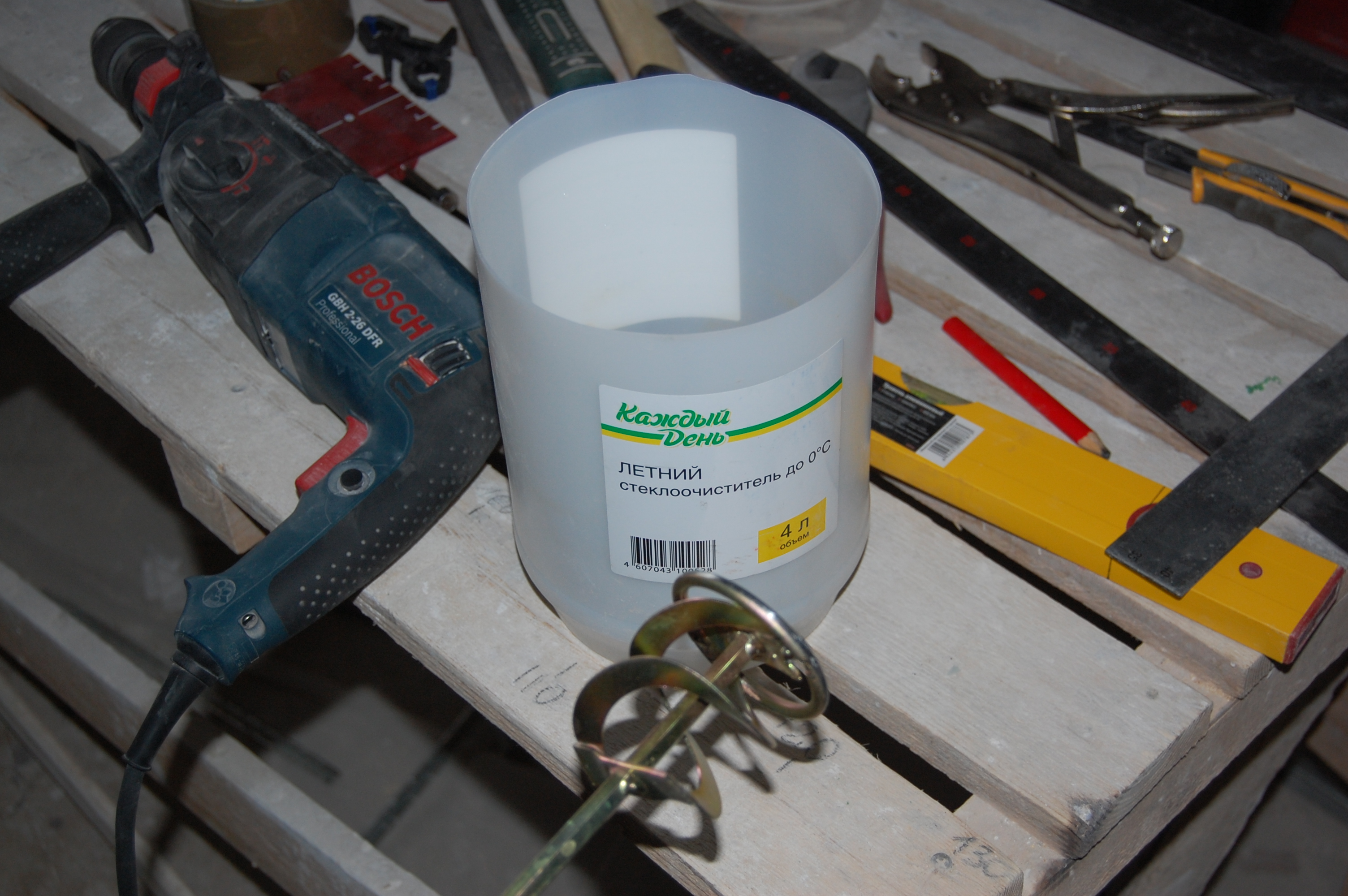 Продолжение Установка маяков Продолжаем. Когда с местом для маяков определились. Плоскость будущей стены вычислили. Метку заготовили. Нужное количество маяков нарезали... Да!!! Кстати!!! Маяки бы нужно протереть от пыли влажной тряпкой Прилипают они тогда к штукатурке без проблем даже малой площадью. Так ... лазер на тщательно вымеренном месте установлен, лучик светит, маяки в порядке установки ( устанавливать начинаем с дальнего от лазера!!! ) рядышком На установку 6 мм маяка уходит при несильно кривых стенах при среднем расстоянии от подошвы маяка до стены в 10 мм около 600 грамм смеси. Вооружаемся перфоратором/дрелью/или что лучше специальной дрелью-миксером, подходящей насадкой, и ёмкостью нужного объёма Чтобы излишне не аккуратничать, ёмкость лучше брать такую, чтобы смесь занимала половину, максимум 2/3 объёма Смесь на которую ставится маяк, должна быть именно того же состава, что и штукатурка. Приходилось видеть как вокруг маяка установленного на гипс под ЦПС пластами штукатурка отваливалась - обезвоживание ))) |