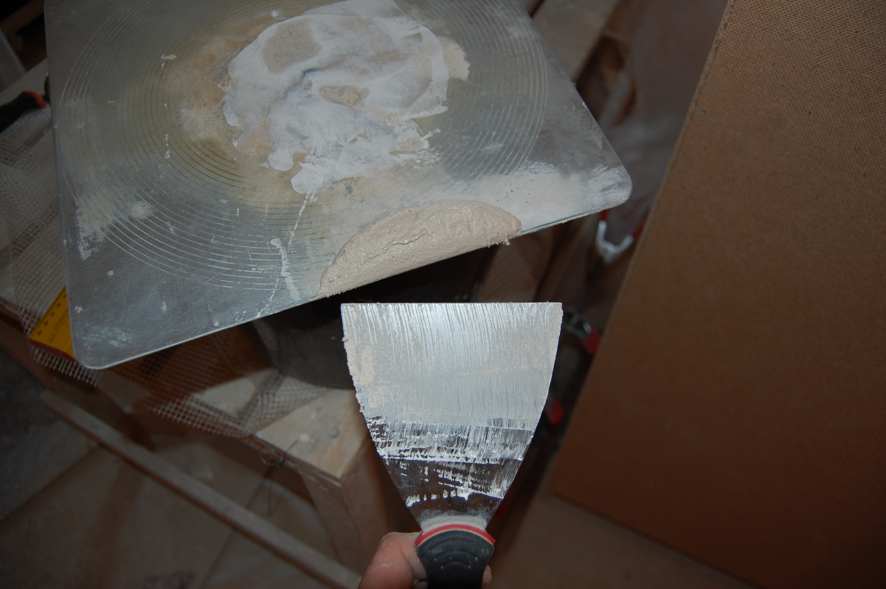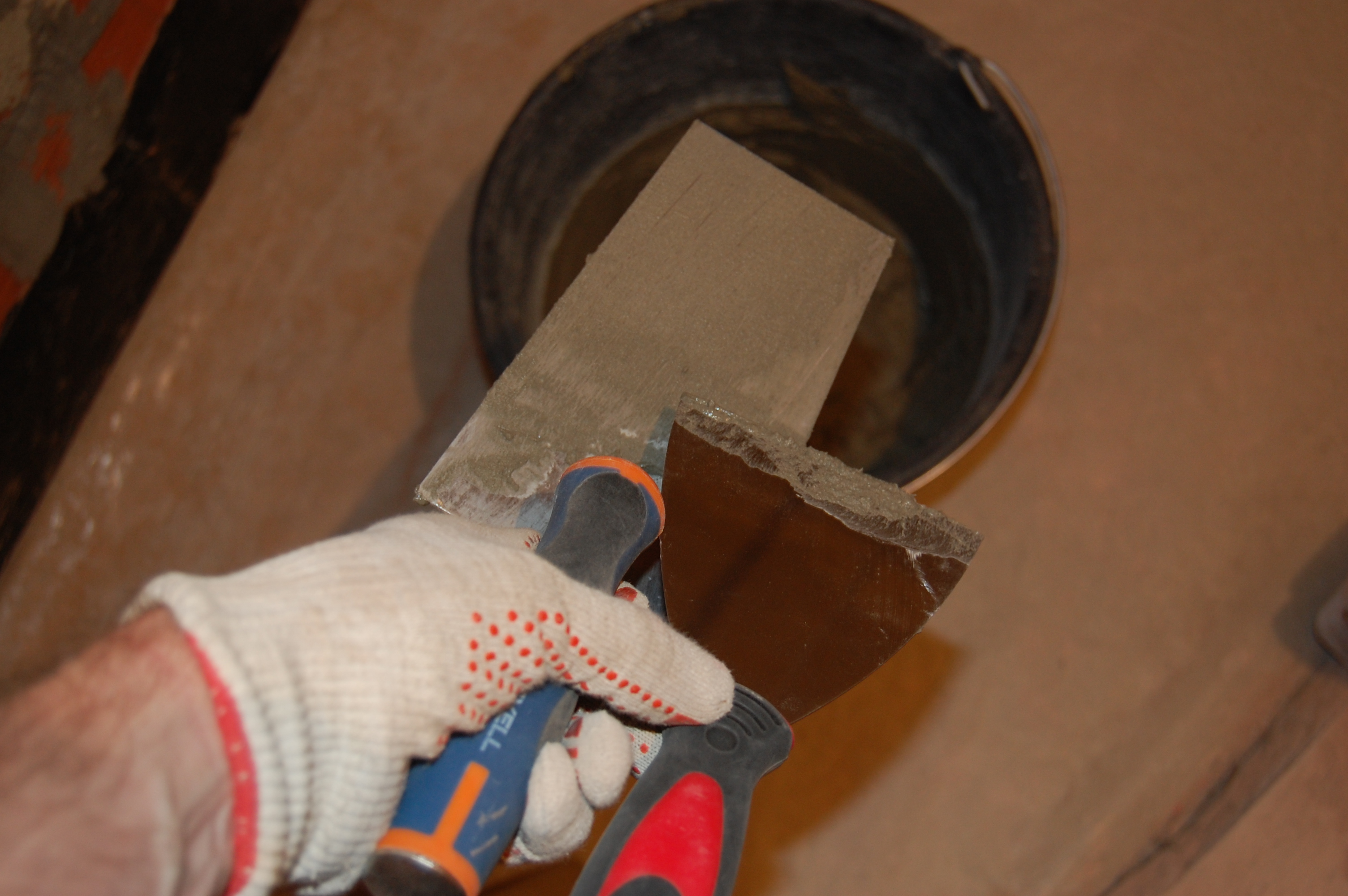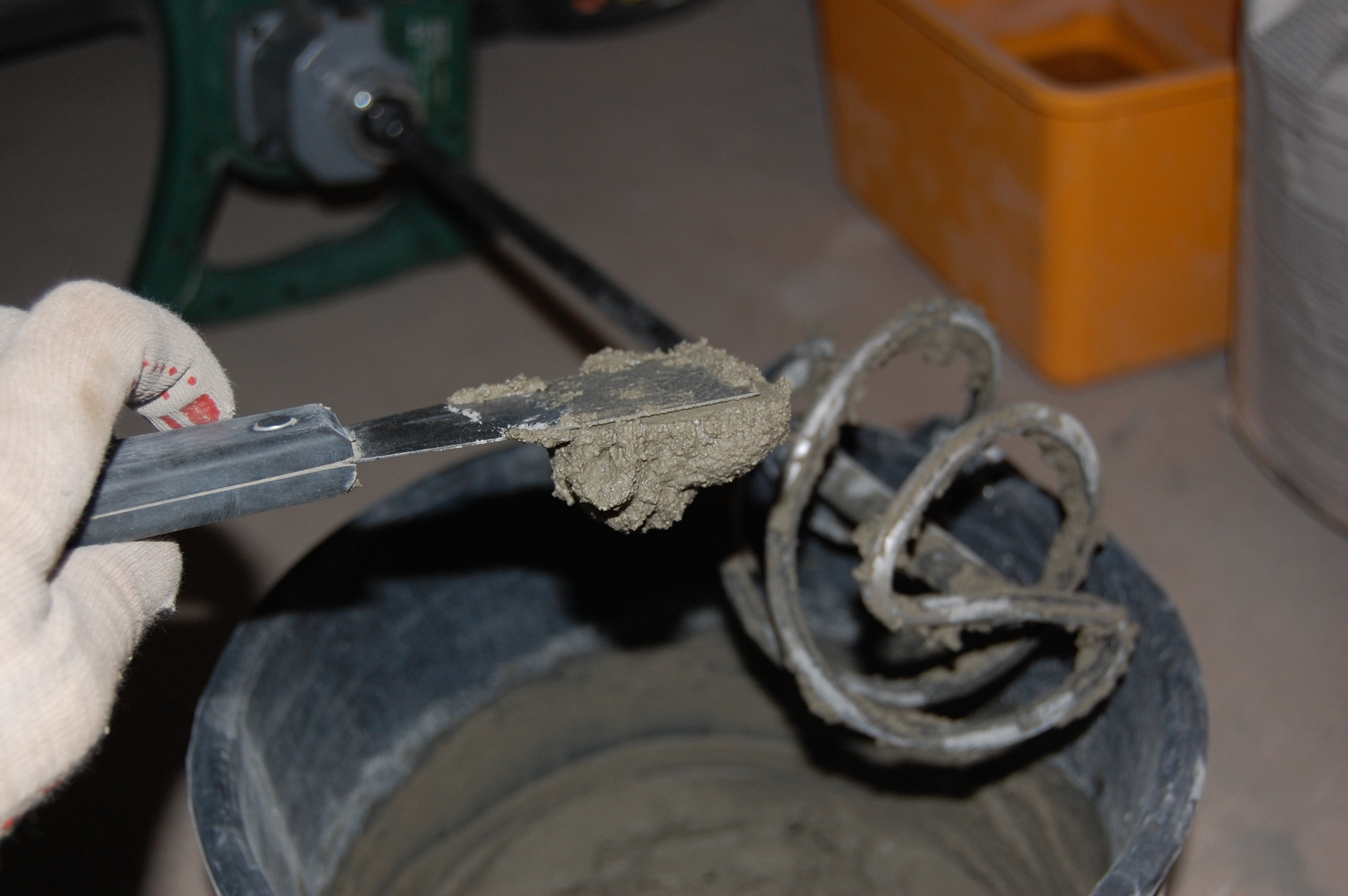 Штукатурку можно замешать чуть погуще, чем положено, так как отдельная кучка не поддерживаемая своими собратьями/сестрами так и стремится оплыть по стене. Так как смесь должна сама по себе некоторое время держаться на вертикальной поверхности кельмы/шпателя, то для первых проб, для неопытных, можно проверить густоту замеса так: Набираем на шпатель смесь Быстро переворачиваем его Смесь прилипнув к поверхности должна держаться на ней не отваливаясь. Но так как её со шпателя всё-таки надо переместить на стену, то если повернуть шпатель на ребро Смесь через одну-две секунды должна начать скользить по лезвию ( в данном случае видно что она начала с проворота вокруг горизонтальной оси ) И в конечном итоге секунд через пять соскользнуть с шпателя По мере того как рука набьётся можно будет и к более жидким и более подвижным смесям перейти. Я предпочитаю творить кучки шпателем ( Блин! Какой бред я пишу! (IMG:style_emoticons/default/laugh.gif) ), но когда маяк ставится над стеной высоко - без кельмы не обойтись. Итак. Набираем на кельму штукатурную смесь в нужном объёме и нужной формы. С кельмой не очень удобно упражняться в этом деле, поэтому в принципе можно даже помочь формировать себе необходимую кучку на кельме шпателем Подносим кельму к намеченному месту на стене И аккуратно стряхиваем содержимое на стену Чтобы процесс проходил по проще, поверхность шпателя или кельмы необходимо постоянно держать чистой, но не мокрой!!!! ( соскальзывать будет смесь любой густоты!!! ), очищая кельму шпателем или шпатель о штукатурный сокол с обеих сторон Я, особенно на разовый выезд, чтобы не тащить громоздкий штукатурный сокол, или место тесное - не развернуться, использую вместо него гладилку Единственно, что смесь с неё соскальзывает намного охотнее, чем с сокола, площадь её меньше, а внимание сконцентрировано вовсе не на ней, надо повнимательнее быть и приобрести начальную практику в более комфортных условиях. |
