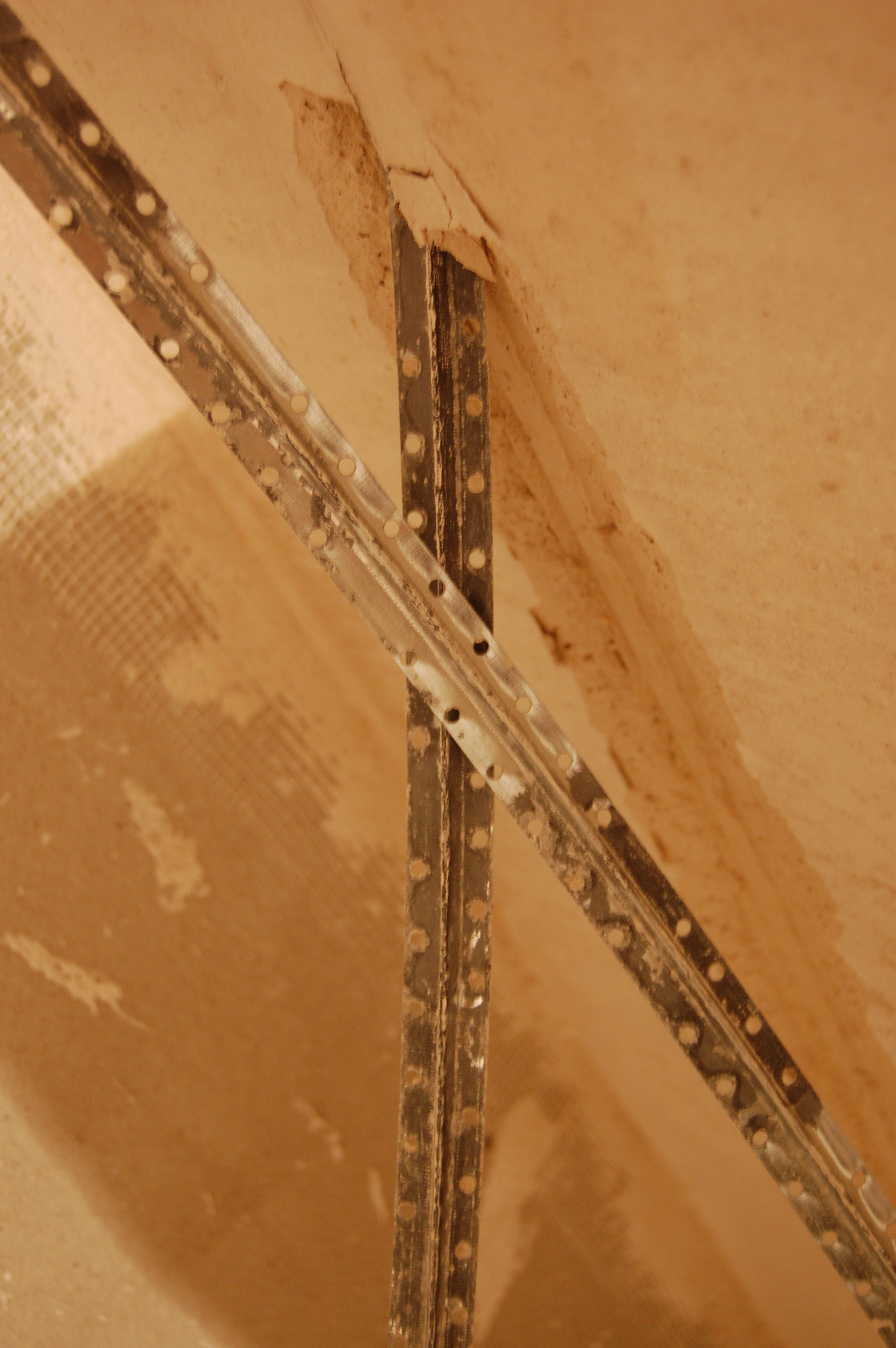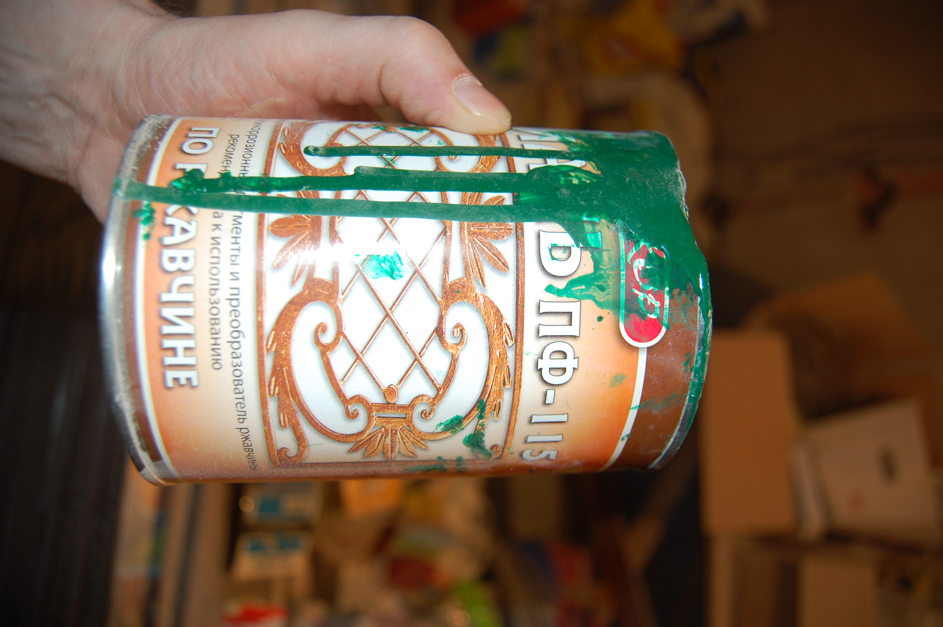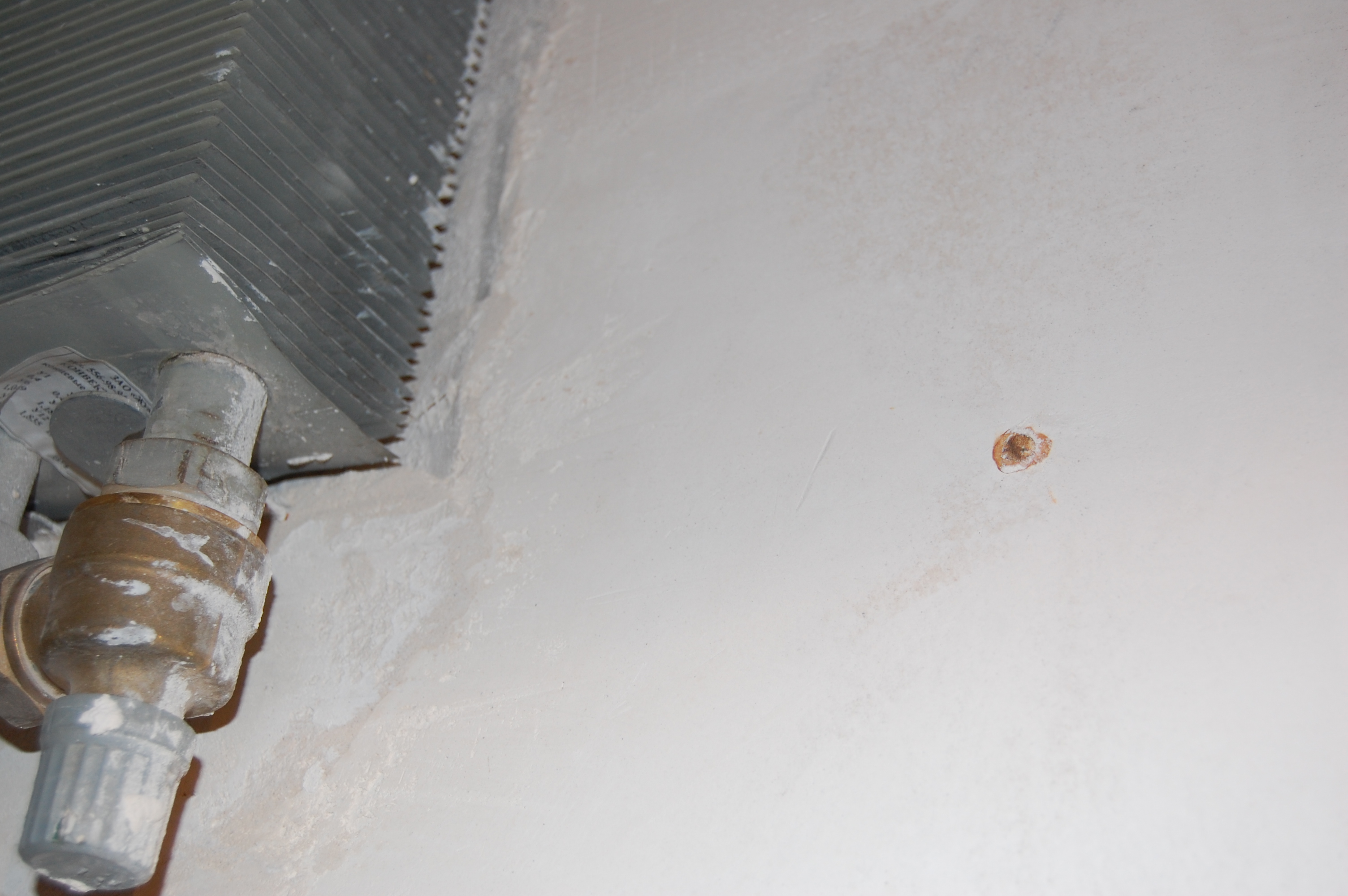 Казалось бы можно и кабель класть? - Ан нет! (IMG:style_emoticons/default/laugh.gif) По СНиПам положено обнажившуюся арматуру грунтовать. Я человек такой - раз надо, то надо. Без нытья. Хотя и люблю понимать на хрена надА?! Споров на эту тему на разных форумах предостаточно. Ответ потом пришёл: 1) Уж не знаю что там в штукатурке замешано, но вот что случилось с креплением экрана батареи отопления всего через 20 минут после его замуровывания, а ведь оно было покрашено и ни грамма не заржавело за пару-тройку лет висения на стенке. А тут бац! Проступившее ржавое пятно видите?: 2) Вот совсем из другой темы и забегая вперёд, так что может потом фотка и повторится. Это кусок оцинкованного маяка удалённого из стены. Понятно, что оцинковка некачественная. Но всё же: Часть мастеровитого народа говорит, что после пропитки штукатурки грунтовкой, вся эта картина выглядит ещё более удручающе. Так что на тот момент не зная этого, но купив заранее ( помните упоминание о грунтовке арматуры для крепления блоков ) вот такую эмаль: и вооружившись кистью полез обхаживать арматуру в штробах и гнёздах подрозетников: |