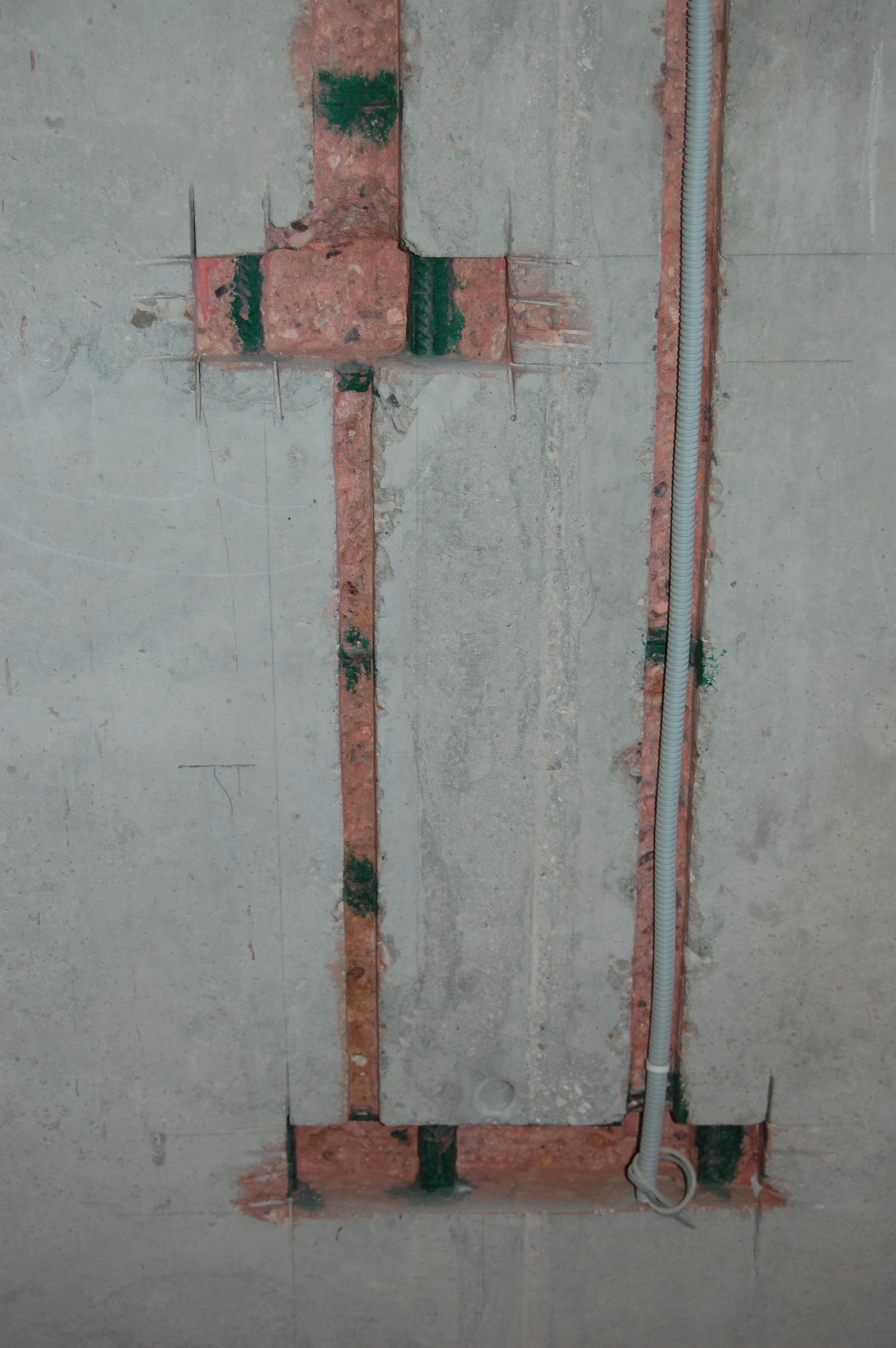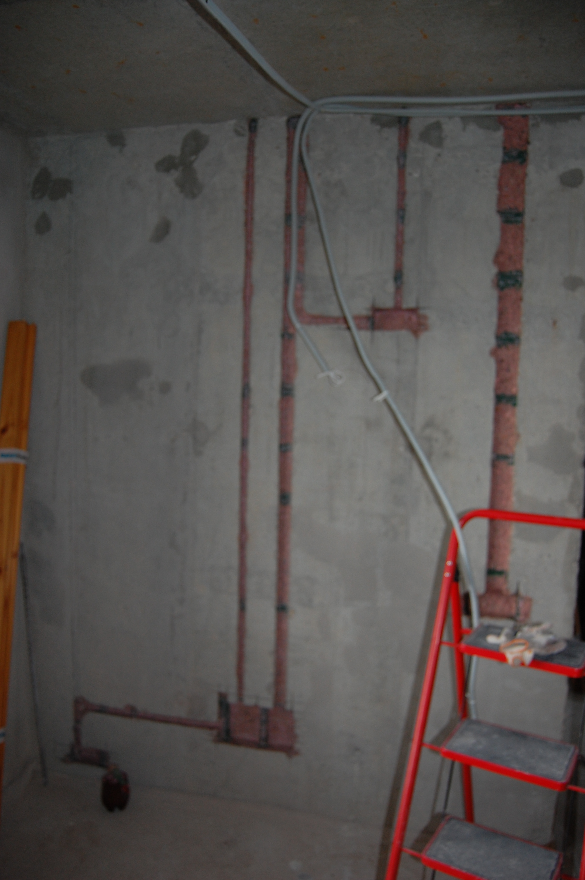 Продолжении Нарезка штроб и подрозетников - это прокраска штроб и гнездований (IMG:style_emoticons/default/biggrin.gif) грунтовками, соответствующими материалу стен: На последней фотке видно, то чего не упоминал ранее: Штроба при входе в гнездо для будущих подрозетников углубляется, чтобы иметь возможность завести провод в глубокий подрозетник через отверстия ближе к его дну. |