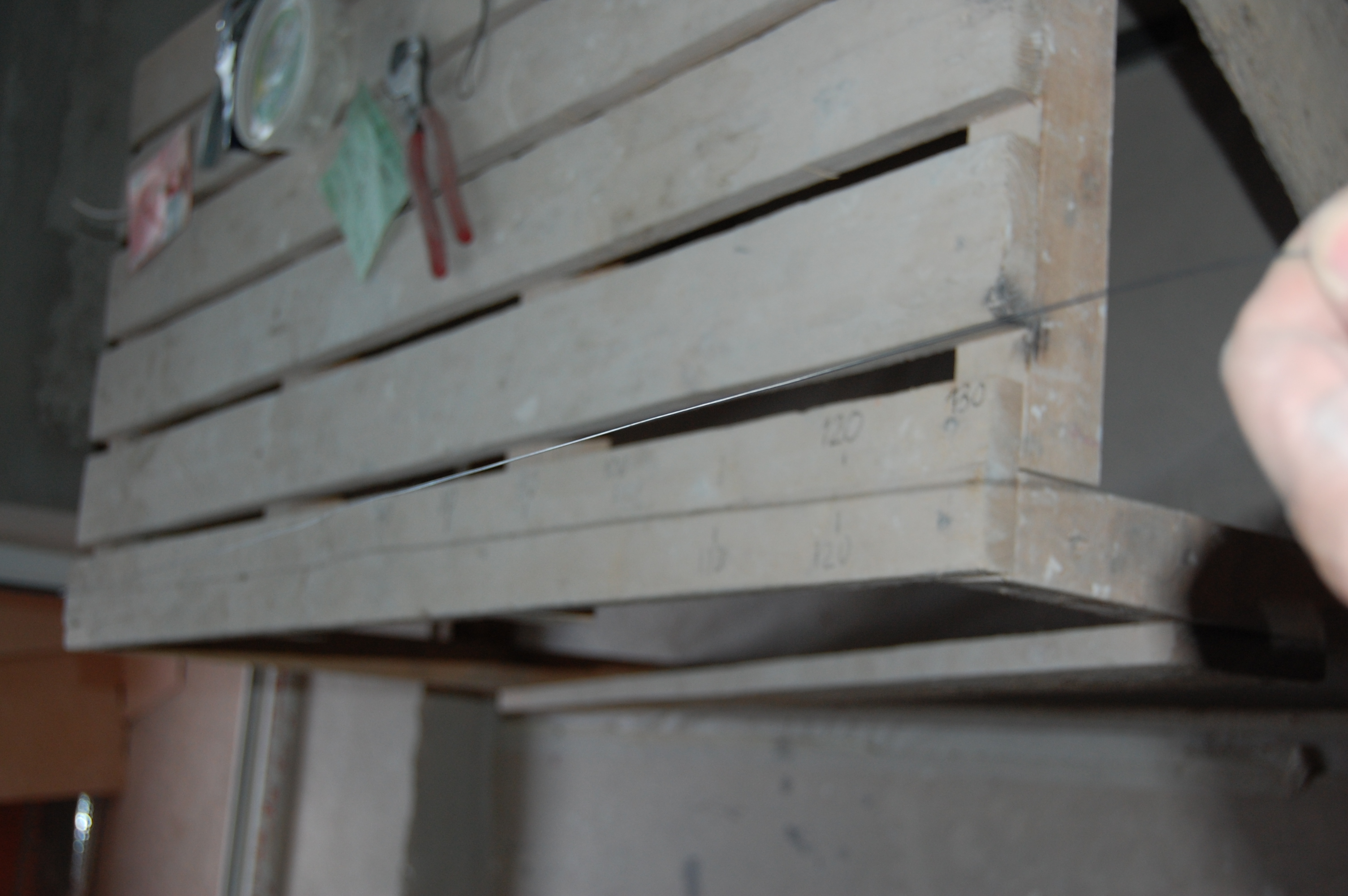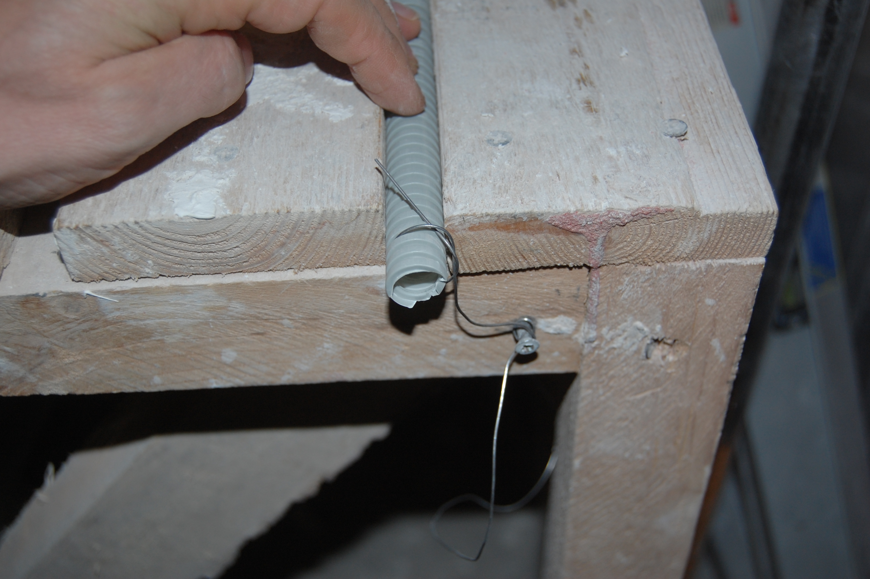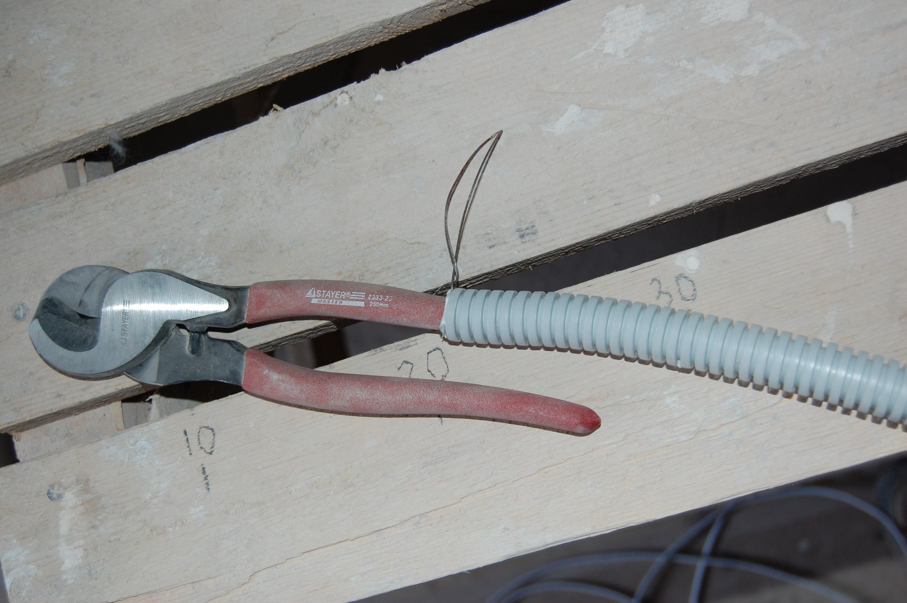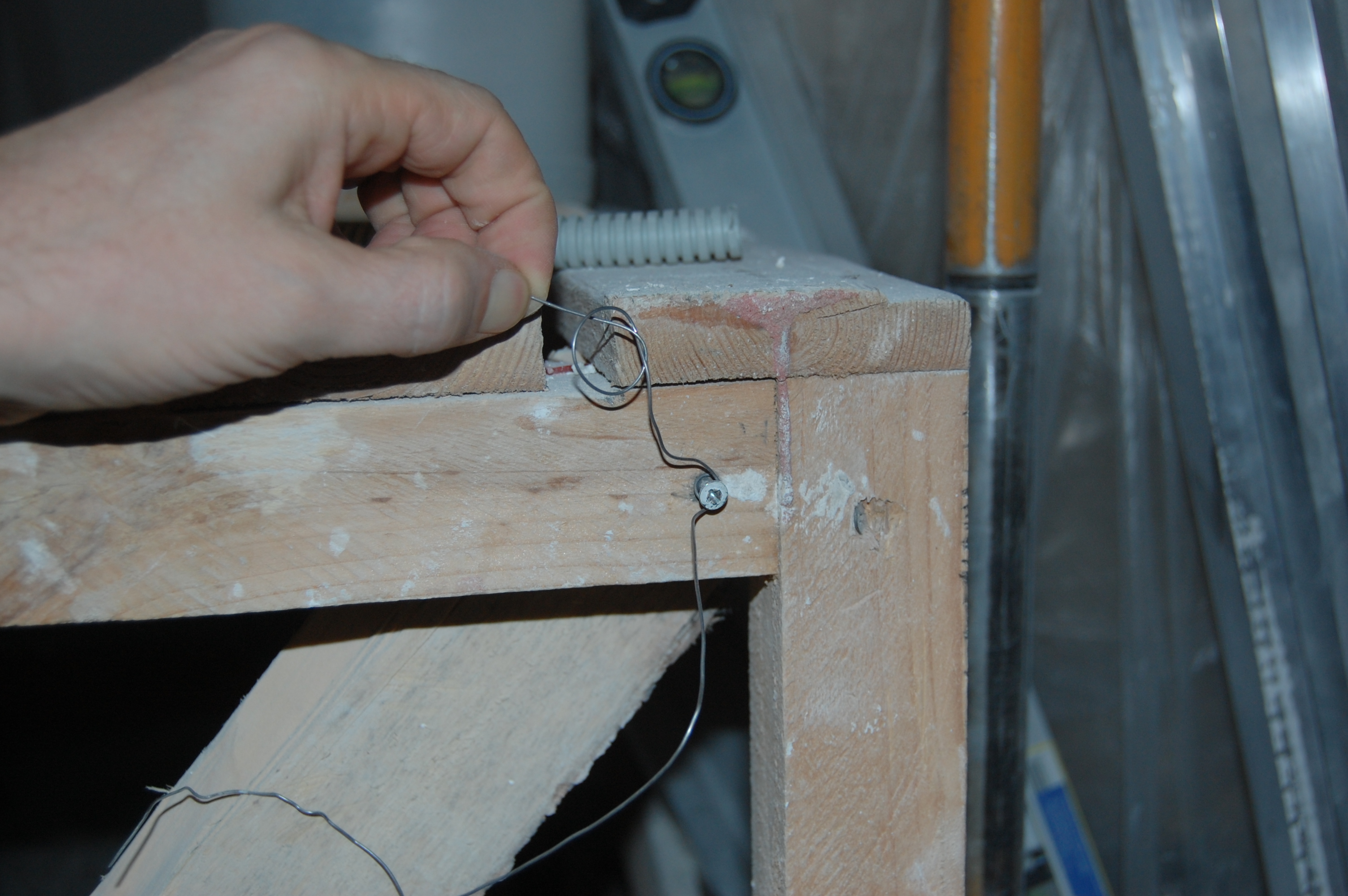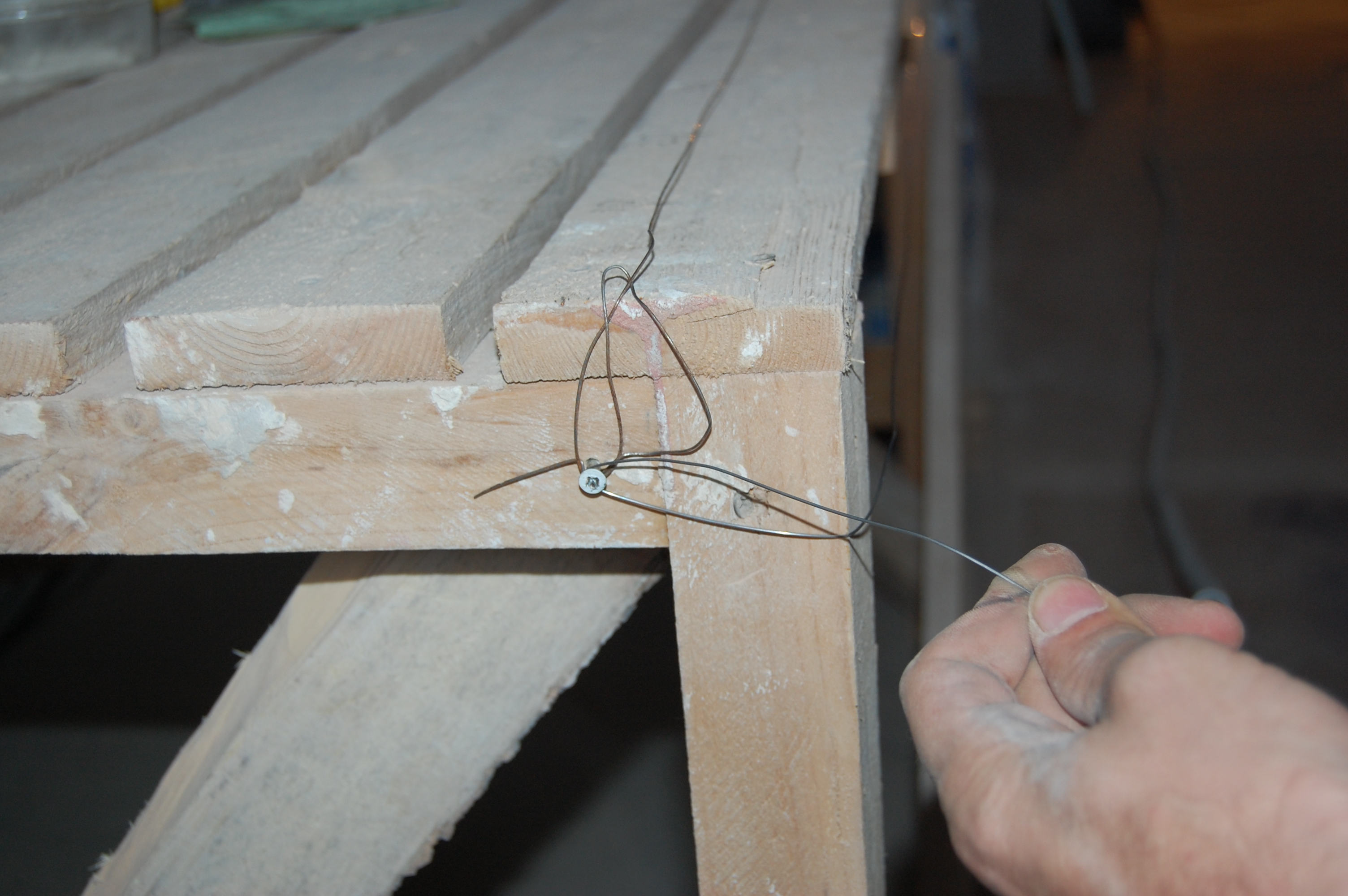 Если приходилось заталкивать кабеля длиннее, то сделал на шуруп в мерном (IMG:style_emoticons/default/biggrin.gif) козле из той же струны для протяжки колечко. Так чтобы оно приходилось прямо по пазу между досками