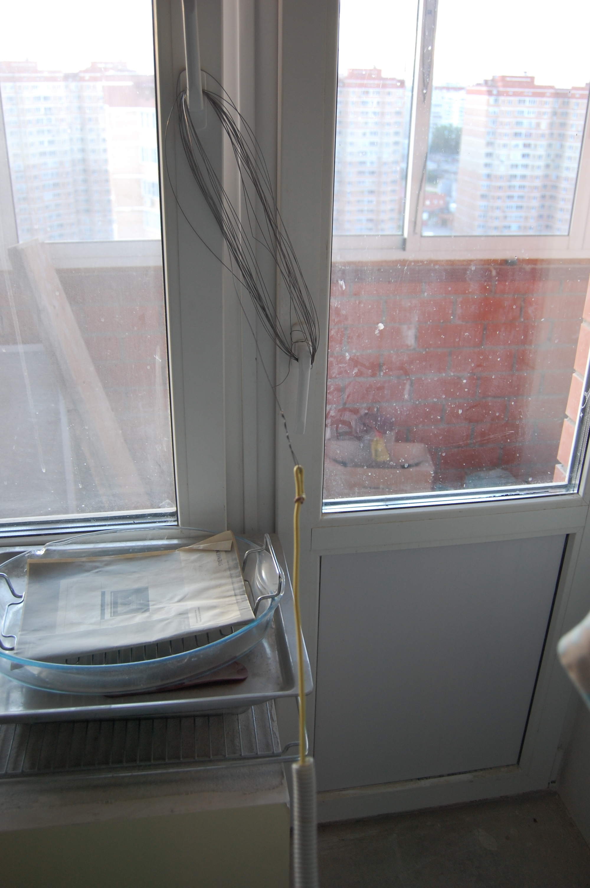 Когда длина проводов такова, что "отступать некуда", использовал балконную дверь
