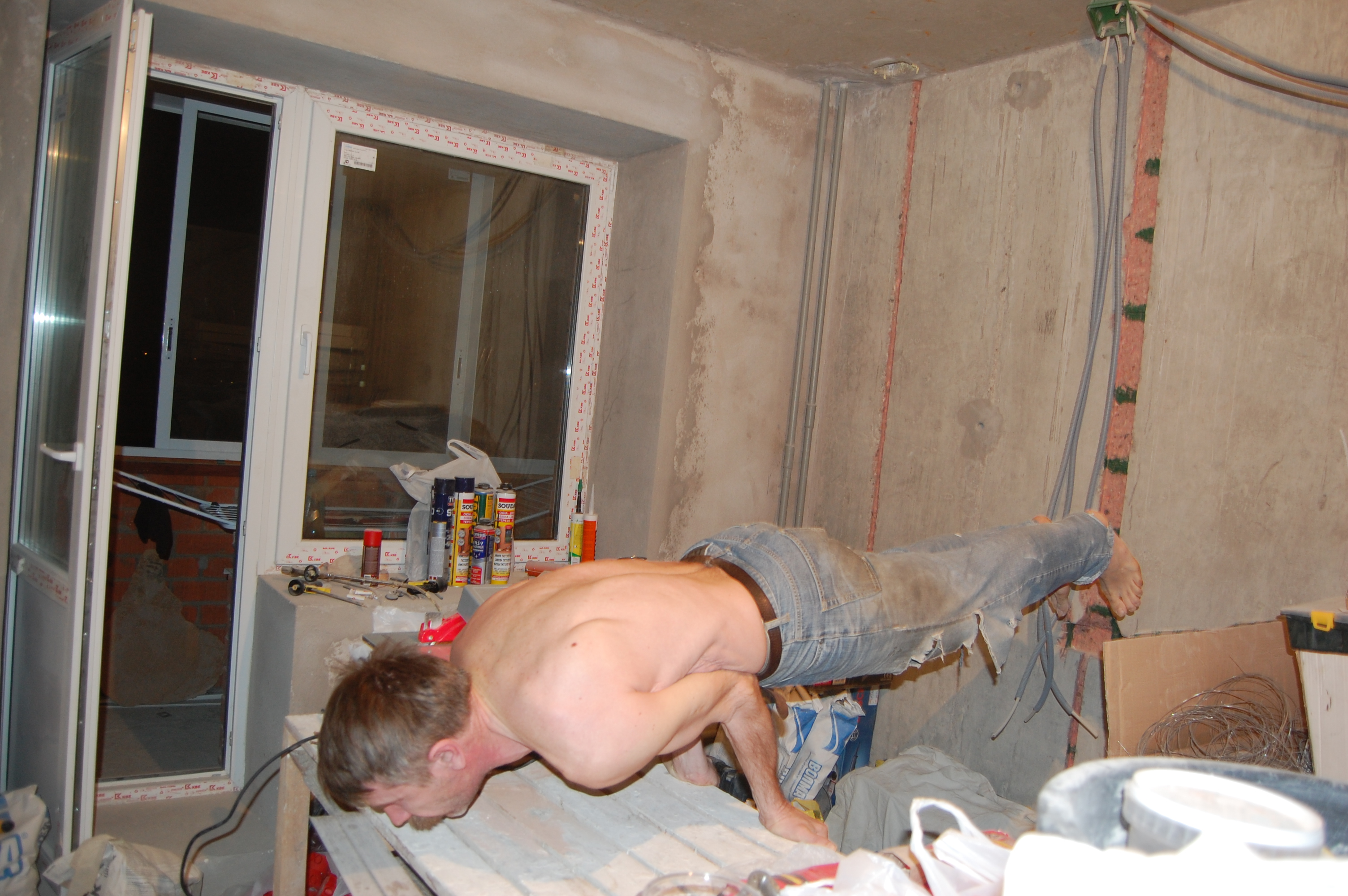 Кость, понимаешь, для того чтобы делать вот такую "раскоряку" (IMG:style_emoticons/default/laugh.gif) ( пардон не успел на автоспуске фотика ноги на 45 градусов поднять, голову повернуть, улыбнуться и носочки оттянуть (IMG:style_emoticons/default/biggrin.gif) , в общем не эстетично для девушек, а мальчиков прошу простить, что на мне как на Славке колготок нет (IMG:style_emoticons/default/tongue.gif) ) поперёк перекладины, представь что я руками не за помости, а за трубу держусь: