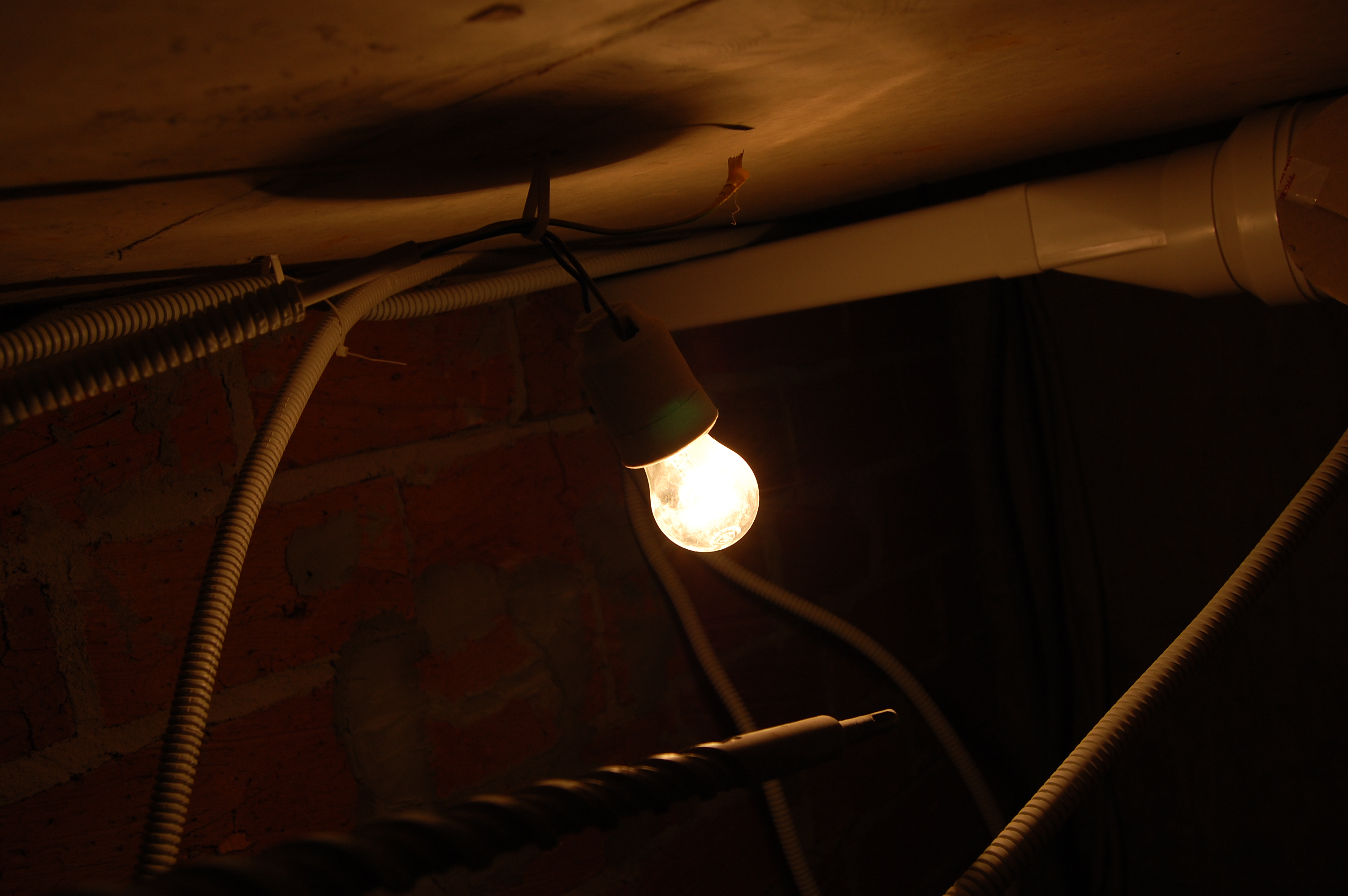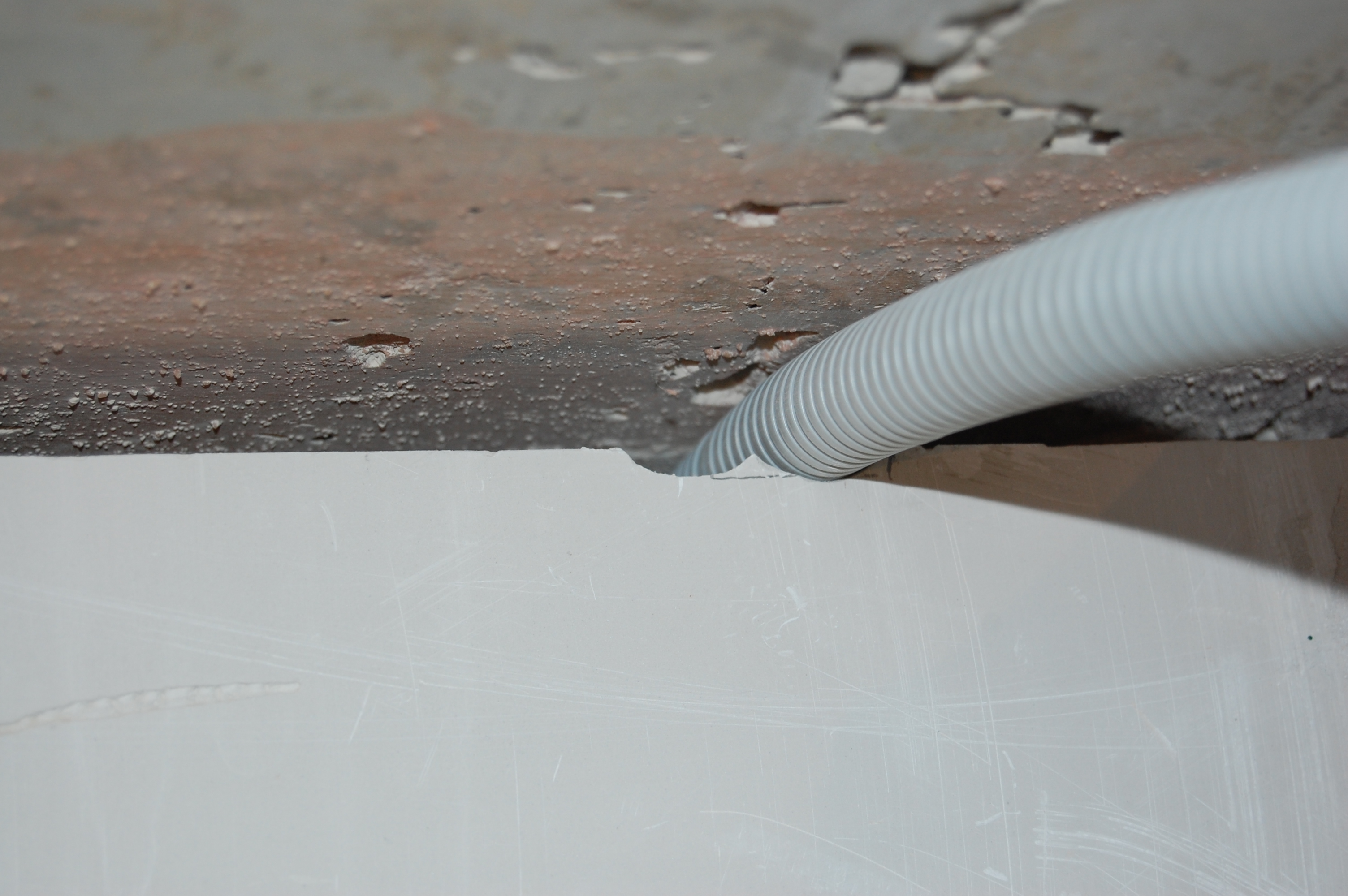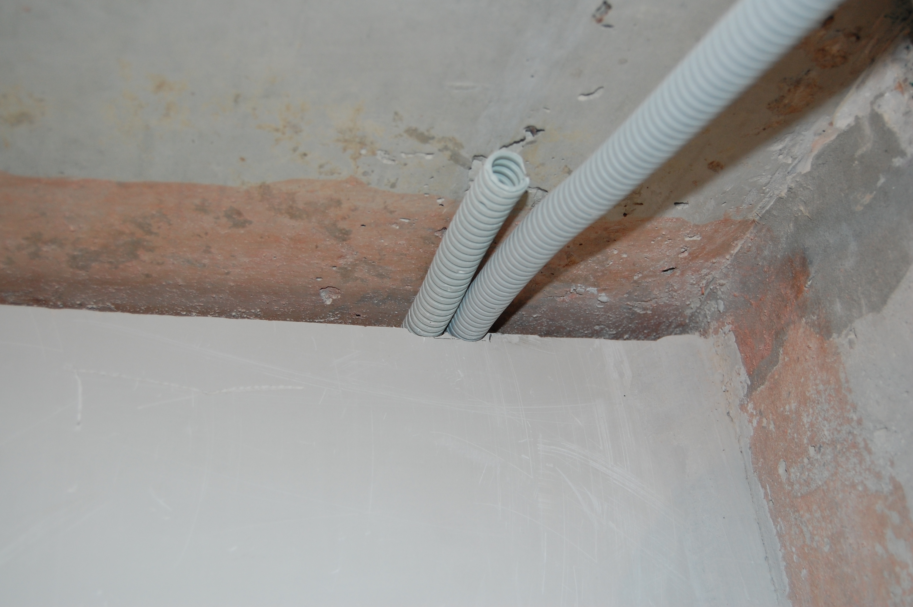 Продолжение Прокладка гофры с кабелем по потолку