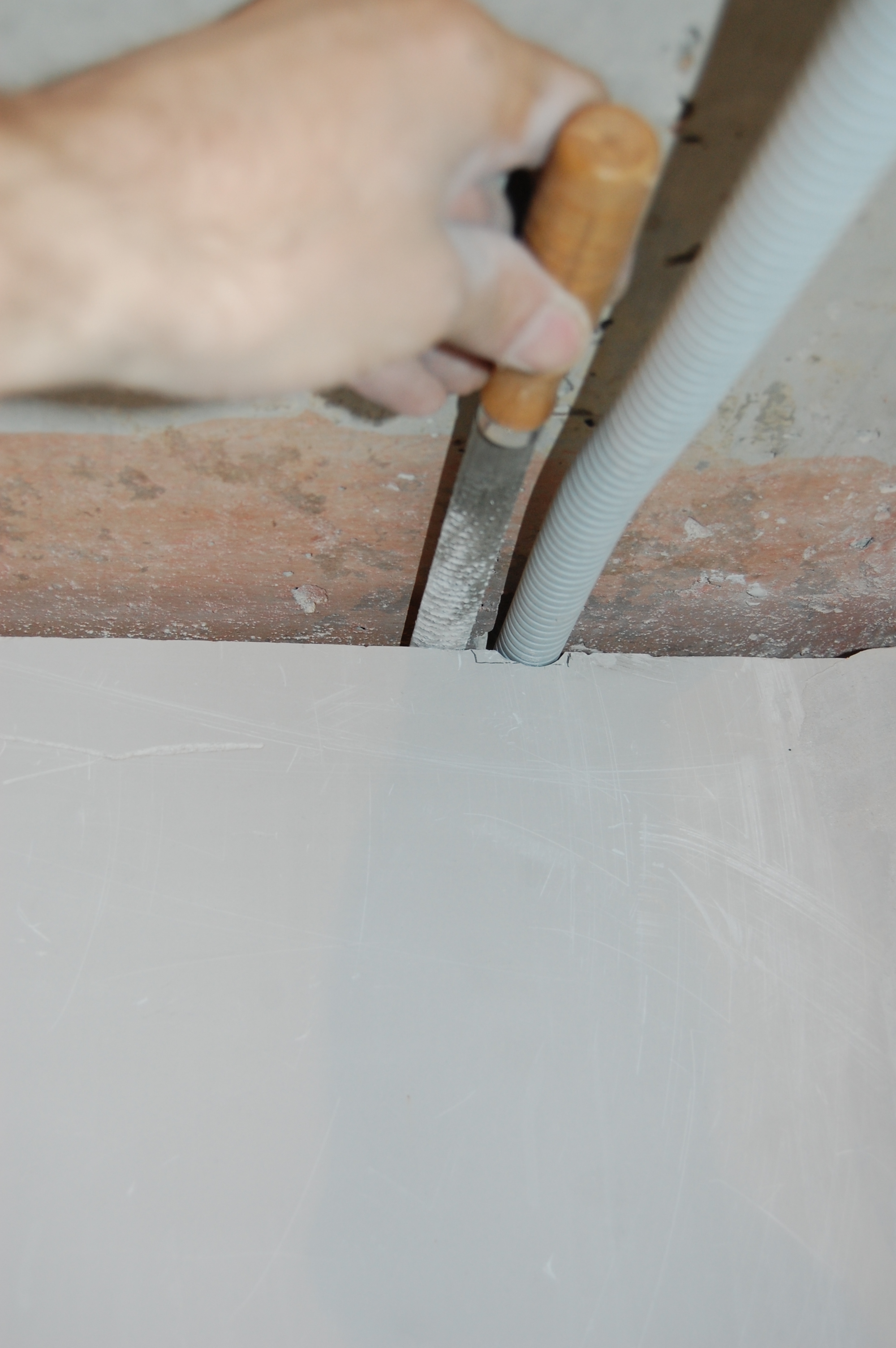 Если перегородки воздвигнуты застройщиком, то как и в случае с кирпичной кладкой, в предыдущем посте, промежуток между потолком и перегородкой будет заполнен раствором, и собственно ... перфоратор вам в руки. НО!!!!! работаем им в режиме сверления БЕЗ УДАРА. Поколете и газо/пенобетон и ГПГБ на ...й. Ну и вместо бура можно взять обычное "сверло по бетону с твердосплавной пластиной". Если же перегородки возводим сами, то зазор между перегородкой и потолком, следуя заветам великого ЛАНа (IMG:style_emoticons/default/smile.gif) закрываем как можно позднее - дом сам по себе садится, квартиры тяжелеют от отделочных материалов и мебели, вибрационные нагрузки на стены, вызванные работой ударного инструмента ... В общем плиты перекрытий прогибаются. По полу больше. По потолку меньше. Может быть и наоборот. В общем шов может вскрыться, а может перегородку поломать. Поэтому мой процесс протягивания кабеля через мной же воздвигнутые перегородки, был существенно облегчён. Прикладываю кусок гофры нужного диаметра к будущему месту прохождения провода и если гофра в щель не пролезает, очерчиваю её, вооружаюсь обычным рашпилем и ... возим его туда-сюда (IMG:style_emoticons/default/sarcastic.gif) по верху перегородки Ну и так рядышком выскабливаем столько углублений, сколько надо |