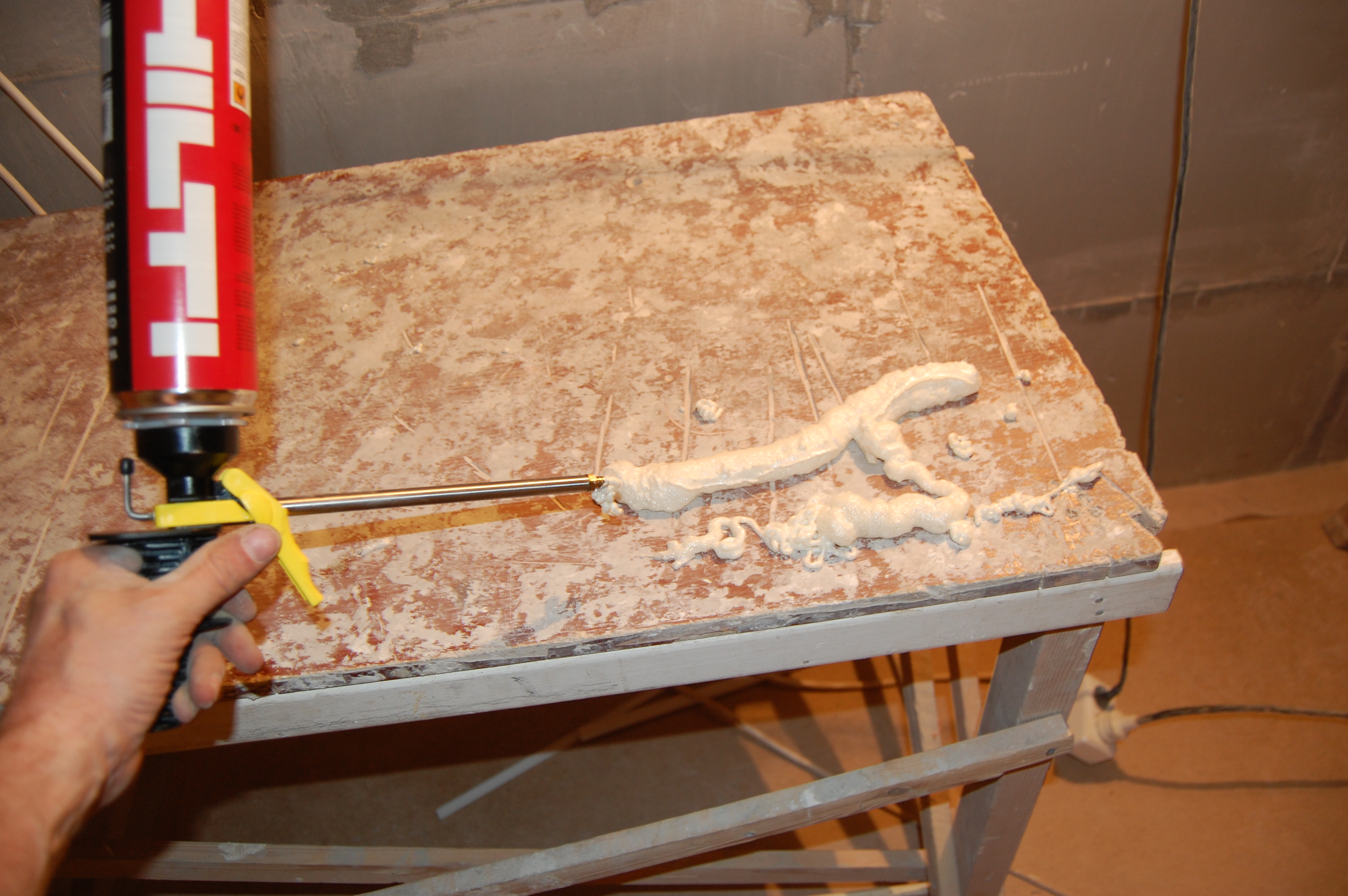 Ну а потом вперёд. Смачиваем Задуваем Ну вроде для первого раза ничего так получилось. Даже когда пена до конца расширилась и снаружи вроде как подсохла и то не особо страшно стало Ну и с умным видом вешаю пистолет как Серёга учил: вертикально и не скручивая баллон, так как на следующий день продолжить собирался Слышь, Серёг! Ты больше НИКОГДА!!! НИКОМУ!!! НЕ СОВЕТУЙ дешёвые пистолеты с накрученным баллоном оставлять - не абсолютно герметичные они и пена в них засыхает (IMG:style_emoticons/default/excl.gif) . В общем это был первый и последний рабочий день этого пистолета (IMG:style_emoticons/default/cray.gif) На следующий день, когда он дуть не захотел - его смывка не взяла, а при попытке проковырять - у него носик отвалился (IMG:style_emoticons/default/unsure.gif) (IMG:style_emoticons/default/mega_shok.gif) |