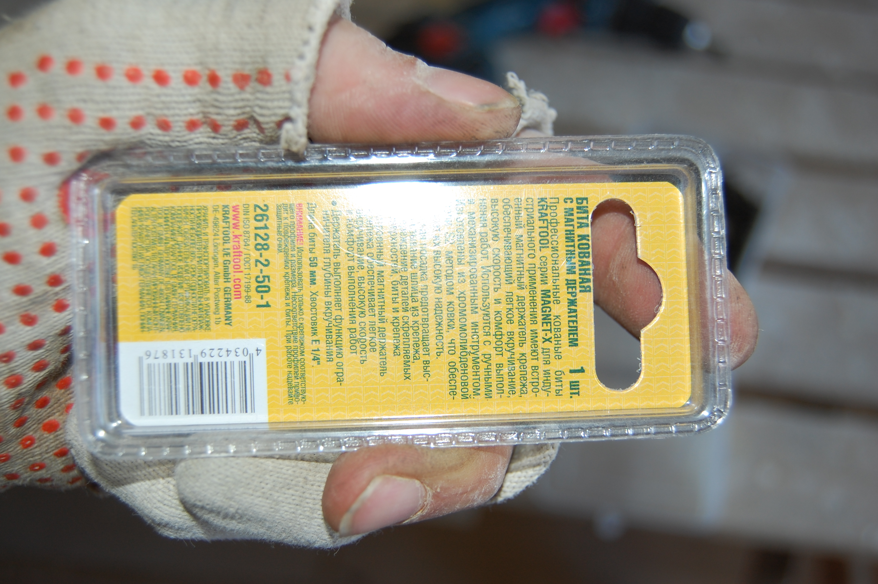 С виду совершенно обычная бита с ограничителем (IMG:style_emoticons/default/unknw.gif) Но как я и говорил, прежде чем бита "выпустит" саморез включается "трещётка". И ещё пара очень важных преимуществ перед другими битами. Саморез когда его насаживаешь на биту просто защёлкивается. И даже "танцующие" Леруашные саморезы на ней не танцуют. Очень быстро работать получается. Вот так она "строчит" |