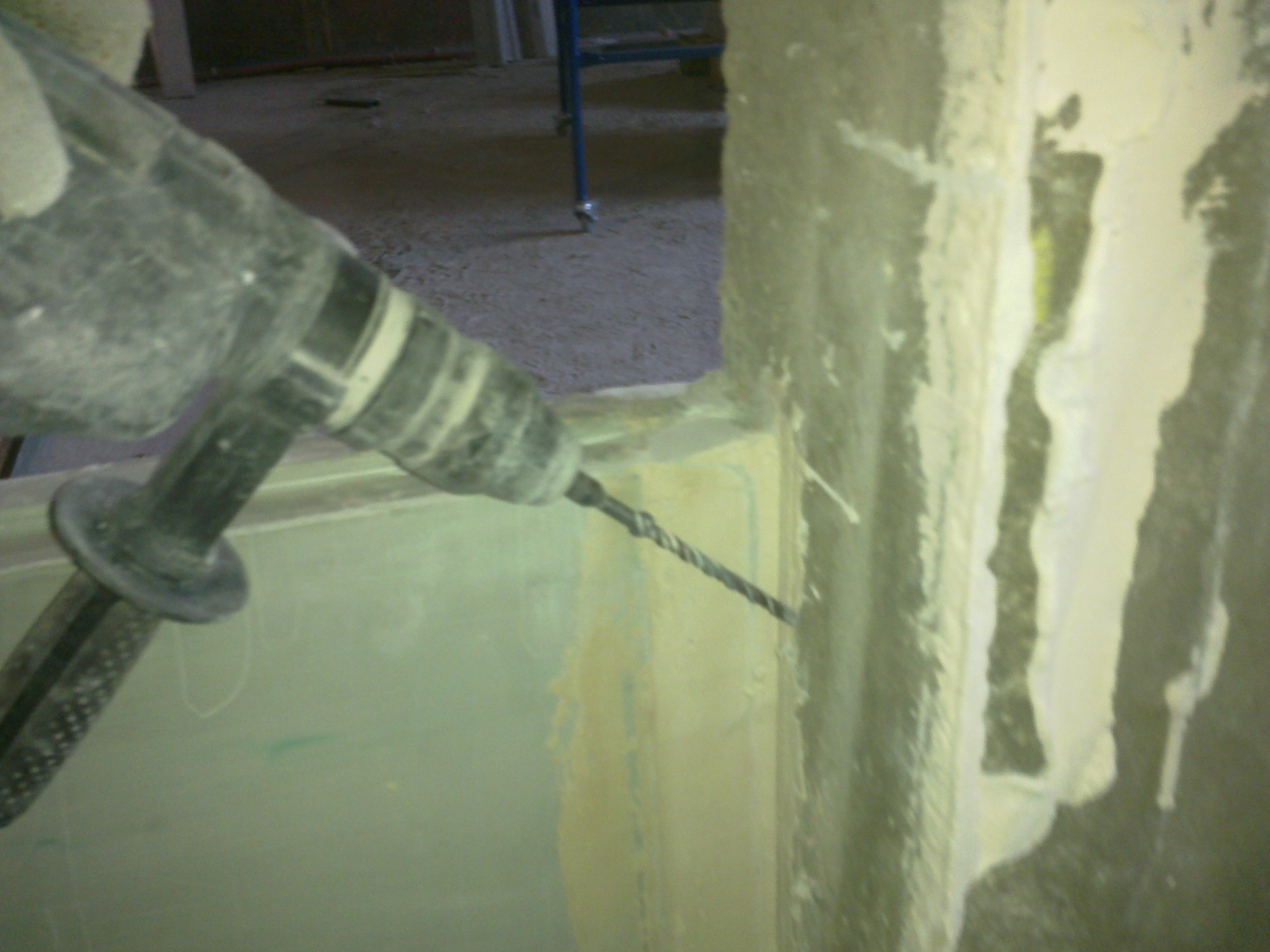 http://forum.amadeus-project.com/index.php...st&p=134047 Пришлось тут опять повозводить (IMG:style_emoticons/default/smile.gif) Но не старым дедовским способом (IMG:style_emoticons/default/laugh.gif) 1) На смену арматуре металлической пришла арматура капроновая Несомненные плюсы: - Не надо тратить время и силы на очистку от ржавчины - Не надо тратить время, силы и деньги на антикоррозийную грунтовку - Чтобы не случилось - в стене она не заржавеет - Пилится легче металла - Сама легче - Стоит дешевле - Для упущенных плюсов (IMG:style_emoticons/default/smile.gif) Недостаток обнаружен только один - нельзя согнуть под углом Т.е. невозможно "захоронить" в толще стены традиционным способом Ну и ладно! Ну и не будем тратить время на изготовление саркофага. А просто длинным-длинным буром ( не тем, что на фото ) пробиваем наискосок отверстие и в блоке и в стене Вот так ну и дальше и гнуть ничего не надо, а прямо по прямой обмазав клеем Хотя мне и не понравилось, что в этом случае арматура в любом случае проходит через полость пустотелого блока |