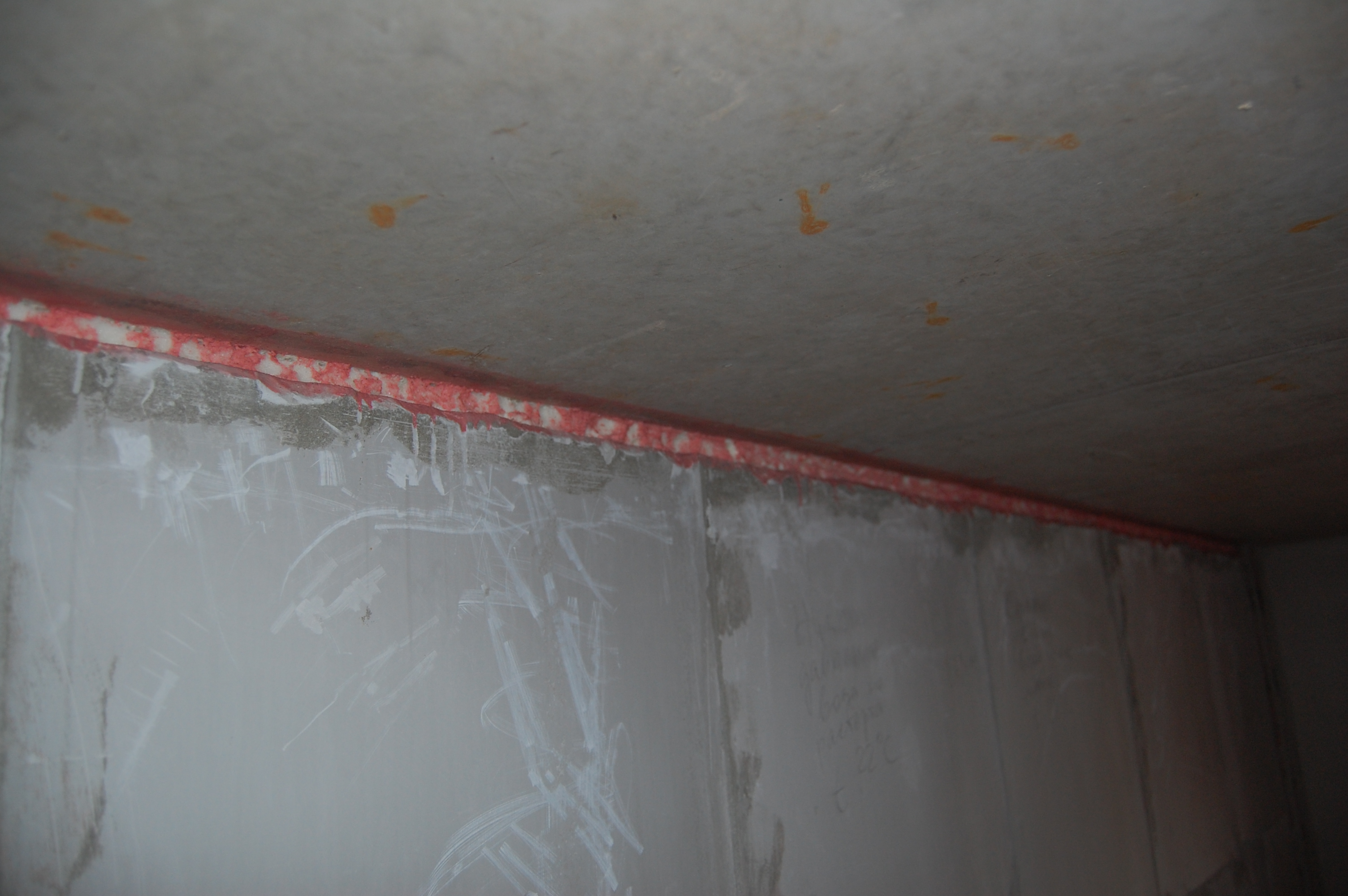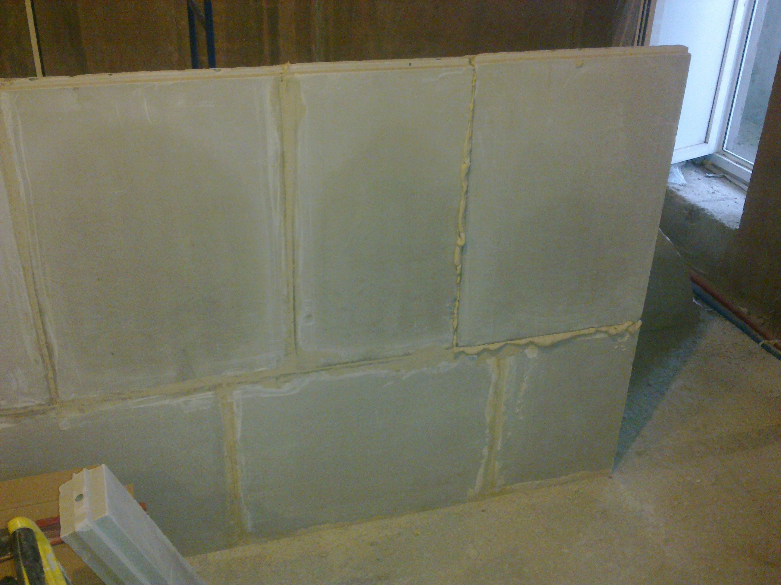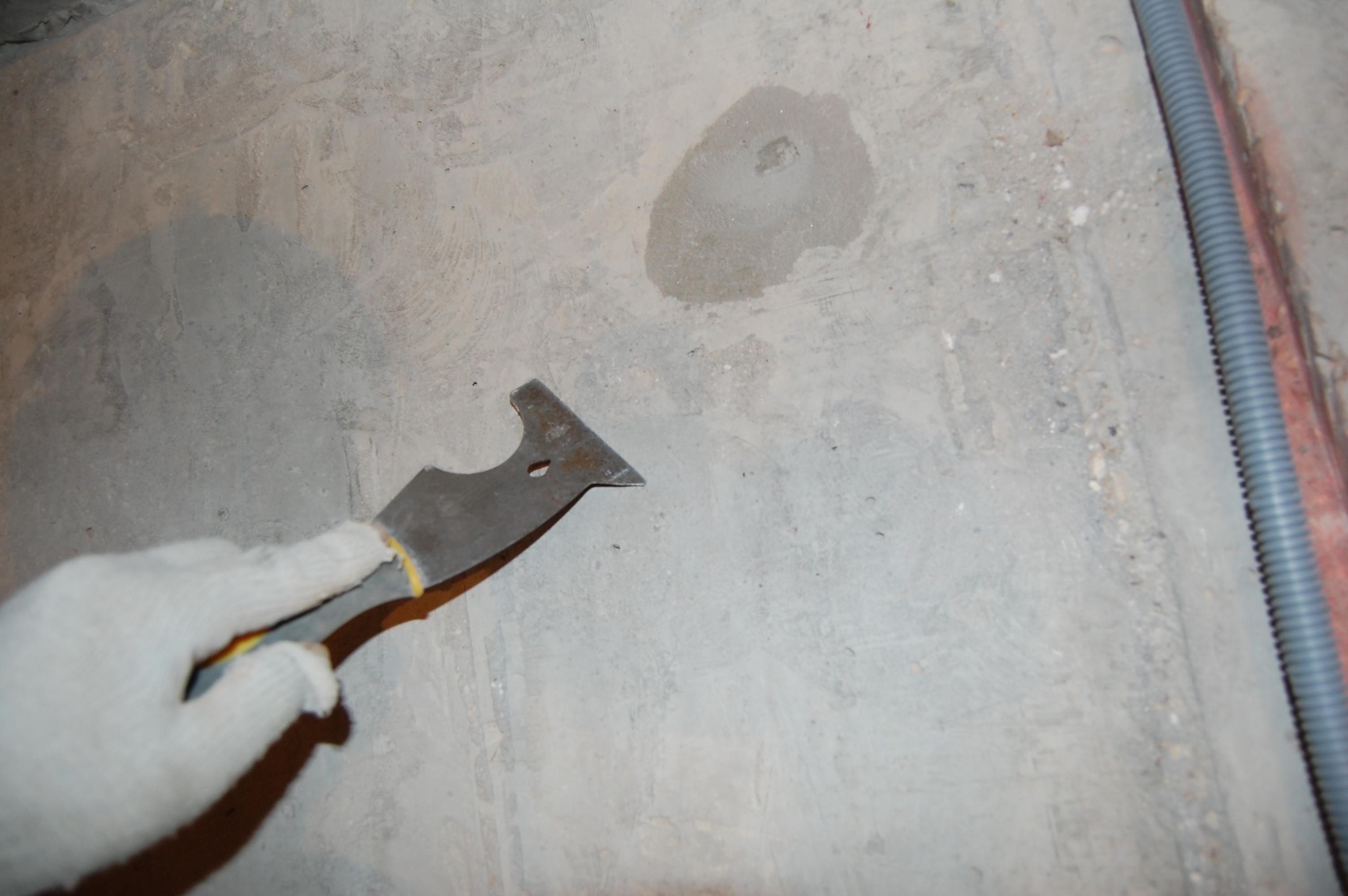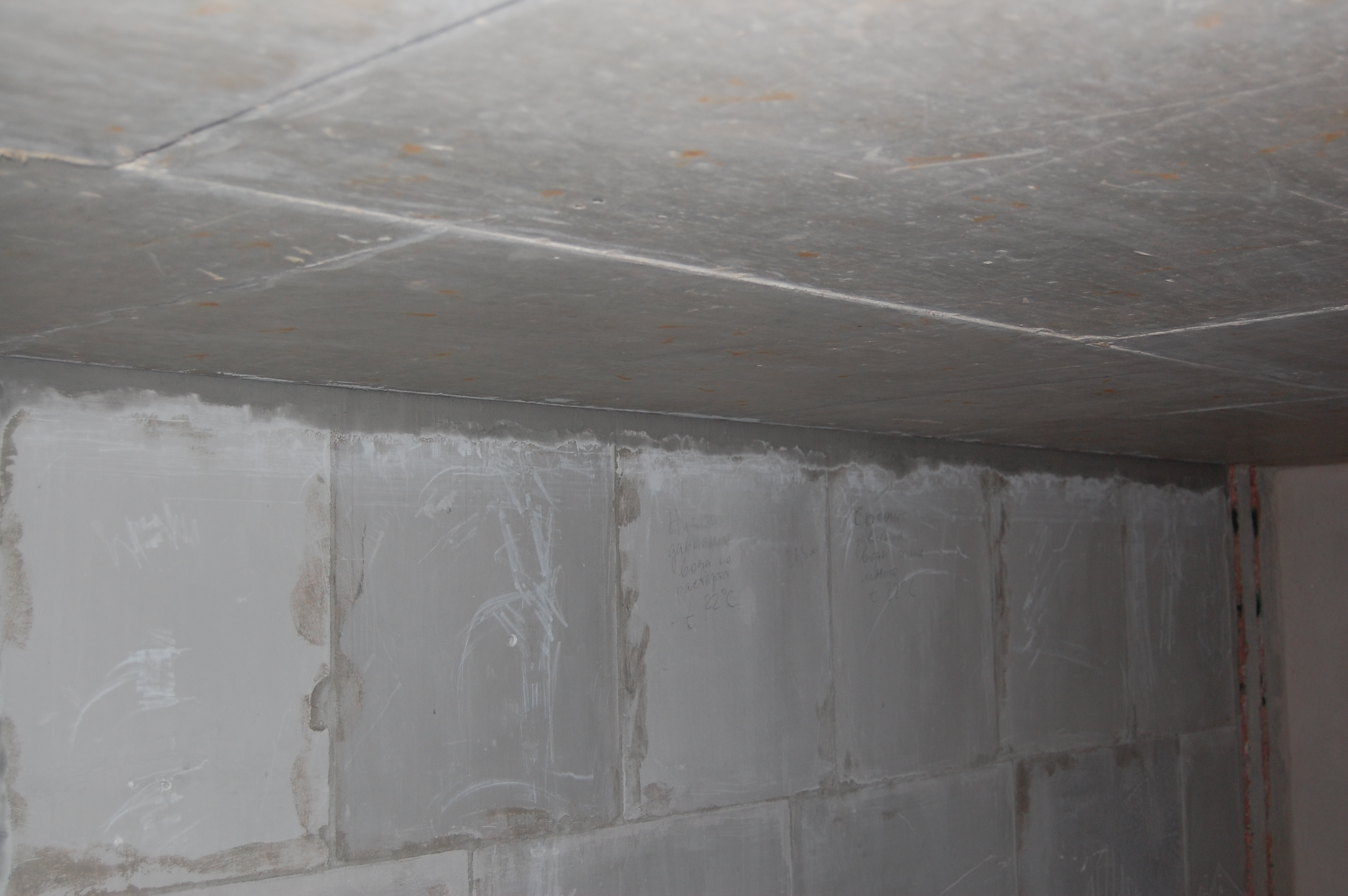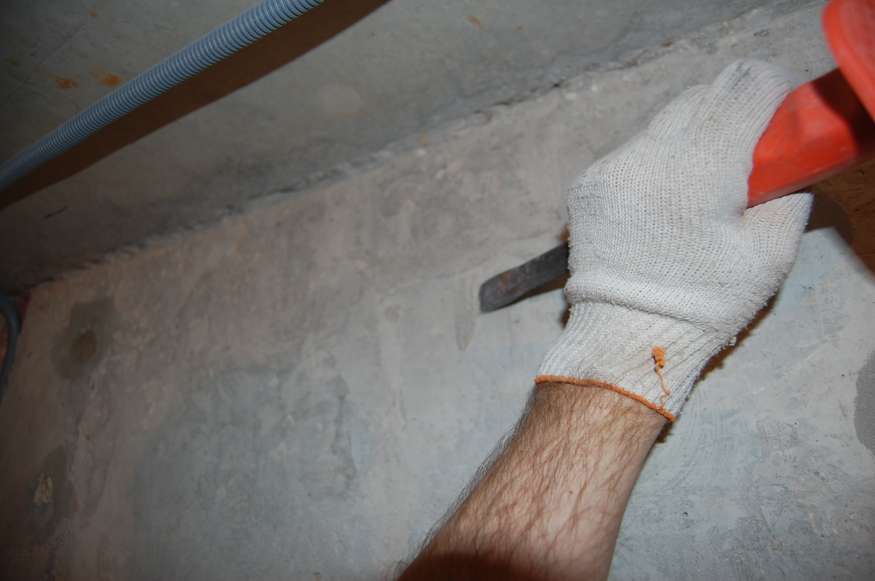 Подготовка стен для оштукатуривания Самым первым делом, чтобы не запылились, замазываю запененные стыки стен и потолка, на которых я и остановился ... давным-давно (IMG:style_emoticons/default/biggrin.gif) В принципе их достаточно просто сбрызнуть водой, чтобы обеспылить. Никаких нагрузок там нет. Да и прикрыты будут штукатуркой. У меня они промазаны бетон-контактом, т.к. очень хотелось добиться наилучшего прилипания клея к поверхностям, дабы исключить появление малейших щелей через которые может проникать звук Замазывать можно практически чем угодно и остатками клея для блоков, и штукатуркой, и плиточным клеем, и цементно-песчанной смесью... Ну весь тот же арсенал, что и для замазки штроб с теми же исключениями в виде пескобетона. Я предпочёл для себя гипсовую смесь, так как ЦПС всё-таки менее трещиностойки. В данном случае всё тот же "Пластер-блок" Зубилом, хотя в теории для этого существуют специальные скребки и топоры, которых мне так и не удалось даже увидеть, срубаю всякие наросты, которые могут "выйти" за маяк или вызывают сомнения в прочности прилипания к стене Им же, на хороший удар молотка, проверяем всякие подозрительные места на стене, чтобы потом в этом месте штукатурка не осыпалась вместе с укрытой ей поверхностью Универсальным шпателем, который всё-таки скорее более скребок и обычной металлической щёткой лучше пройтись по стенам на предмет удаления всяких "рыхлостей" Гвоздодёром выдираем куски вбитой в бетон арматуры По стенам обязательно надо "пройтись" хотя бы широким дешёвым шпателем И обязательно им же удаляем всякие выступы, которые непременно обломятся при оштукатуривании на шве между стеной и потолком И с потолка налипший около шва клей Хорошо прилипший можно не отскабливать. Вдоль низа стены я тоже прохожу скребком, так как там непременно будут "шлёпки" от упавших растворов от склеивания блоков и заделки штроб. При оштукатуривании правило тянется вверх от самого пола и при его прикладывании зацепит за нарост на полу. Правило зацепившись за нарост либо "скакнёт", либо "загуляет". А низ стены, прямизна которого будет подчёркнута идеально прямым плинтусом полового покрытия, даже важнее того, что будет находится на уровне глаз. Провода подворачиваем и прячем в будущие подрозетники |