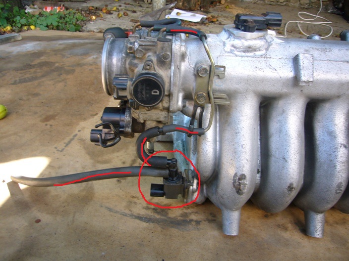 Клапан адсорбера, цвет клапана чёрный. обозначен красными линиями. Соеденён с соском на дросселе ближе к датчику положения заслонки. Его перенос на новый коллектор необходим. Всё верно?