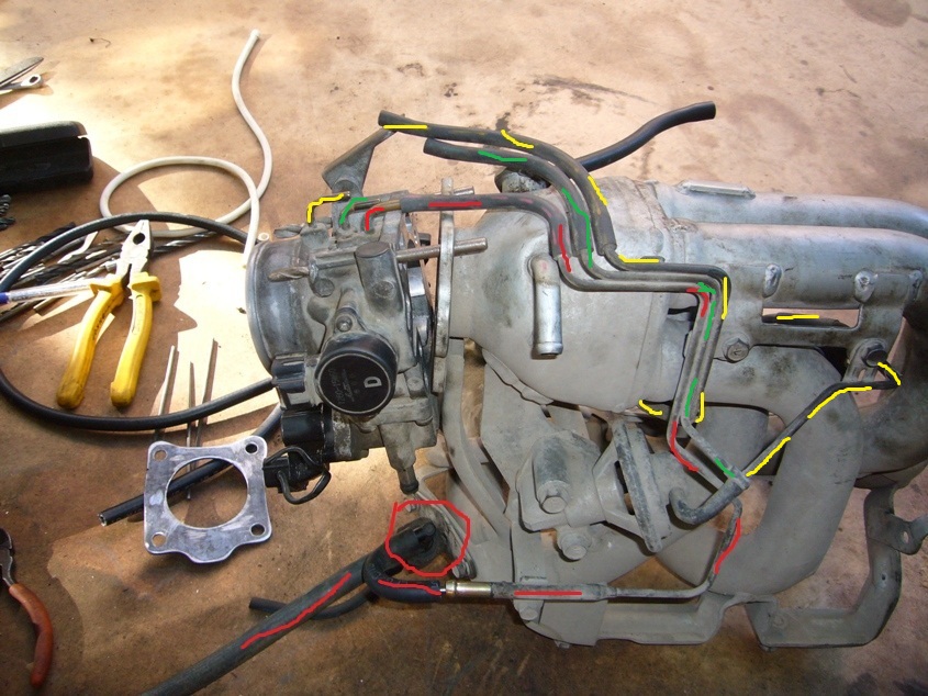 ЕГР на 93-й коллектор я ставить не стал. место под него есть и заглушено с завода. Каналы ЕГР с 18 дросселя соединил трубкой , отмечено зелёным. Всё верно?