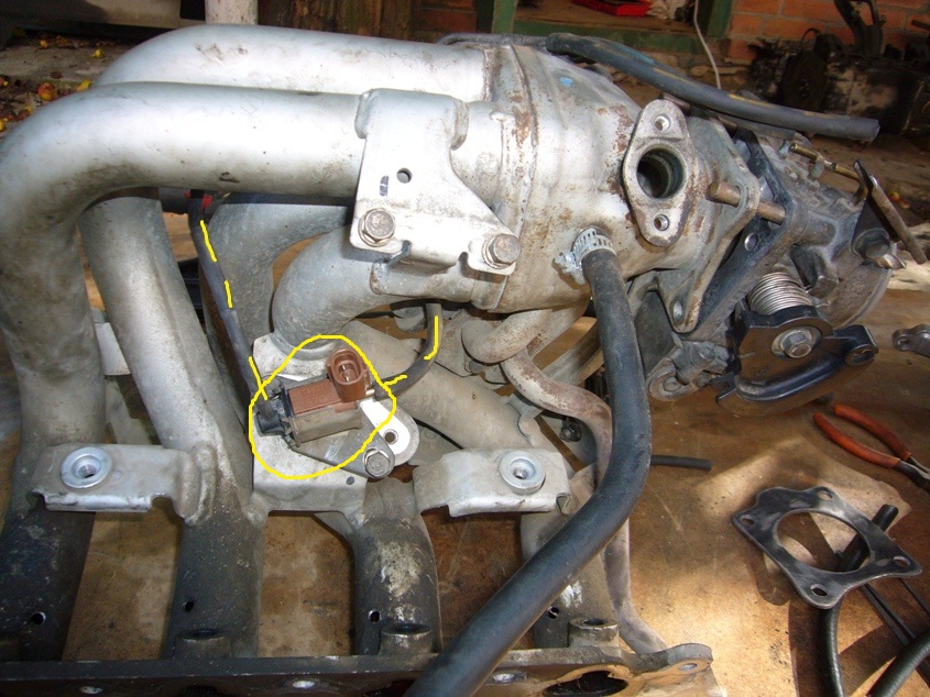 На коллекторе 18-го мотора в цепях ЕГР стоит ещё какой то клапан. я его установил, трубки не подключал, отмечено жёлтым. Нужно ли его подключать к проводке и к трубкам? |