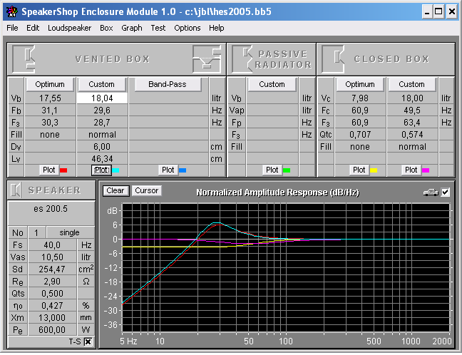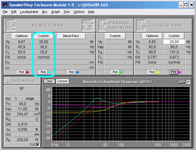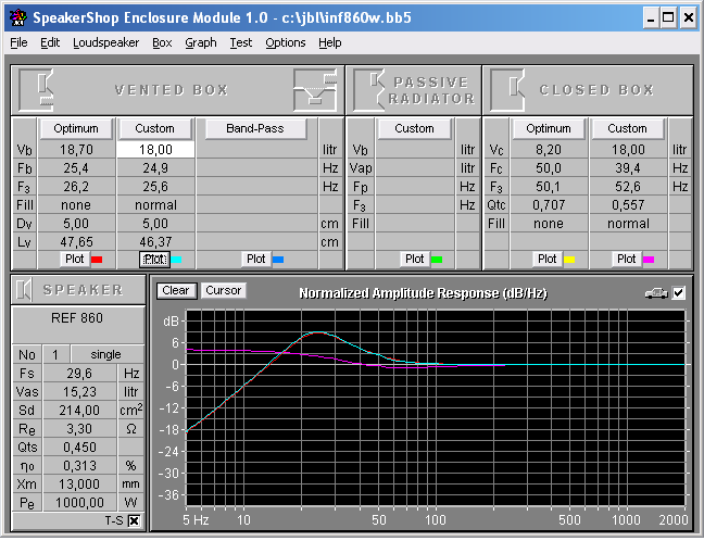 Да, бывают такие ситуации. Но если я правильно всю тему понимаю, то при наличии процессора задержек такой необходимости не возникает. Для себя на будущее вообще решил так, что если буду делать ещё одну машину или кто-то попросит, то посоветую сразу ставить Audison Bit Ten (или что-то подобное + усилок на 5 каналов (или 1 усилок на 4 канала + 1 моноблок) и делать поканалку на фронт. Я у себя вообще досчтался, что мне с моим объёмом с 10" на 8" всё-таки в итоге надо уходить и ФИ делать, ибо JBL SS показывает вот такую картинку для например Hertz ES 200.5: Не совсем правильной была идея оставлять в 20 литрах Kicker CompVR 102, в лансере она катила, ибо там объём был существенно больше. Infinity 860W: |