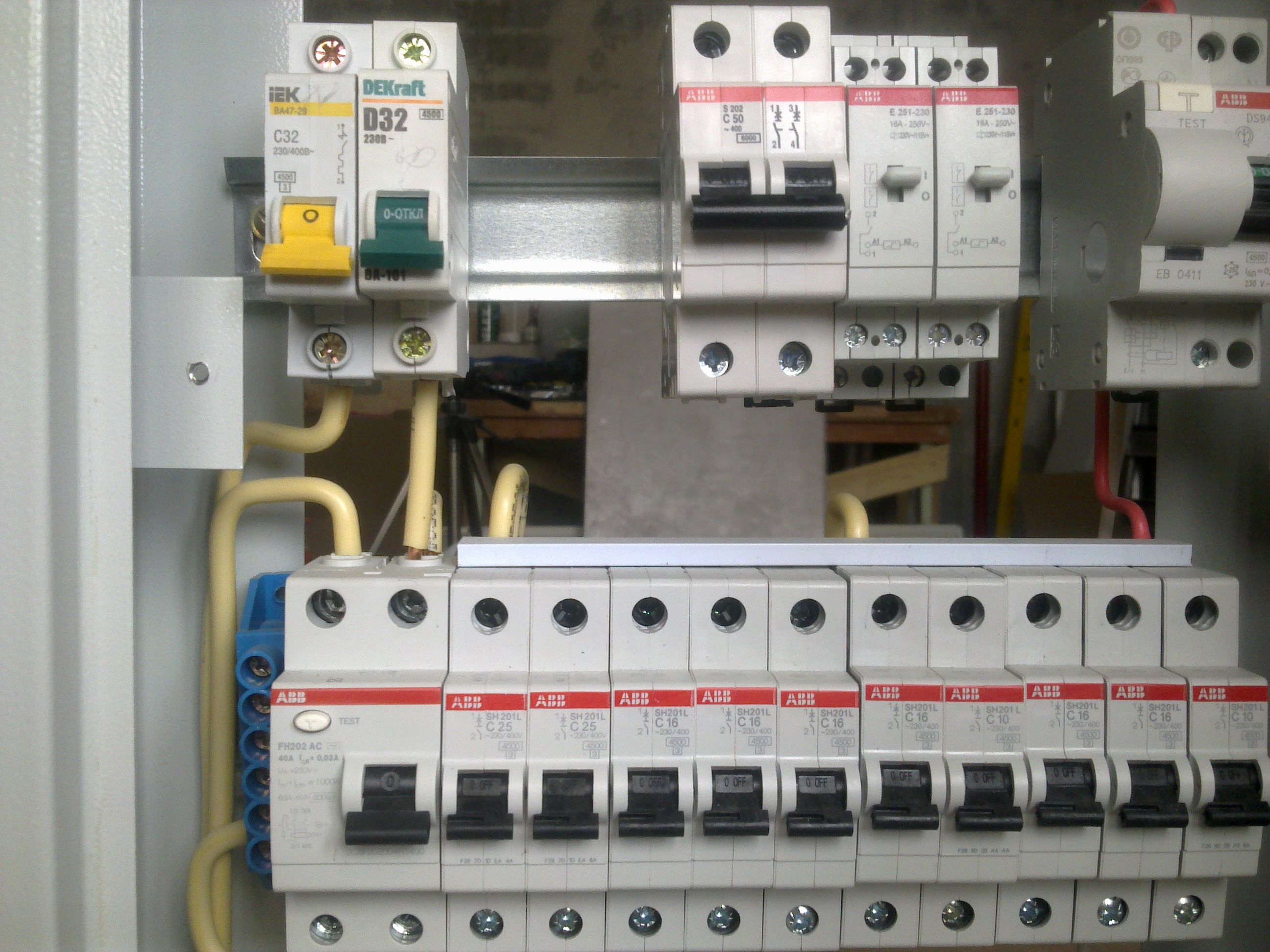 Еще нужно быть готовым к тому, что 941-й дифф в скором времени придется заменить на новый - это была кране ненадежная модель и АББ сам ее поскорее убрал из продажи и своих каталогов. Можно напомнить назначение и номиналы автоматов на рейках? Там есть два автомата на 25 - для чего? |