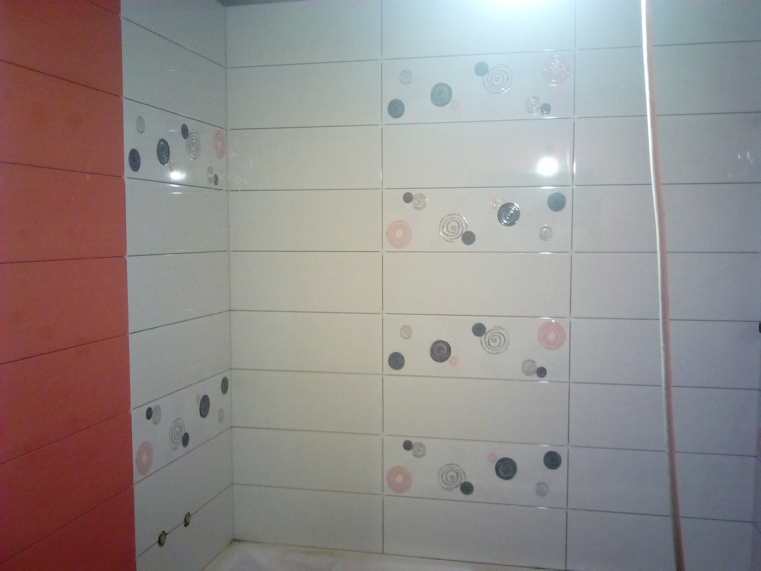 Последний (верхний) край ряд плитки получился в 5 см от самой выступающей части потолка, а именно венткороба. Вот так: Имеет ли смысл класть эти 5 см? Или быть может направляющий профиль будущего потолка лучше будет прикрутить прям над верхней кромкой плитки на стену? Какой точно будет потолок пока не знаю. Либо натяжной, либо кассетный, либо реечный. Пока из этих выбираю. Очень надеюсь на советы! Плиточнику надо дать ответ уже завтра. Ну а в целом выходит как-то так... |