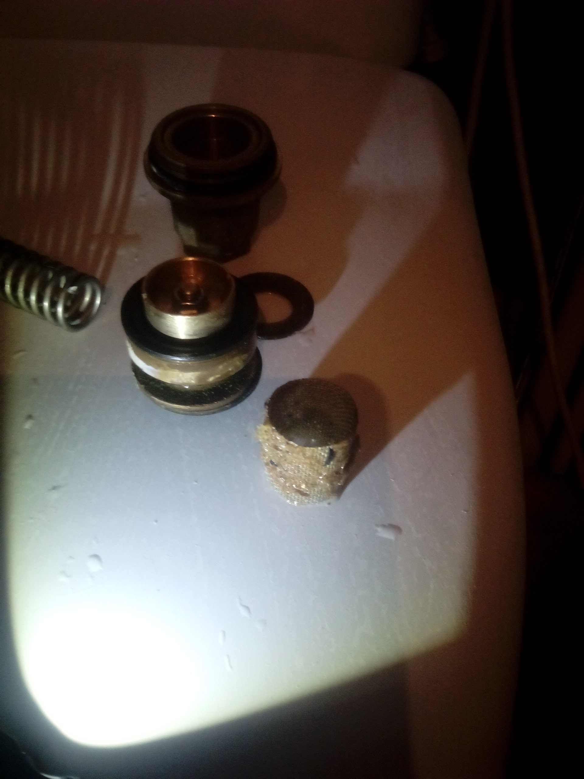 Вчера поздно вечером получилось так, что одной рукой я держал гаечный ключ, а второй ноутбук, отписываясь тут... Начал, как видно, со своего фильтра. И уже почти опустив руки, поскольку вскрыть колбу без ключа не смог, вдруг возникла в целом логичная мысль почистить банальный грязевик, который стоит перед фильтром. Как я подбирался к этому грязевику - отдельная история, все наверно помнят, через какое место у меня сделана разводка... И вот я откручиваю его для прочистки и чуть не в глаз вылетает мне пружина! (IMG:style_emoticons/default/vava.gif) Что-то там еще повылетало, какие то муфты, прокладка... Не ожидал я подобного от грязевика... Вот оно целилась в глаз: Вот то, что осталось: Разобрал дальше, нашел забитую вусмерть сеточку (самая нижняя): Естественно все почистил, но собрал без всех внутренностей... А параллельно думаю, что нафига пружина то? Она в редукторах обычно ставится. Подумал, что это какой-то редуктор с грязевиком от застройщика стоит, хотя регулятора давления на корпусе нет. И тут меня просвятил наш Дима (Дмитрий ВС), сказав, что "это ограничитель расхода". Ну и как уже стало понятно, без внутренностей этой фигни у меня все стало работать замечательно! Давление не пропадает, скачков нет, все супер. Проблема только в том, что я смог добраться, хоть и с трудом, до холодного ограничителя, а вот до этой шняги на горячей воде фиг доберешься, надо весь техшкаф разбирать, внутренности доставать... Ну и для позитиву мой кис: |