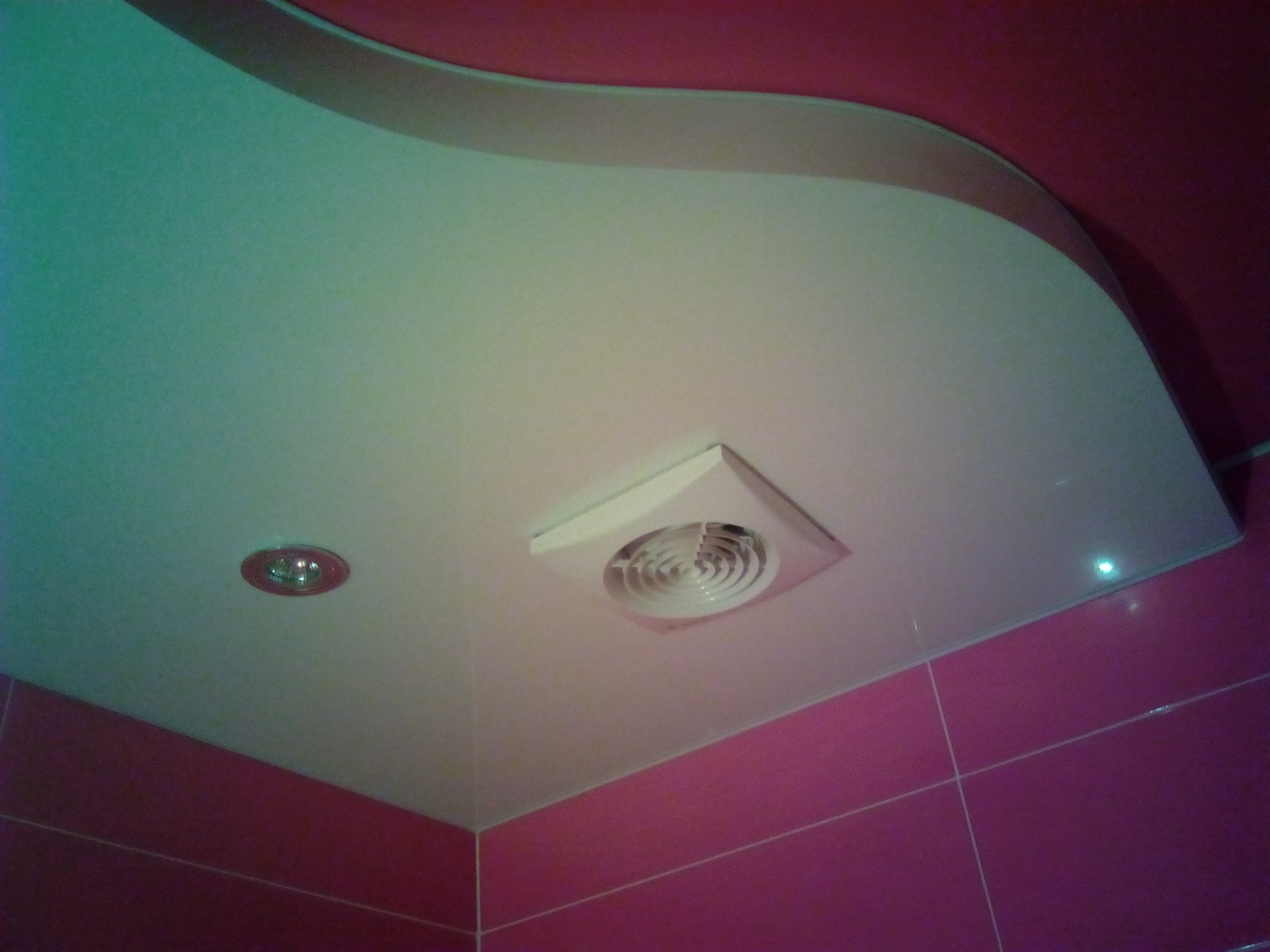 С потолком в ванной решил извратиться... Вентилятор у меня там получился в потолке, но опускать весь потолок на толщину венткороба + размер вентилятора как-то не хотелось (там 14 см выходит), поэтому решил тянуть потолок в два уровня. Но на этом изврат не закончен. Напомню, что основные цвета в ванной - белый и красный. Ну и потолок пусть продолжает тенденцию, причем нижний уровень белый, верхний красный, как раз над белой плиткой красный потолок, а над красной - белый. Ну и раз нижний уровень белый, а не красный, то не давит... Еще и глянец все ))) Короче, много пишу, лучше фото покажу (IMG:style_emoticons/default/smile.gif) Сразу скажу, качество фото - отвратное, цвет плитки и потолка красный, а не кирпично-розовый. Плитка еще с небольшим переливом. Как обзаведусь нормальным фотиком, еще раз сделаю кадры, выложу. Вообще, дико боялся что получится от таких экспериментов, что будет давить красный потолок, что будет неуютно... Но мне понравился результат, даже очень понравился. Потолок на кухне сделал уже классическим белым матовым одноуровневым. Как видно на фото - поклеил обои. За кухней обои клеить не стал, фиг с ними, пусть будут там крашеные стены. Плитку на фартук буду класть после установки столешницы, столешницу буду обкладывать. Потолок то мне натянули хорошо, но в процессе у них постоянно все падало и разбили мне плитку в ванной на полу и скол на меллеровском подоконнике на кухне... Плитку укрывал линолеумом - не помогло, удар походу был очень сильный. Плитка, благо, по центру, уже ее достал, правда затирку по периметру еще не отфигачил, она просто как камень... Делал затирку с пластификатором, видимо за счет этого... Еще затирка на стене в одном месте вывалилась ))) ХЗ затирка плохая попалась или косяк плиточника... ХЗ. Но это ерунда, исправлю. На стене и на полу затирка одинаковая Лугато, правда на стене без пластификатора. Проштробил под плиткой в ванной место для закладной порога, закладную сегодня вклею, сил уже не было. Купил ламинат и подложку под него 5 мм, чтоб ровный с плиткой пол получился. Расстелил пленку для пароизоляции на стяжку, саму подложку и ламинат еще не укладывал, сегодня вечером планирую начать. Пока что пленку просто придавил: Для позитива (под хвостом тот самый скол виднеется): |