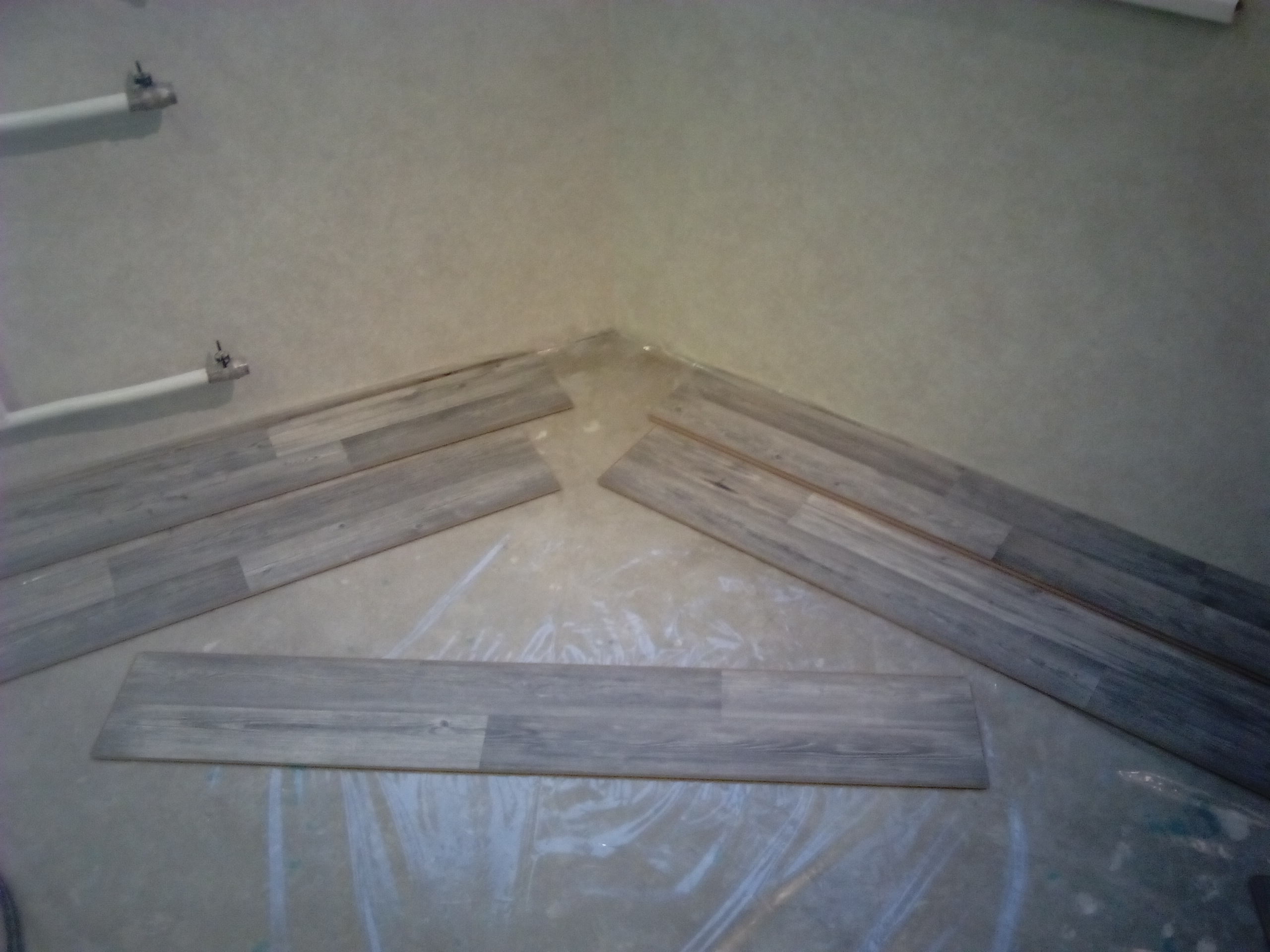 Но убедили, завтра, если ночью Лан ничего поперек не скажет, уберу пленку там, где сегодня не успел ламинат положить. А успел сегодня немного, поскольку: 1) кладу по диагонали 2) кладу с проклекой стыков (замков) Поэтому быстро не получается. Сделал сегодня метра 3-4 только, правда сложных, эркерных. Ну и закладную вклеил. Начал часов в 7, после работы... |