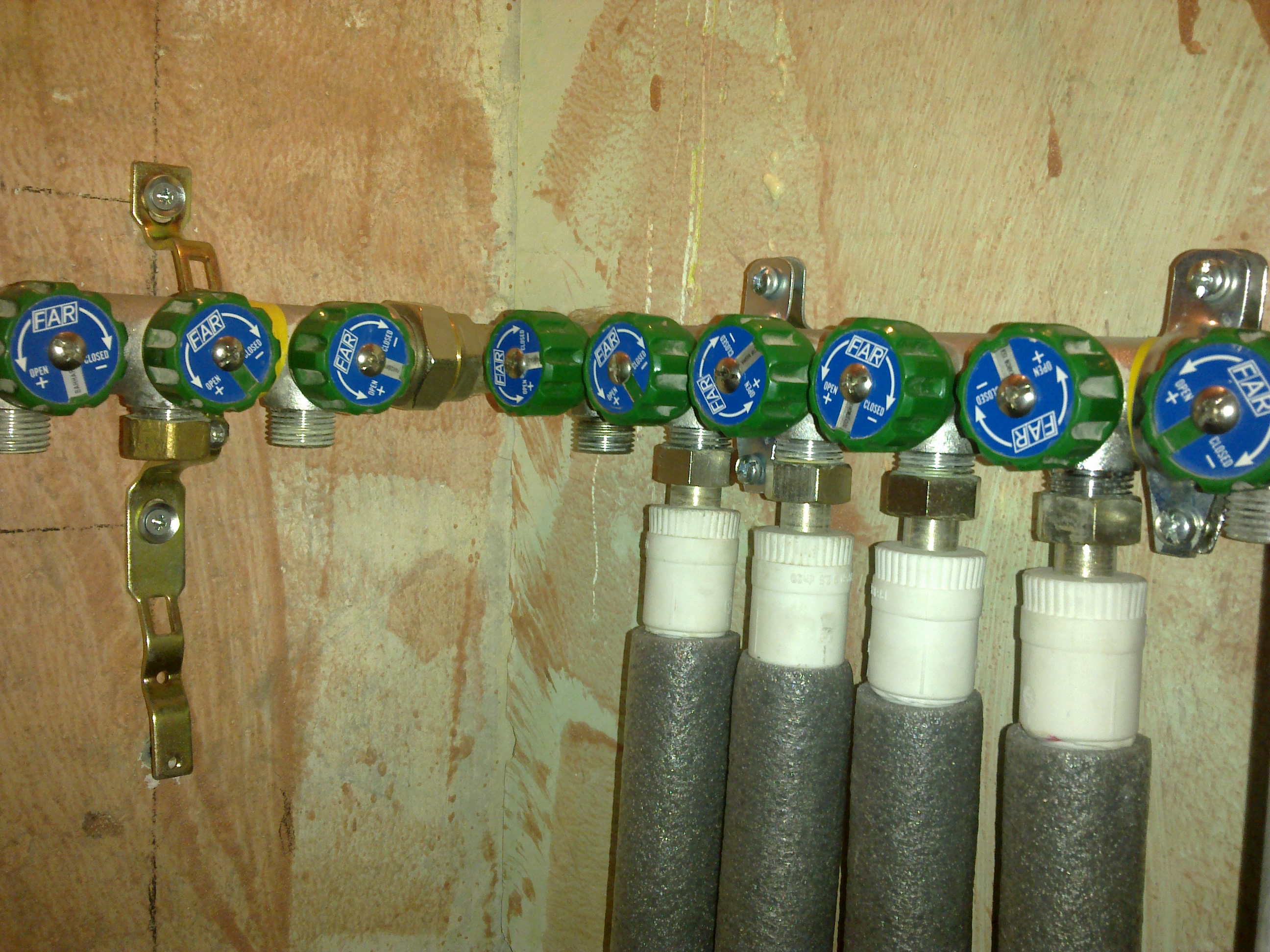 Закончил с холодной водой все, осталось горячую сделать, но там легче, т.к. ее меньше. Может кто и заметил, но промолчал - в крепежах к стене я снял резинки и банально в несколько оборотов обмотал изолентой коллектора в месте стыковки с креплением, поскольку купленные под 2\3 дюйма крепежи на фаровские 2\3 коллектора были маловаты с учетом штатной резинки. |