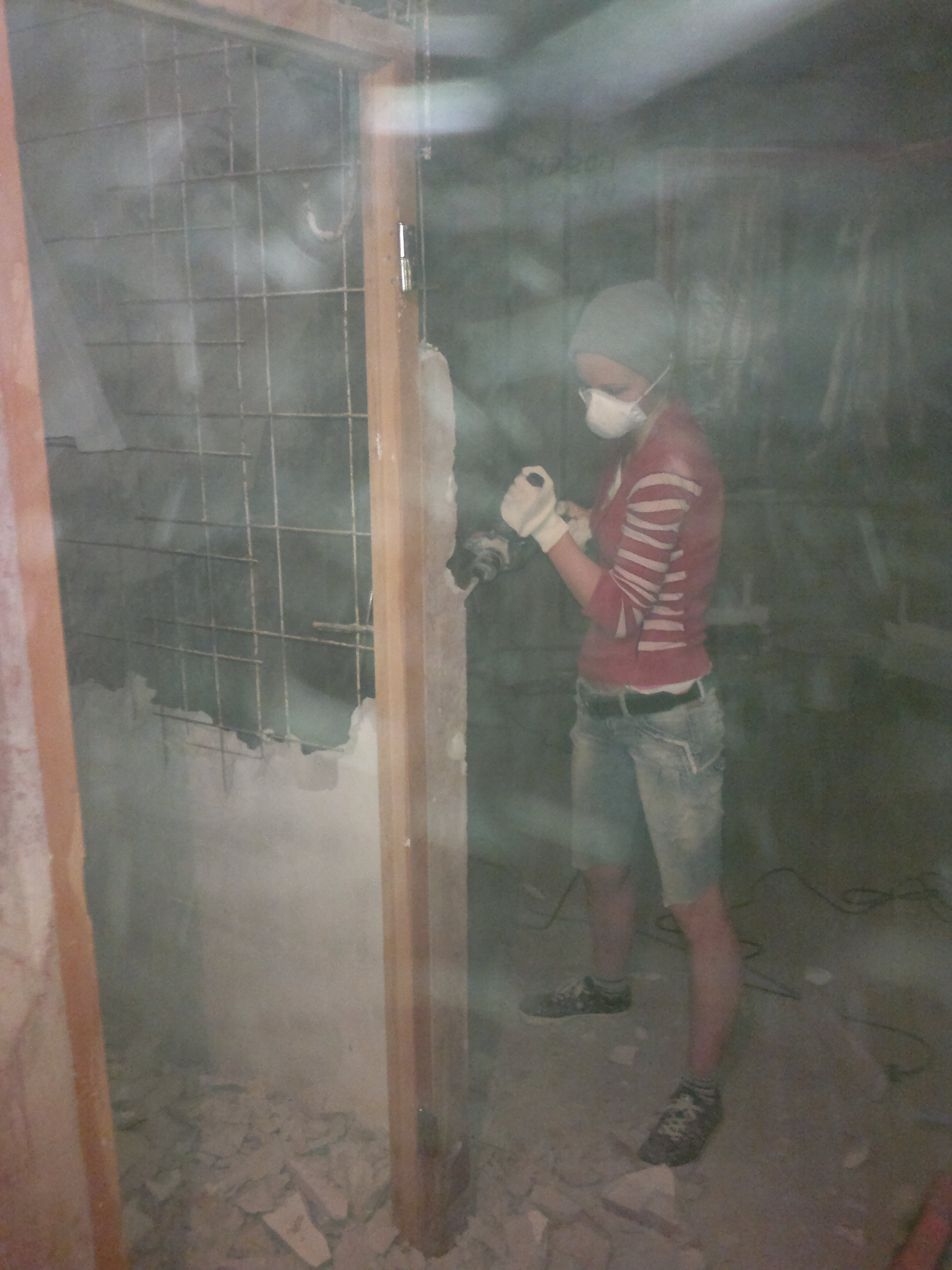 Думаю, что разово мой организм это переживет. Вот если на постоянку - другой вопрос. Работать могу только по выходным. Да и не так много сбивать надо, штробы да кабину, практически и то и другое близко к завершению, работы на один полный день. |