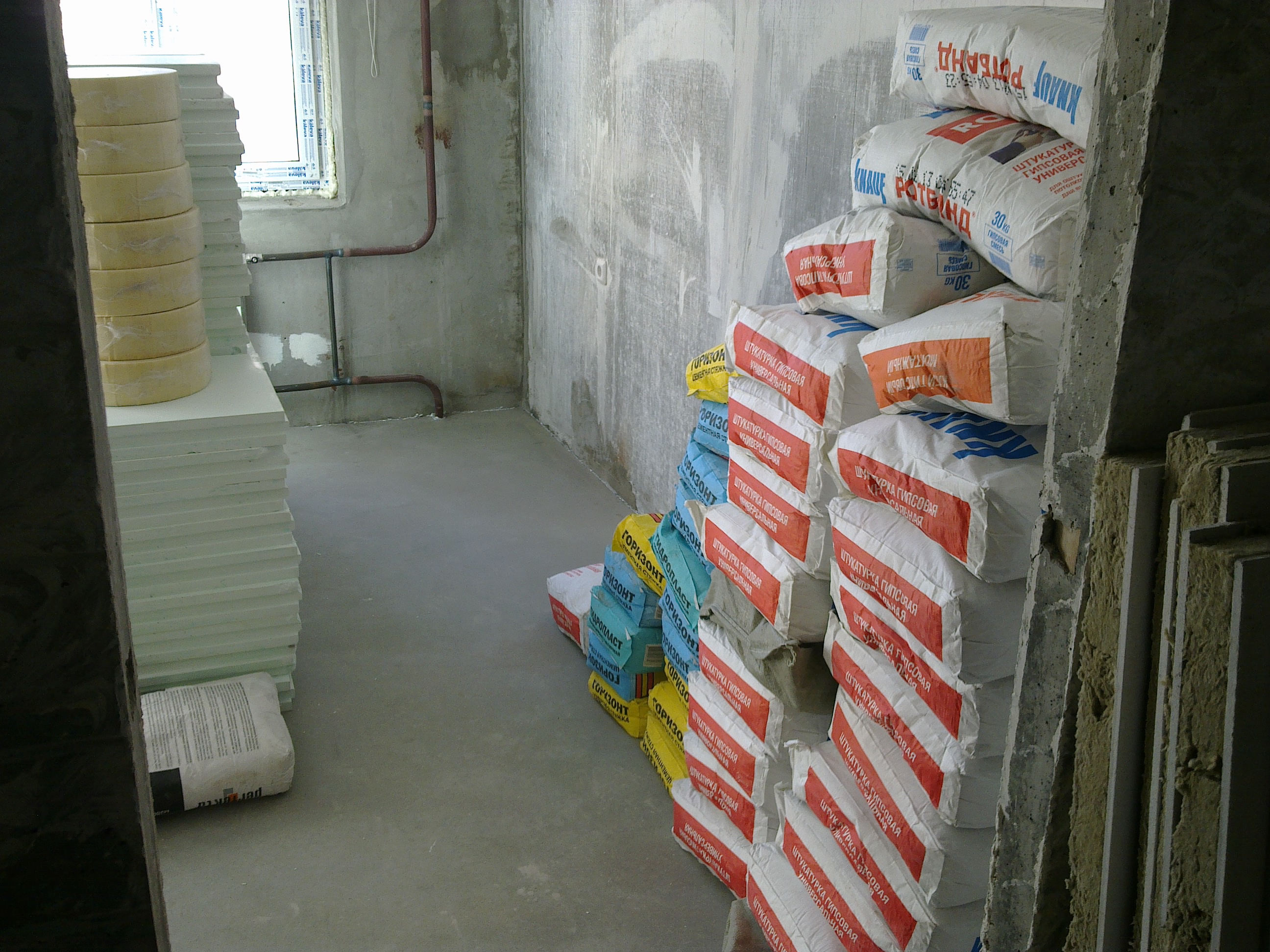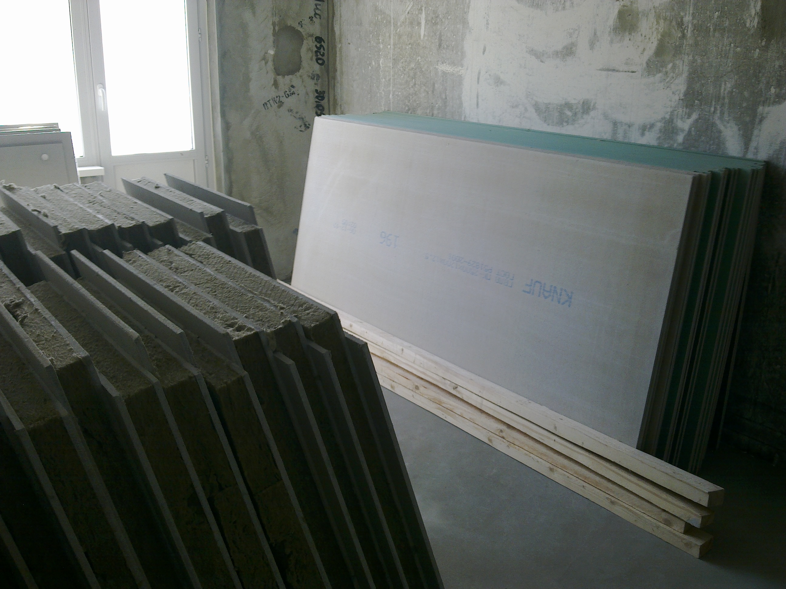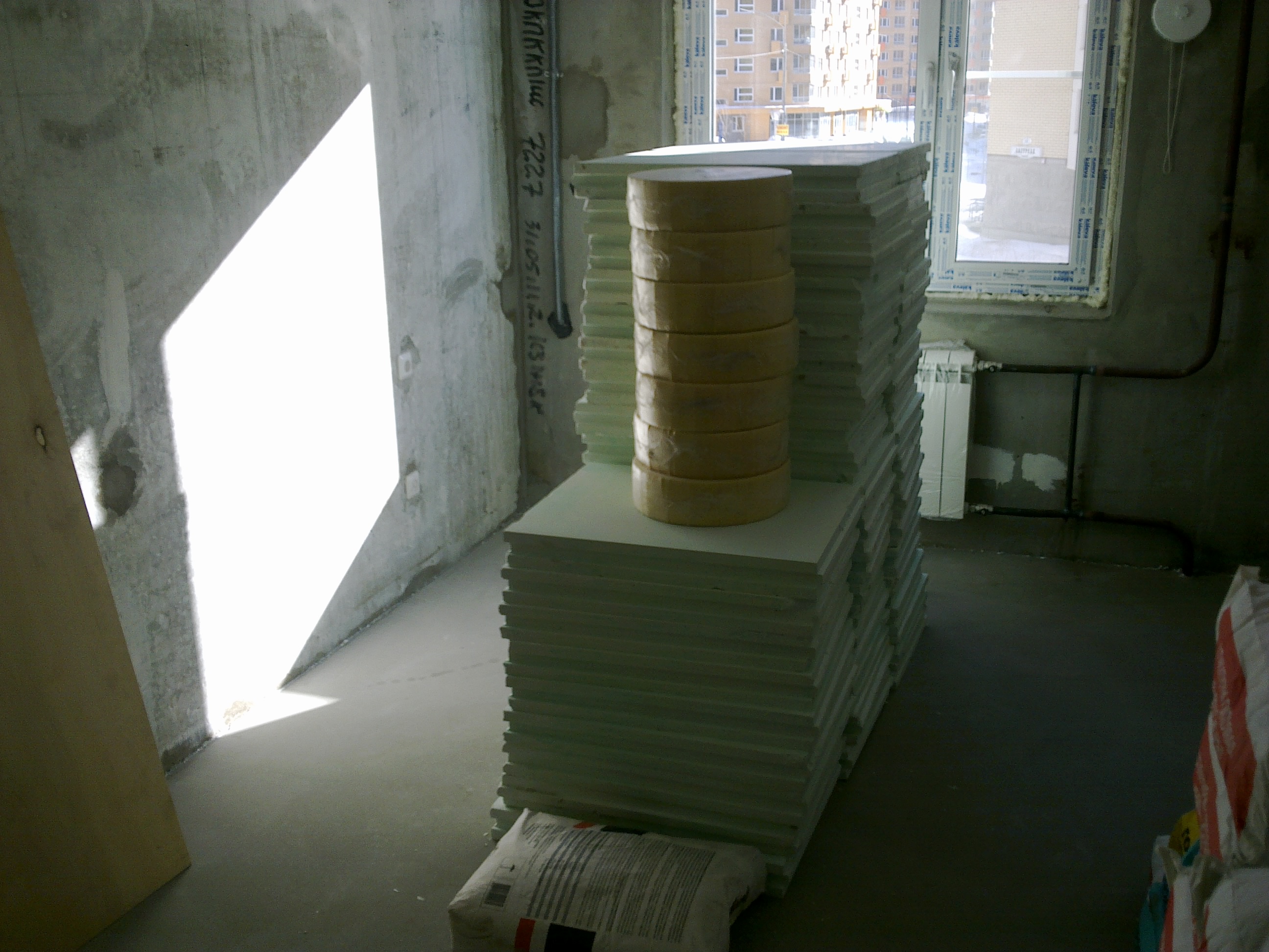 Потом в 11:30 приехали мои материалы, брал с доставкой и разгрузкой в квартиру. Начали таскать... Закончили только в пятом часу... В итоге забраковал и не принял\не заплатил за 8 ПГП, заломали 4 ЗИПС-модуля, не довезли 30 ЗИПС-модулей (ошибка водителя, должен при загрузке машины был проконтролировать количество). Понятно, что денег получили меньше. В итоге в понедельник обещали, понятное дело уже бесплатно, привезти 8 новых ПГП и 34 ЗИПС-модуля. Грузчикам приплатил на мой взгляд немного и они листы гипсокартона и гипсоволокна поднимали не на лифте, подрезая, а целиком по лестнице. Также они вынесли в мусор оставшиеся мои мешки и нарезанный бетонный поддон. Спина моя счастлива, особенно, конечно, плиты поддона тяжеленные. По поводу перегородки в с\у, можете меня ругать, но все-таки решил ее делать, как наверно уже стало понятно, из влагостойких ПГП, гидроизолируя их по кругу обмазочной гидроизоляцией. Все-таки боюсь связываться с кирпичом, т.к. сам выкладывать стенку буду. Потом поехали в ОБИ, купили всякого мелкого недостающего инструмента типа киянки, ведро для смешивания раствора... Еще взял изоляцию для толстых труб, попробую в качестве теста обернуть ей трубу канализации для звукоизоляции, посмотрю поможет ли. Она недорогая, в отличие от самоклеющего пенофола, если что не жалко будет потраченных денег. Рулон пенофола стоит более 2000 рублей, а мне надо от него с гулькин нос. Вот так вот и день прошел, вроде ничего героического, но устали ужасно (IMG:style_emoticons/default/sad.gif) Завтра и послезавтра продолжение... Хочу успеть как минимум выложить первый ряд ПГП... Ну и несколько фото добра: |